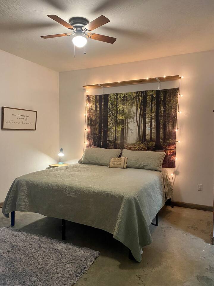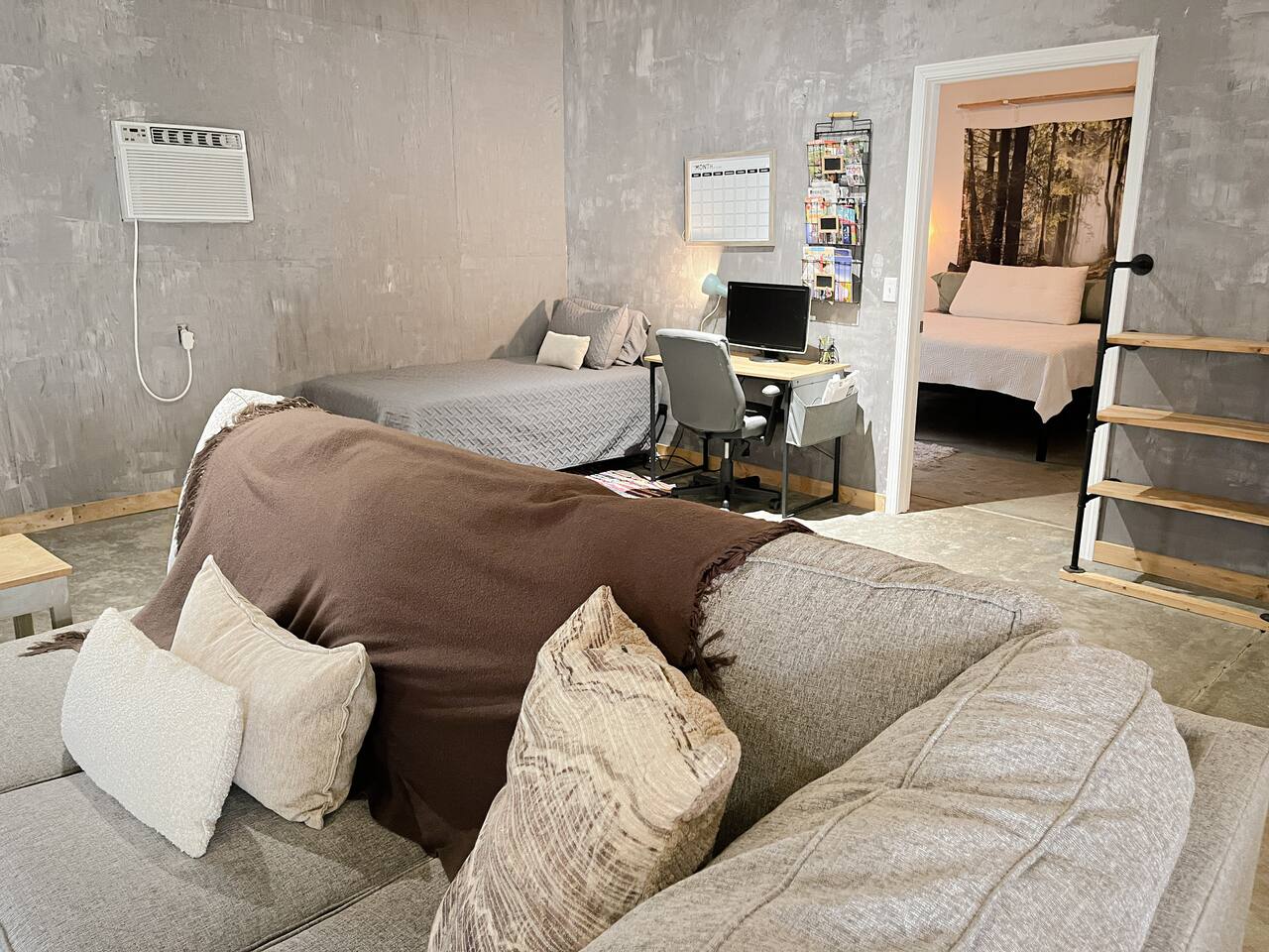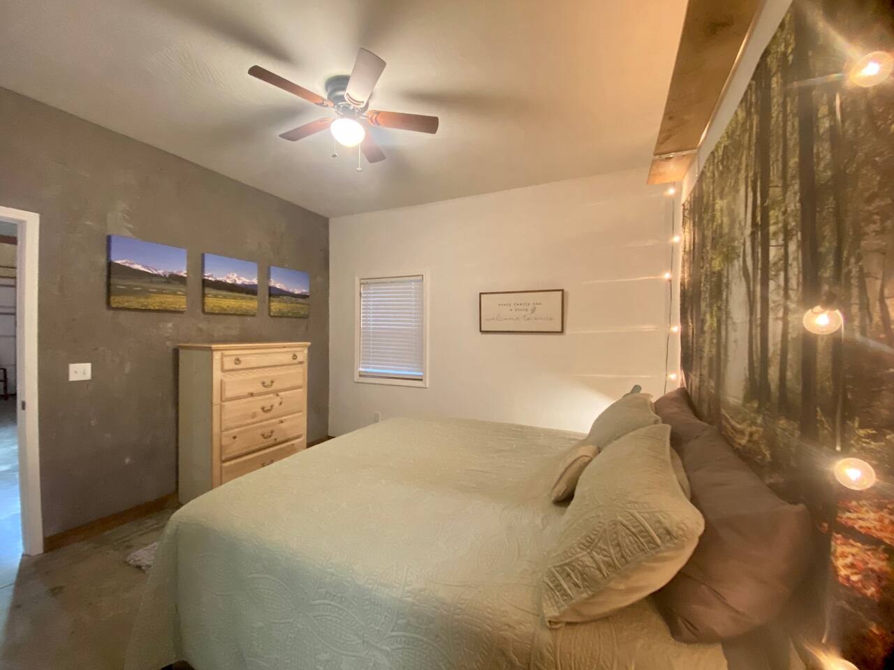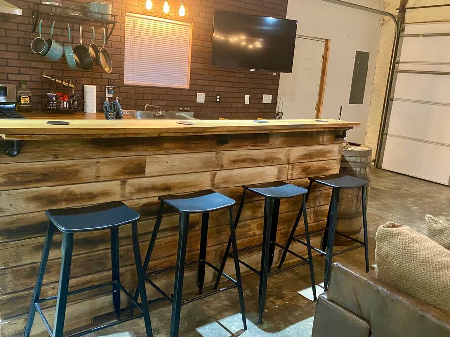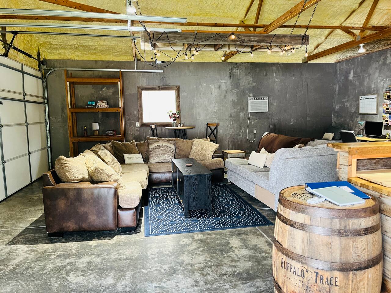 This classy and cozy space will set your imagination free. The unique mix of modern and rustic blend beautifully in this fully equipped Barndominium. The private backyard offers incredible views and the sunsets are not to be missed. Cook in the well stocked kitchen. Get cozy to watch a movie on the smart TV. The King bedroom is spacious and provides an amazing nights sleep with a guest favorite mattress! There is a twin bed and couches in the main living room for more than 2 guests.