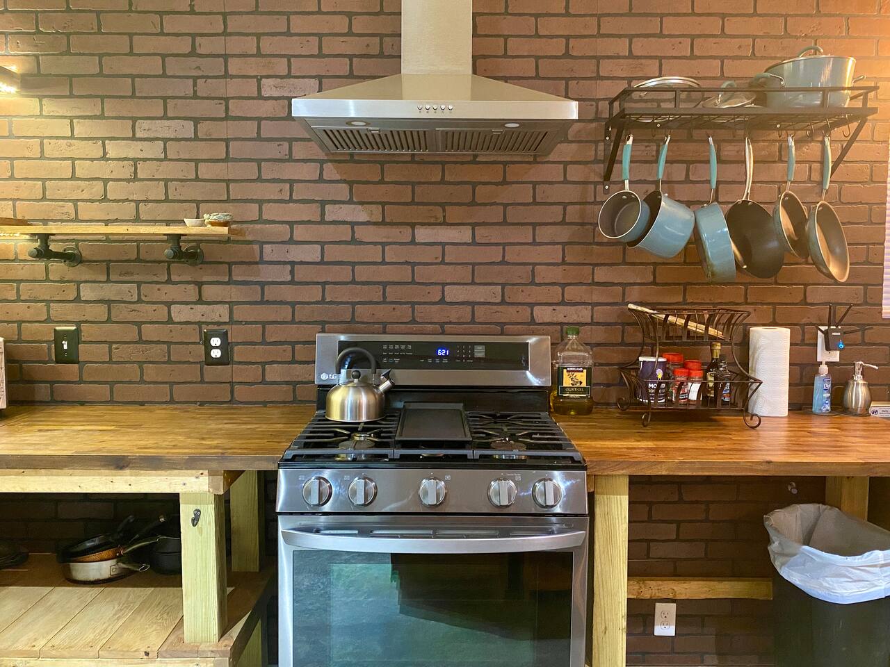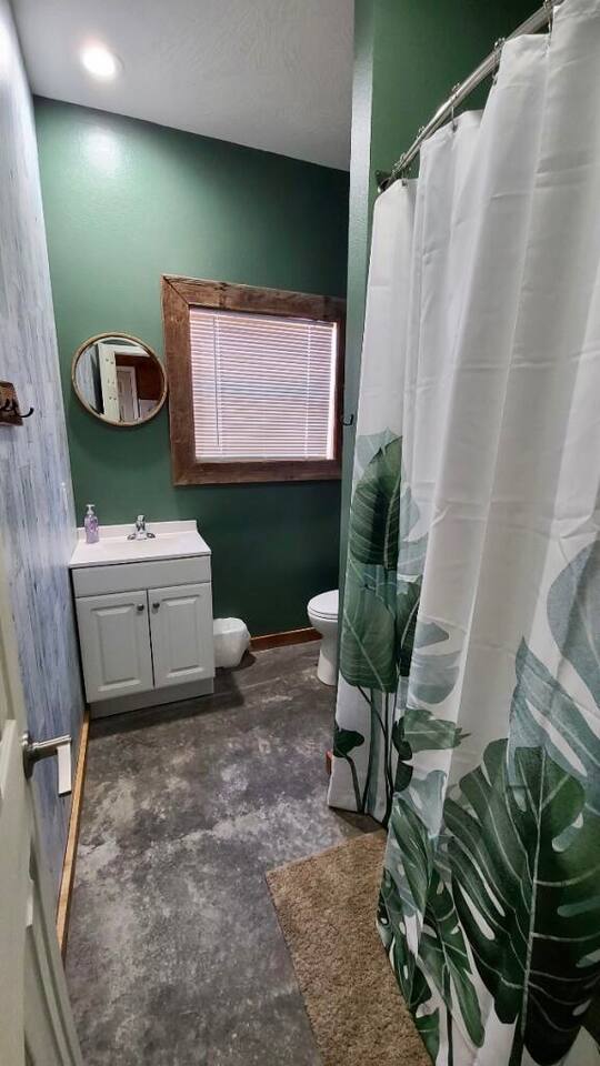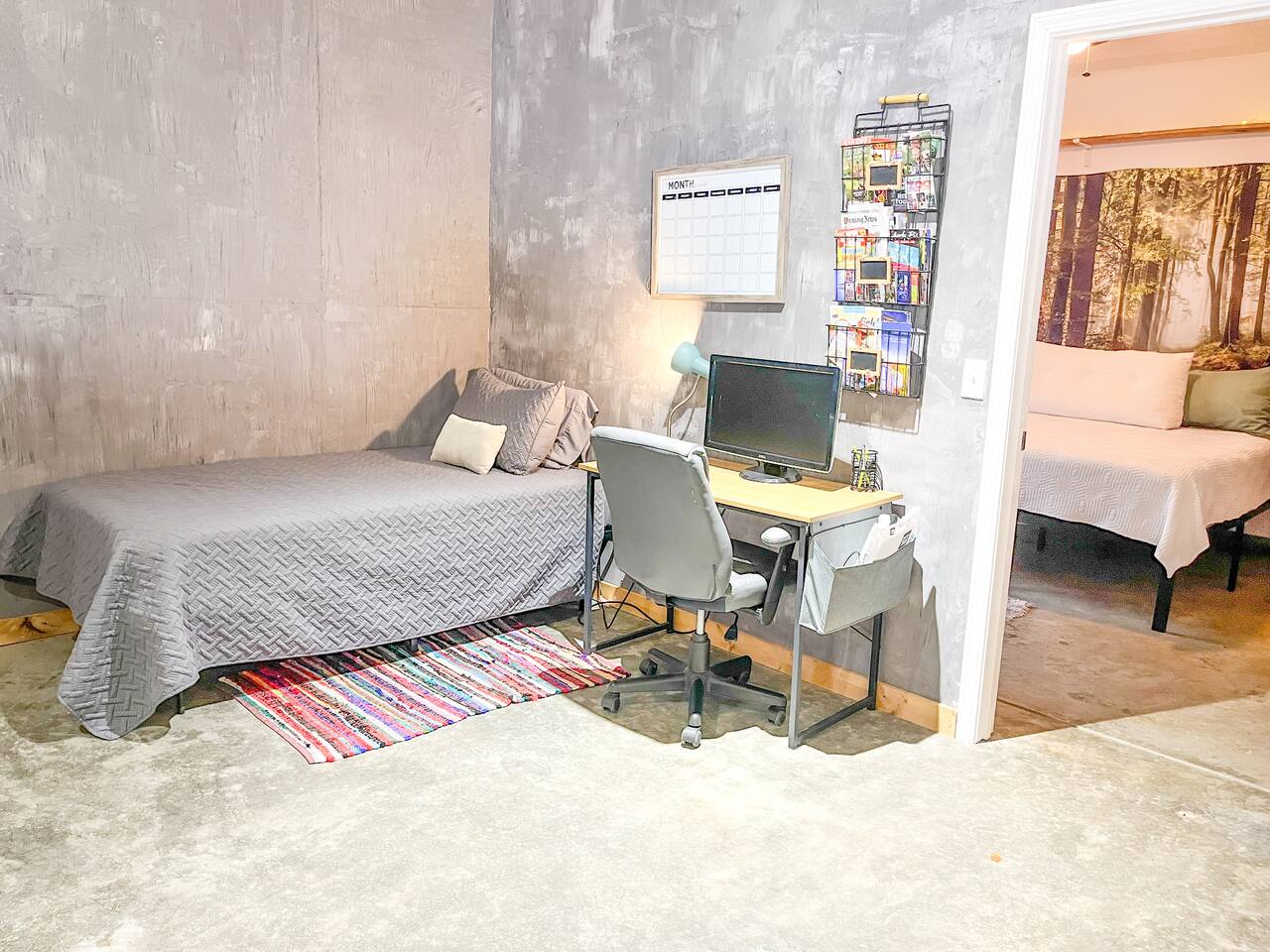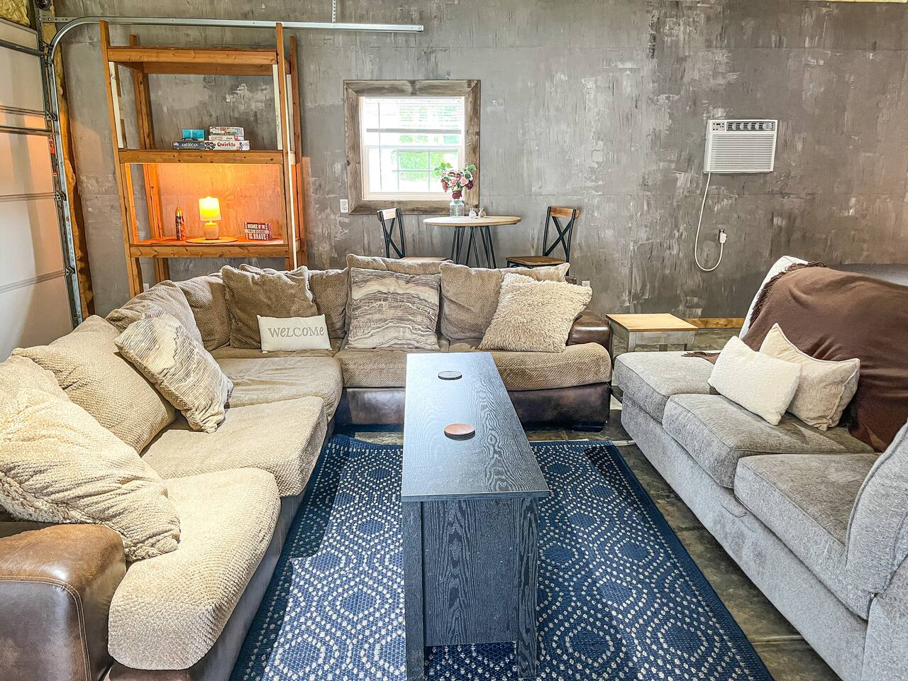 This classy and cozy space will set your imagination free. The unique mix of modern and rustic blend beautifully in this fully equipped Barndominium. The private backyard offers incredible views and the sunsets are not to be missed. Cook in the well stocked kitchen. Get cozy to watch a movie on the smart TV. The King bedroom is spacious and provides an amazing nights sleep with a guest favorite mattress! There is a twin bed and couches in the main living room for more than 2 guests.