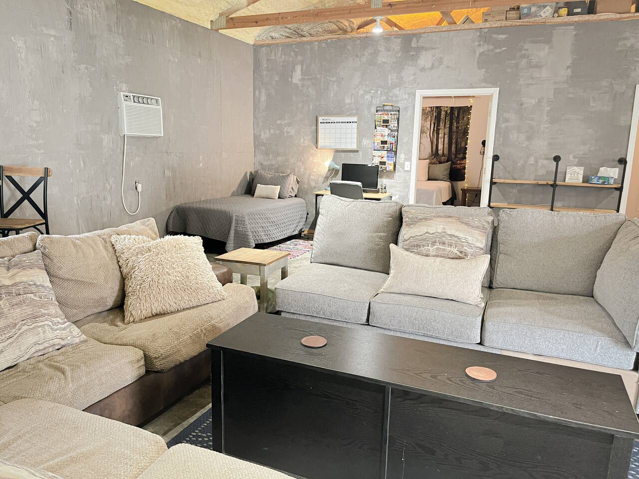 You will enjoy the comfortable sectional couch as you watch movies on the large flat screen smart TV. The high-end stove and fully stocked kitchen will bring out your culinary spark as you prepare a meal atop the hardwood counters. Jump in the shower for a long warm soak, before you fall into a king bed of the most comfortable kind. The frontloading washer and dry will not disappoint, allowing you to clean loads large and small with ease. Come fall in love with this one-of-a-kind home loaded with the best amenities you could wish to find. We have a twin bed located in the main living/dining area for guests looking for an extra sleeping option. There are also 2 sofas that are comfortable for sleeping a 4th person. If you are looking to accommodate some additional guests while in the area, I do have a large home available for rent on the same property. Feel free to ask about the Moon Valley Retreat. My caretaker occupies the RV with two dog. The RV is parked out front of the Barndominium. There are no shared spaces on my property. As my guest, you have your own parking space, private fenced backyard, and the entire Barndominium to yourself.