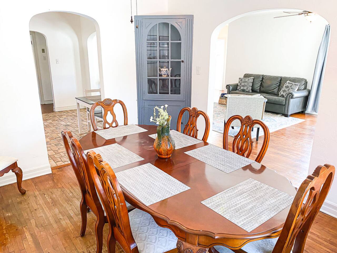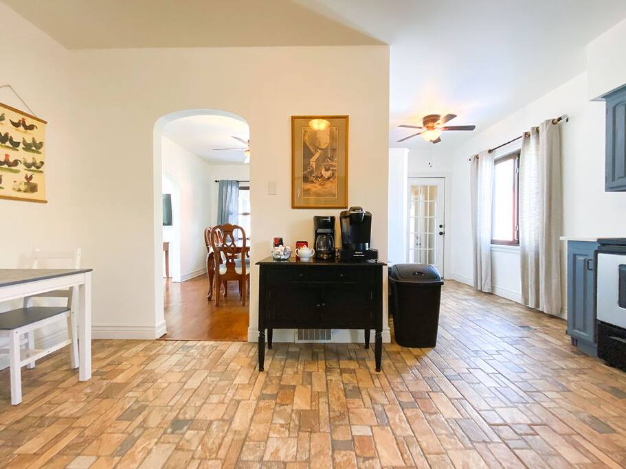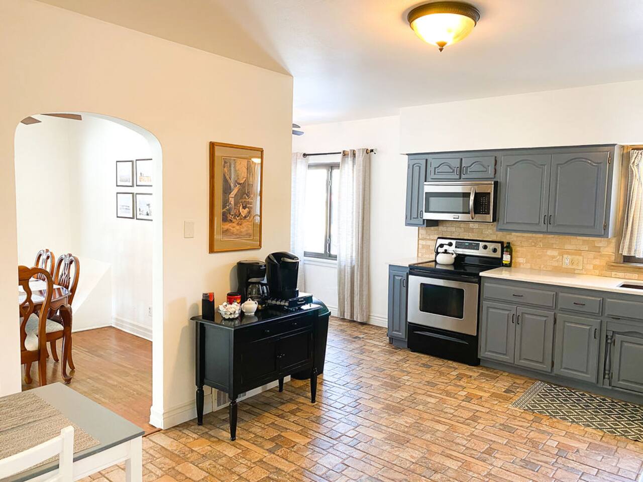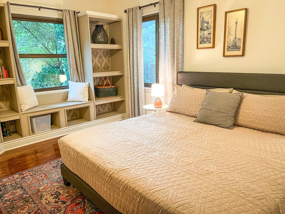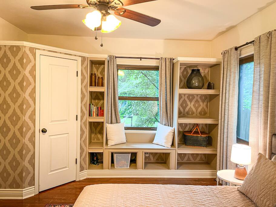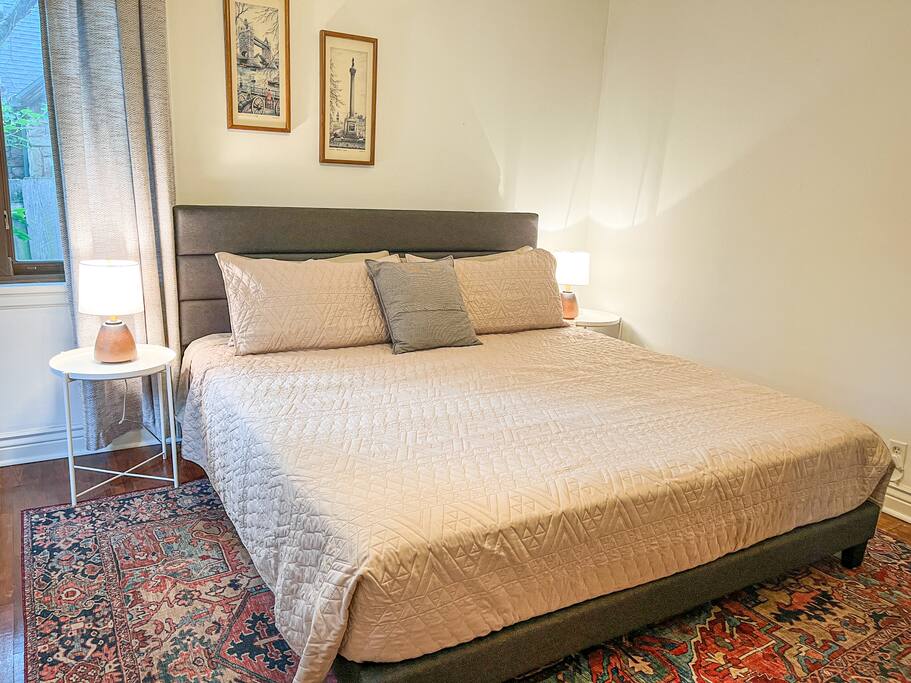 We recently upgraded to a King bed in the primary bedroom! Gather with friends and family in the fully fenced backyard (6ft privacy fence) to grill up a tasty meal on the gas grill or roast marshmallows around the fire pit. Take on a game of Fosball at the full size table, or break out one of the board games for an evening in. The highspeed wireless internet will allow you to surf the web or pull up your favorite shows and movies on the smart TV. Brew yourself up a hot cup of coffee with the Keurig or standard drip pot. Unwind in the walk-in shower or soak in the tub amidst one of the tastefully remodeled bathrooms. The sun room, wood floors and arched doorways will transport you back in time during your stay at this quaint home, while the comfortable mattresses and linens will give you the night’s rest you desire. There is a formal dining room with seats for 8 and a small breakfast nook in the kitchen. Enjoy the Gastro Pub, world-class BBQ or Japanese Stake house, and much more all within 5 minutes. This home is centrally located, allowing you to access everything Springfield has to offer within just minutes.