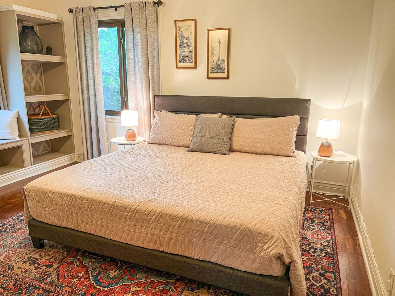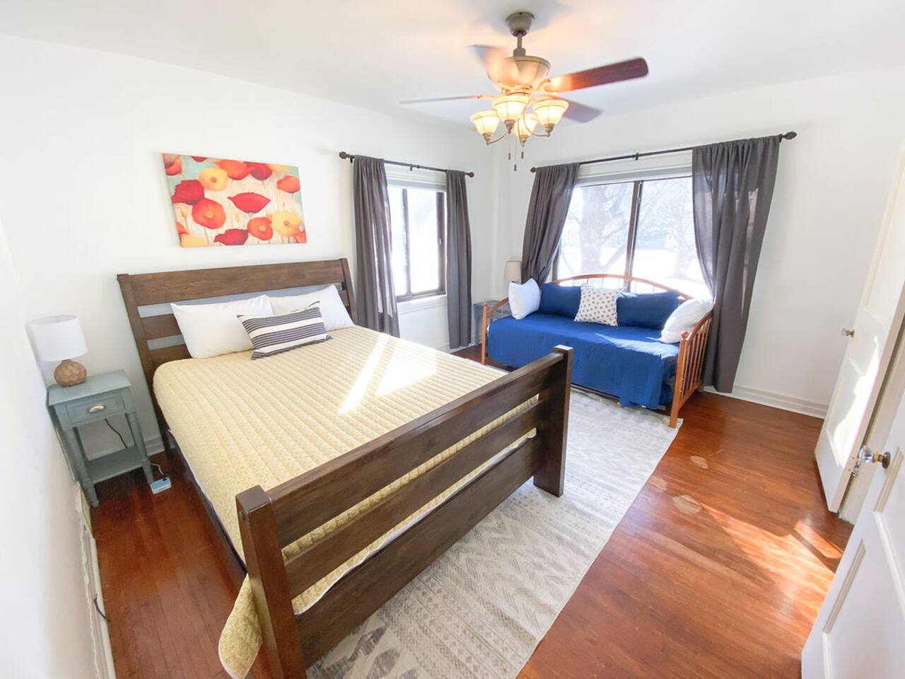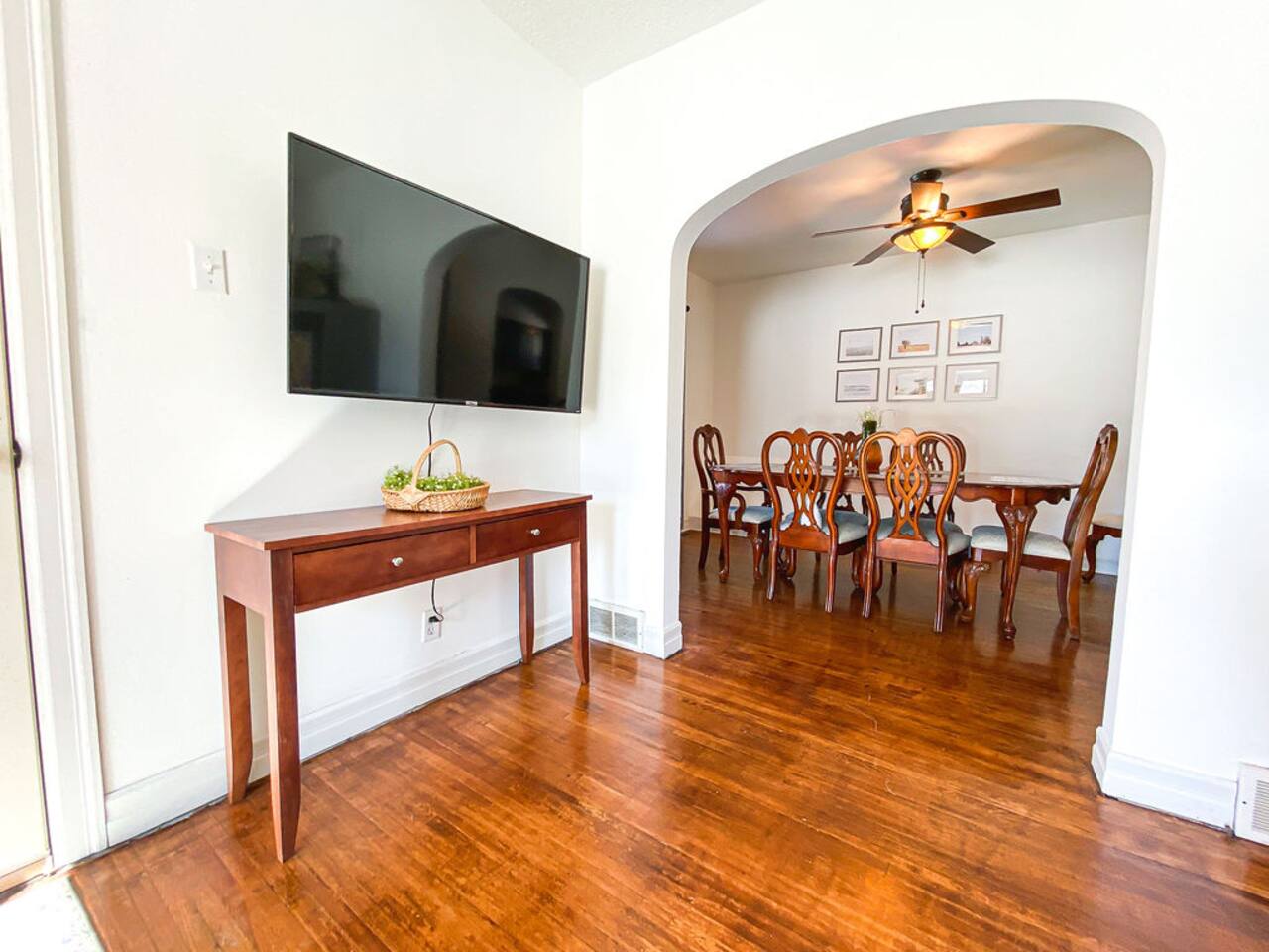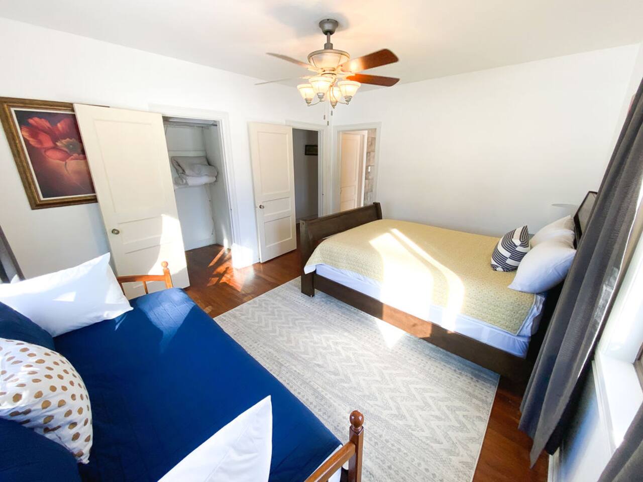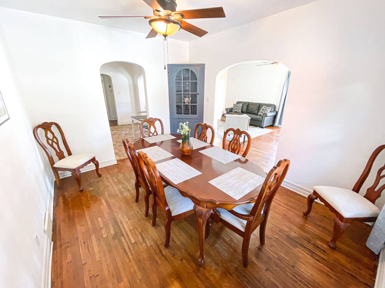 We recently upgraded to a King bed in the primary bedroom! Gather with friends and family in the fully fenced backyard (6ft privacy fence) to grill up a tasty meal on the gas grill or roast marshmallows around the fire pit. Take on a game of Fosball at the full size table, or break out one of the board games for an evening in. The highspeed wireless internet will allow you to surf the web or pull up your favorite shows and movies on the smart TV. Brew yourself up a hot cup of coffee with the Keurig or standard drip pot. Unwind in the walk-in shower or soak in the tub amidst one of the tastefully remodeled bathrooms. The sun room, wood floors and arched doorways will transport you back in time during your stay at this quaint home, while the comfortable mattresses and linens will give you the night’s rest you desire. There is a formal dining room with seats for 8 and a small breakfast nook in the kitchen. Enjoy the Gastro Pub, world-class BBQ or Japanese Stake house, and much more all within 5 minutes. This home is centrally located, allowing you to access everything Springfield has to offer within just minutes.