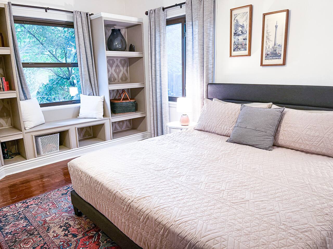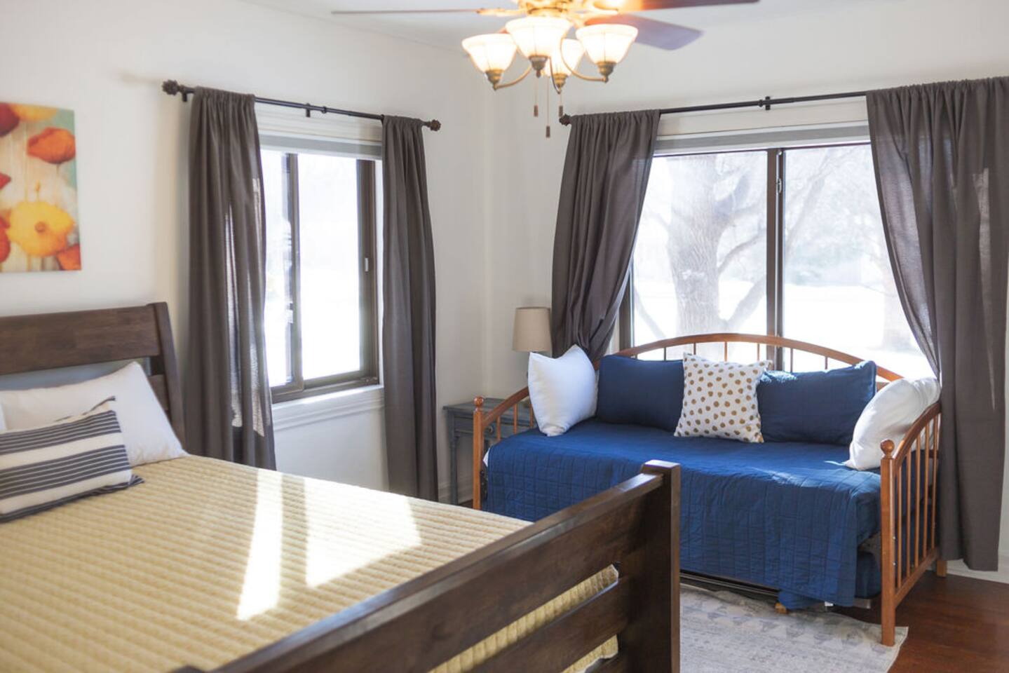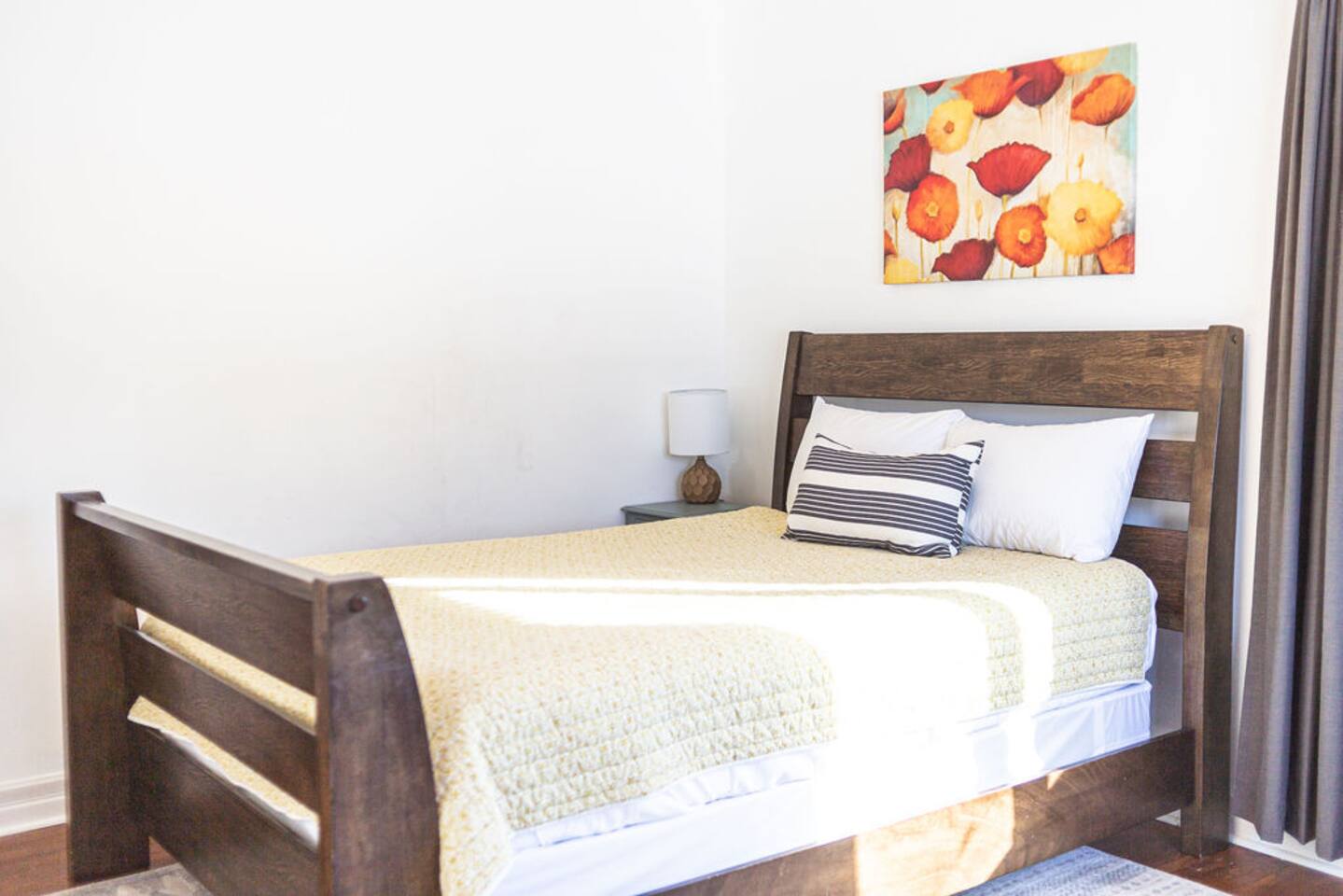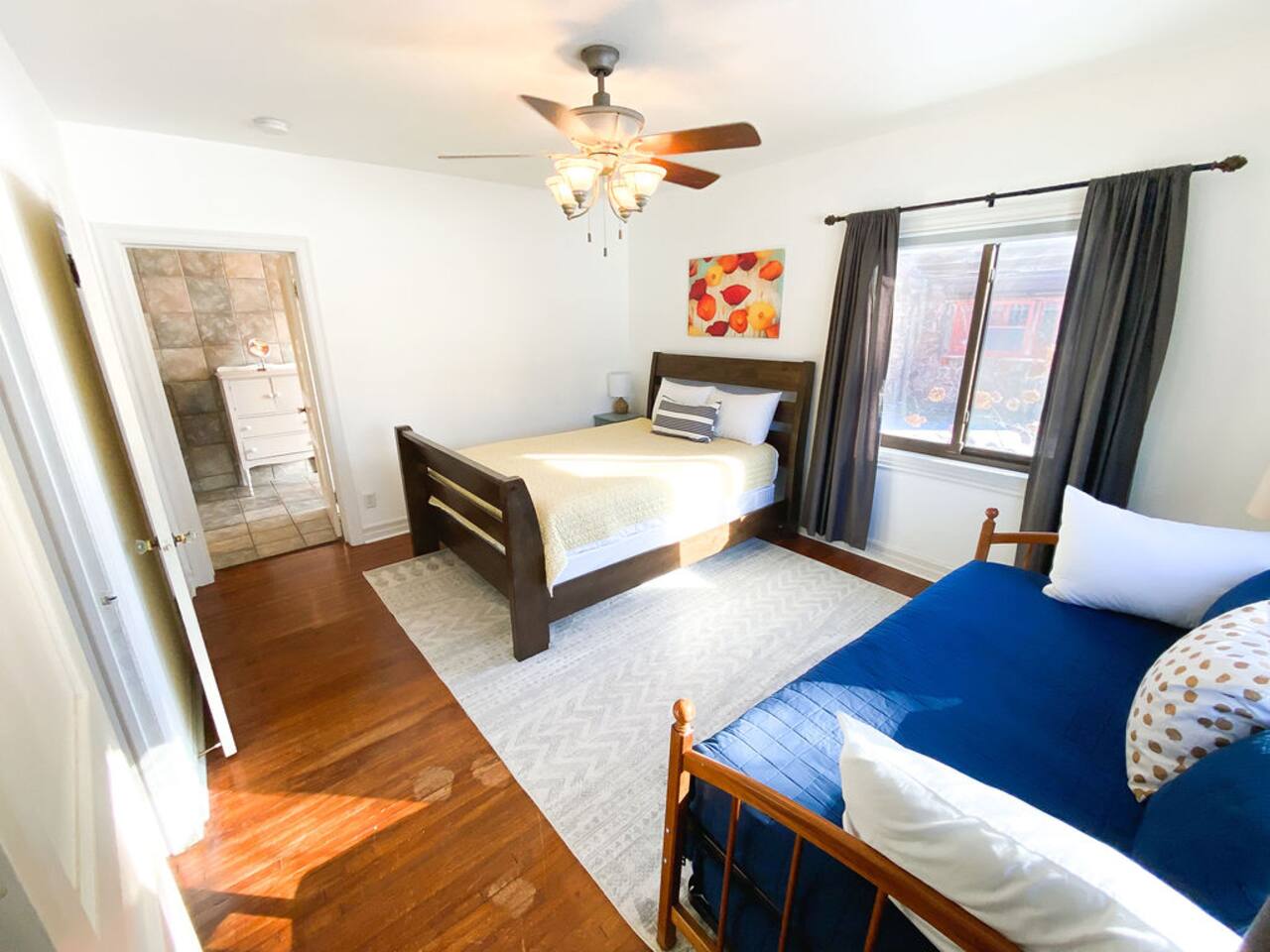 We recently upgraded to a King bed in the primary bedroom! Gather with friends and family in the fully fenced backyard (6ft privacy fence) to grill up a tasty meal on the gas grill or roast marshmallows around the fire pit. Take on a game of Fosball at the full size table, or break out one of the board games for an evening in. The highspeed wireless internet will allow you to surf the web or pull up your favorite shows and movies on the smart TV. Brew yourself up a hot cup of coffee with the Keurig or standard drip pot. Unwind in the walk-in shower or soak in the tub amidst one of the tastefully remodeled bathrooms. The sun room, wood floors and arched doorways will transport you back in time during your stay at this quaint home, while the comfortable mattresses and linens will give you the night’s rest you desire. There is a formal dining room with seats for 8 and a small breakfast nook in the kitchen. Enjoy the Gastro Pub, world-class BBQ or Japanese Stake house, and much more all within 5 minutes. This home is centrally located, allowing you to access everything Springfield has to offer within just minutes.