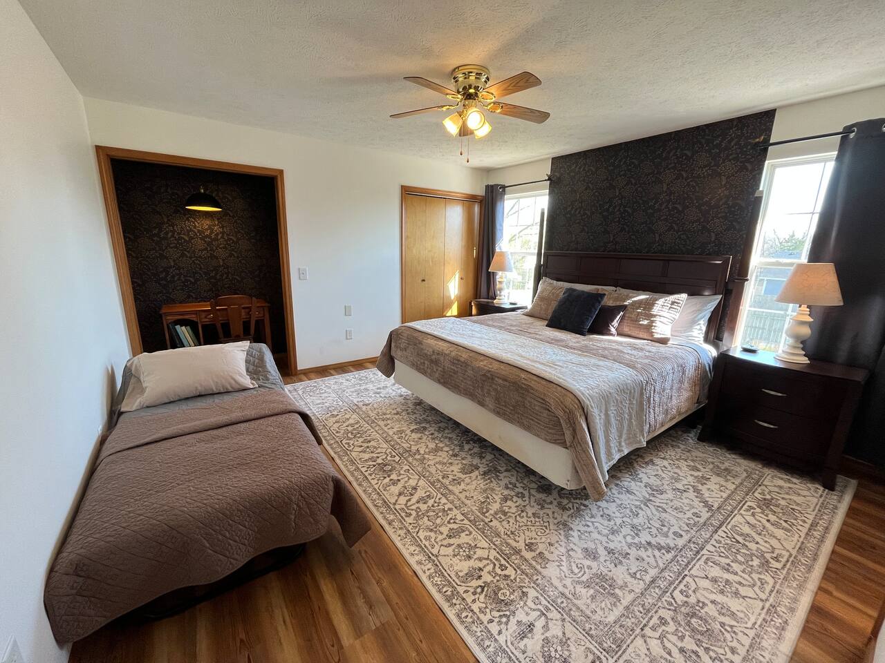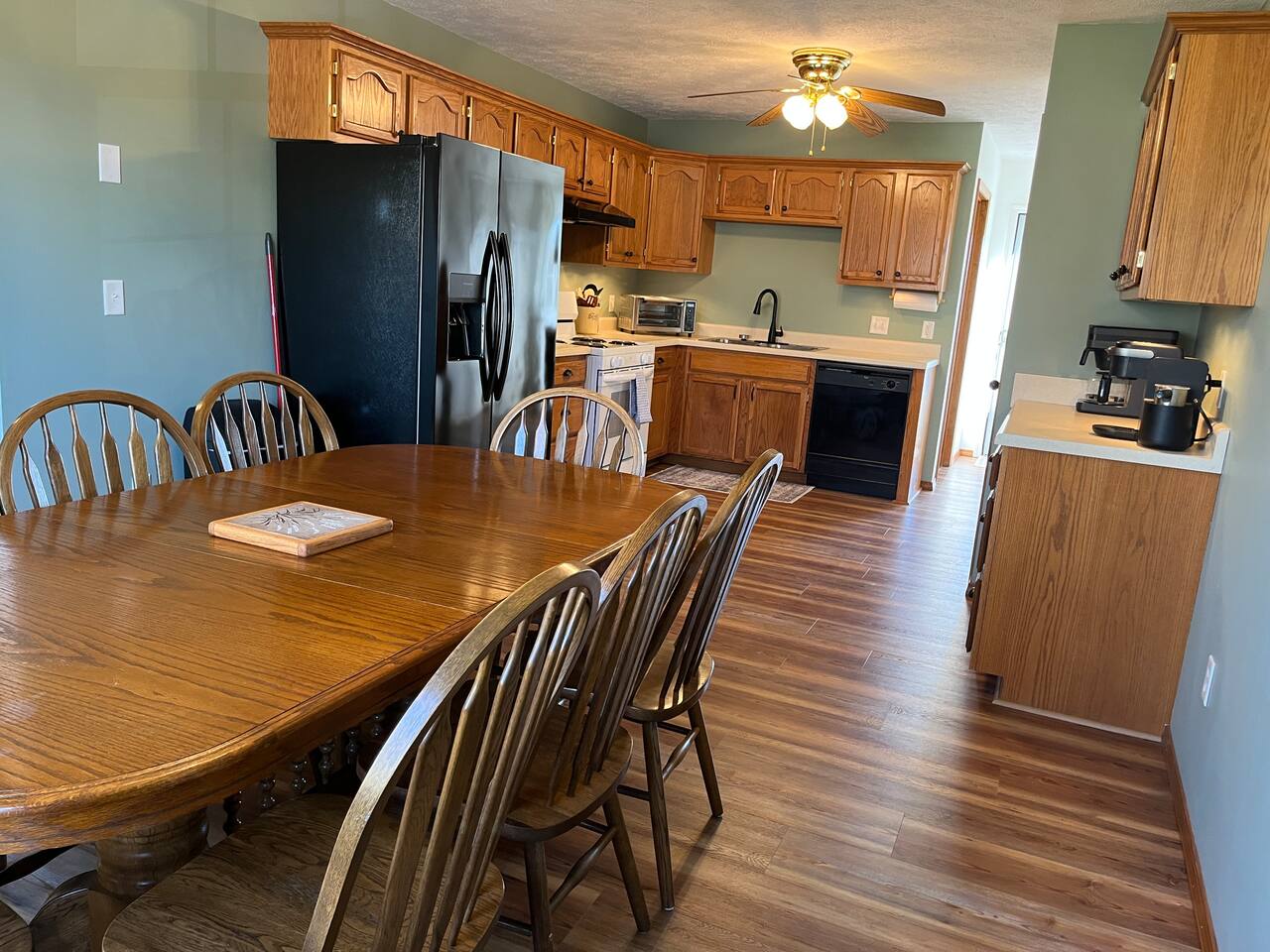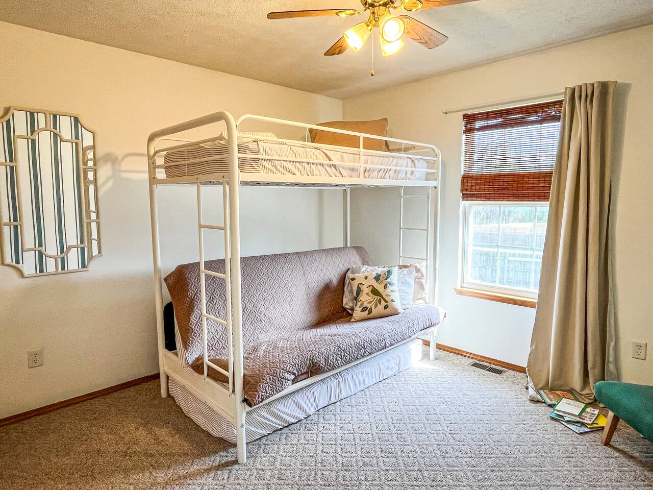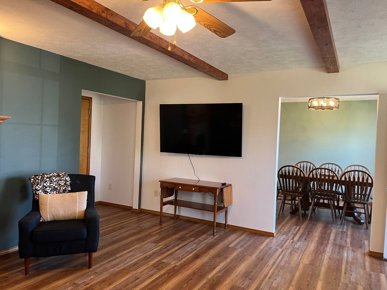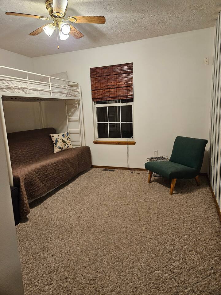 The Space Our home is ideal for families, groups, and longer stays with plenty of space to relax. 🛏 3 bedrooms with a comfortable king bed and multiple sleeping options 📺 Large screen TV perfect for movie nights 🔥 Electric fireplace for cozy evenings 🎲 Large collection of board games for family fun 💻 Great for remote work with comfortable spaces to settle in Outdoor Living Enjoy the outdoors with a large, fully fenced backyard—perfect for relaxing or letting kids play safely. 🌿 Spacious yard with plenty of room to unwind ☀️ Private deck with outdoor furniture for morning coffee or evening meals 🏡 Quiet neighborhood atmosphere Location Our central location makes it easy to reach several nearby communities in the Springfield metro area, including: Springfield, Missouri – dining, entertainment, universities, and hospitals Ash Grove, Missouri – small-town charm and local events Bolivar, Missouri, Republic, Missouri, and Marshfield, Missouri – easy drives for visiting family, work trips, or regional events Because of this central location, guests often stay here when visiting relatives in nearby towns, attending events in Springfield, or looking for a quieter place outside the city. Perfect For ✔ Families visiting relatives ✔ Groups traveling together ✔ Remote workers wanting a quiet home base ✔ Guests attending events or work in Springfield ✔ Travelers exploring small Ozarks towns Come enjoy a comfortable stay with small-town charm and big-city convenience just minutes away.