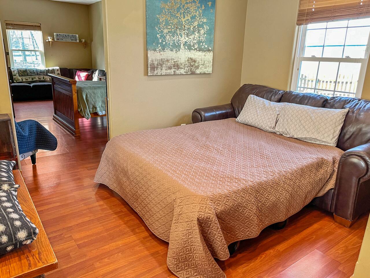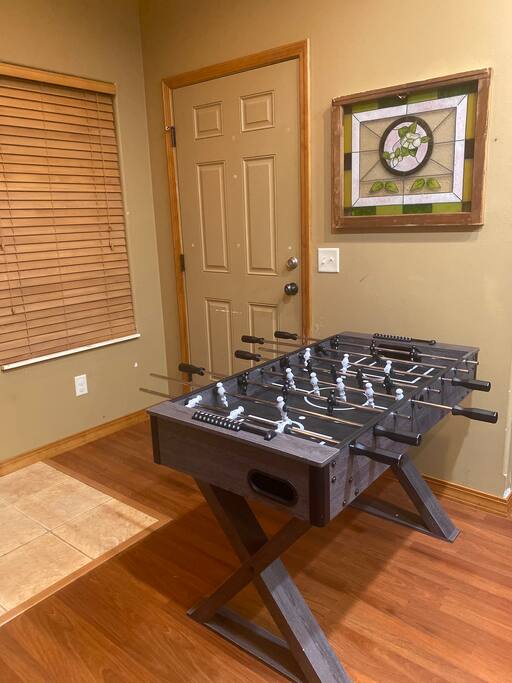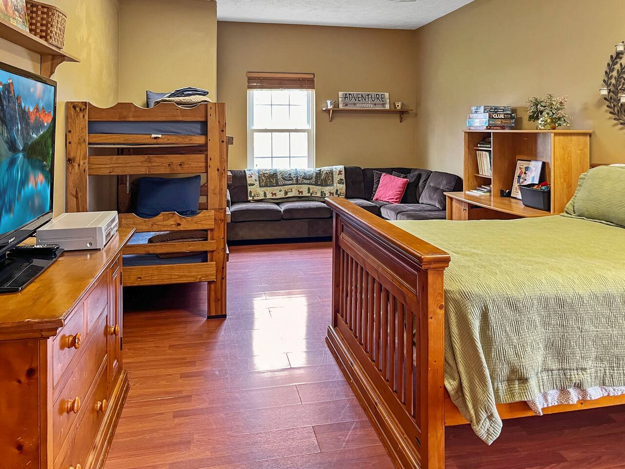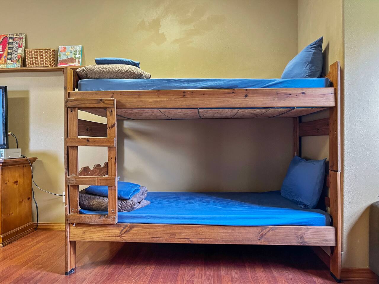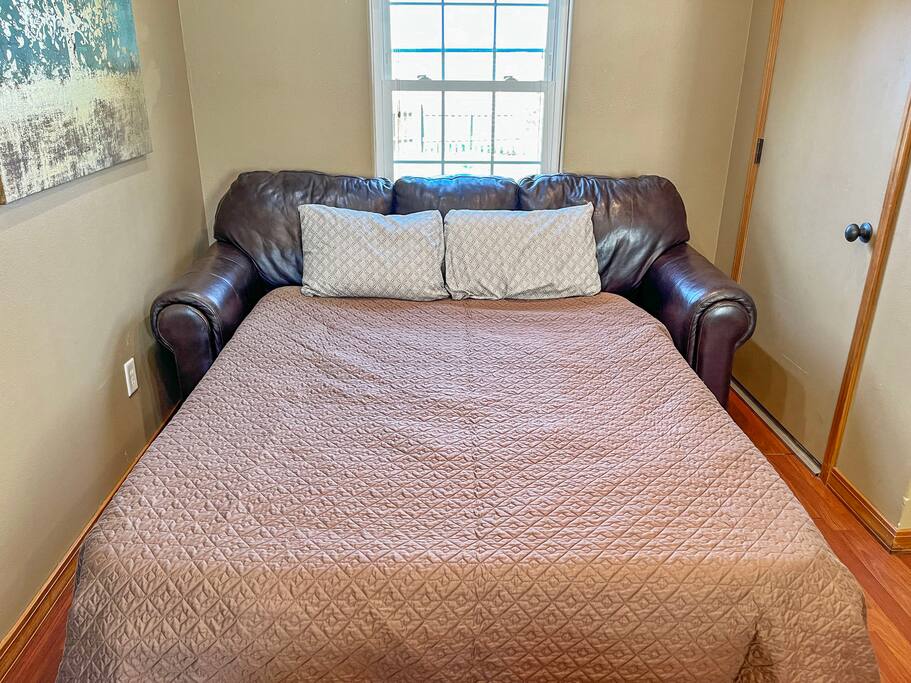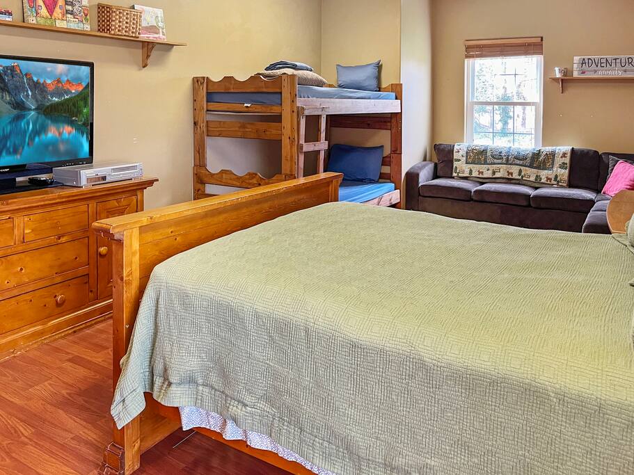 This spacious 3 bedroom, 3 bathroom home (with optional Bonus Suite/4th bedroom), is perfect to accommodate the needs of various travelers. From a couple’s getaway to a large family gathering, this home is equipped to sleep up to 17 when fully booked. The optional Bonus Suite offers sleeping for 6 guests and a large cot is available upon request (bringing the home’s total to 17). You will also find some extra amenities in the suite such as a Foosball Table. The sleeping options include bunks beds (twin), a full size bed, a second pull out sleeper sofa, a large sectional sofa, a table and chairs, desk, Foosball, and an additional smart TV. The Bonus Suite can be made available upon request for an additional one-time cleaning fee of $75. This home is pet friendly and able to accommodate your furry friends for a modest $50 per pet. Pets must be well housebroken and kenneled when left unattended.