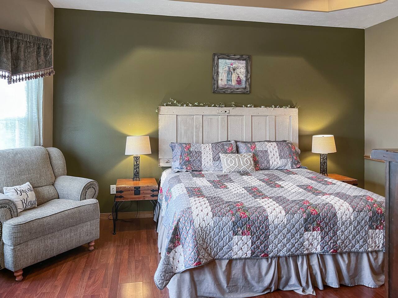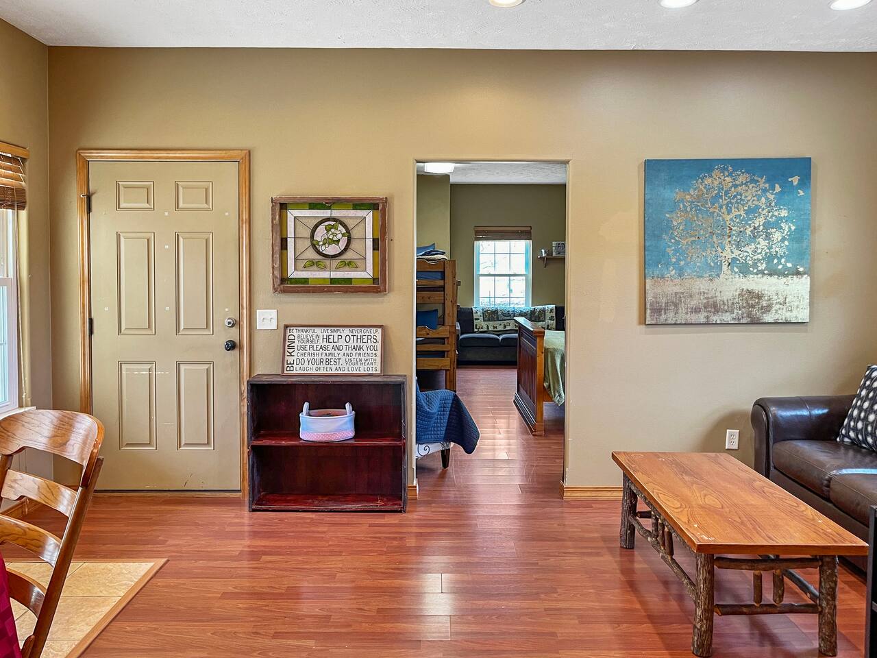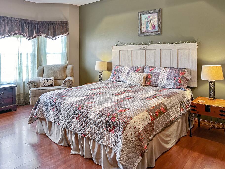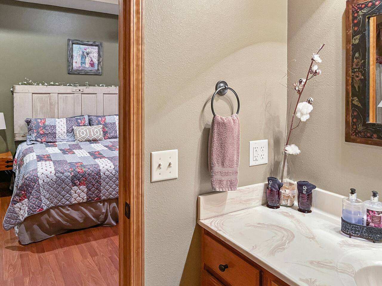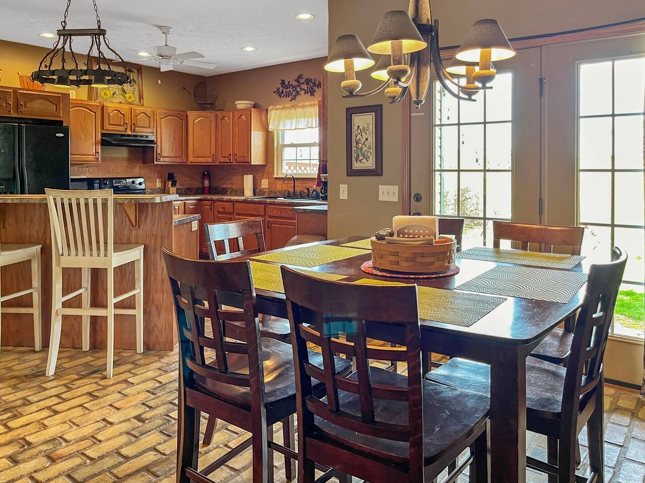 This lovely home is quietly tucked back in amongst the fields and woods of the Ozarks. While being just minutes off of highway 65, the location is peaceful and not heavily trafficked as the road is a cul-de-sac. This home is spacious enough for large families to spread out comfortably. The warm tones and rustic feel will complement any excursion to the area. Whatever the nature of your trip, from hunters to site-seers, from vacationers to business travelers all will find rest and comfort here.