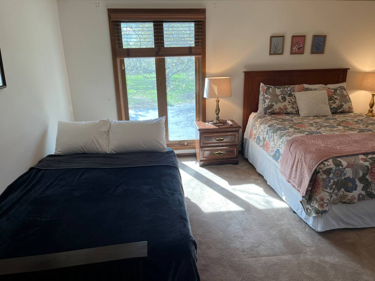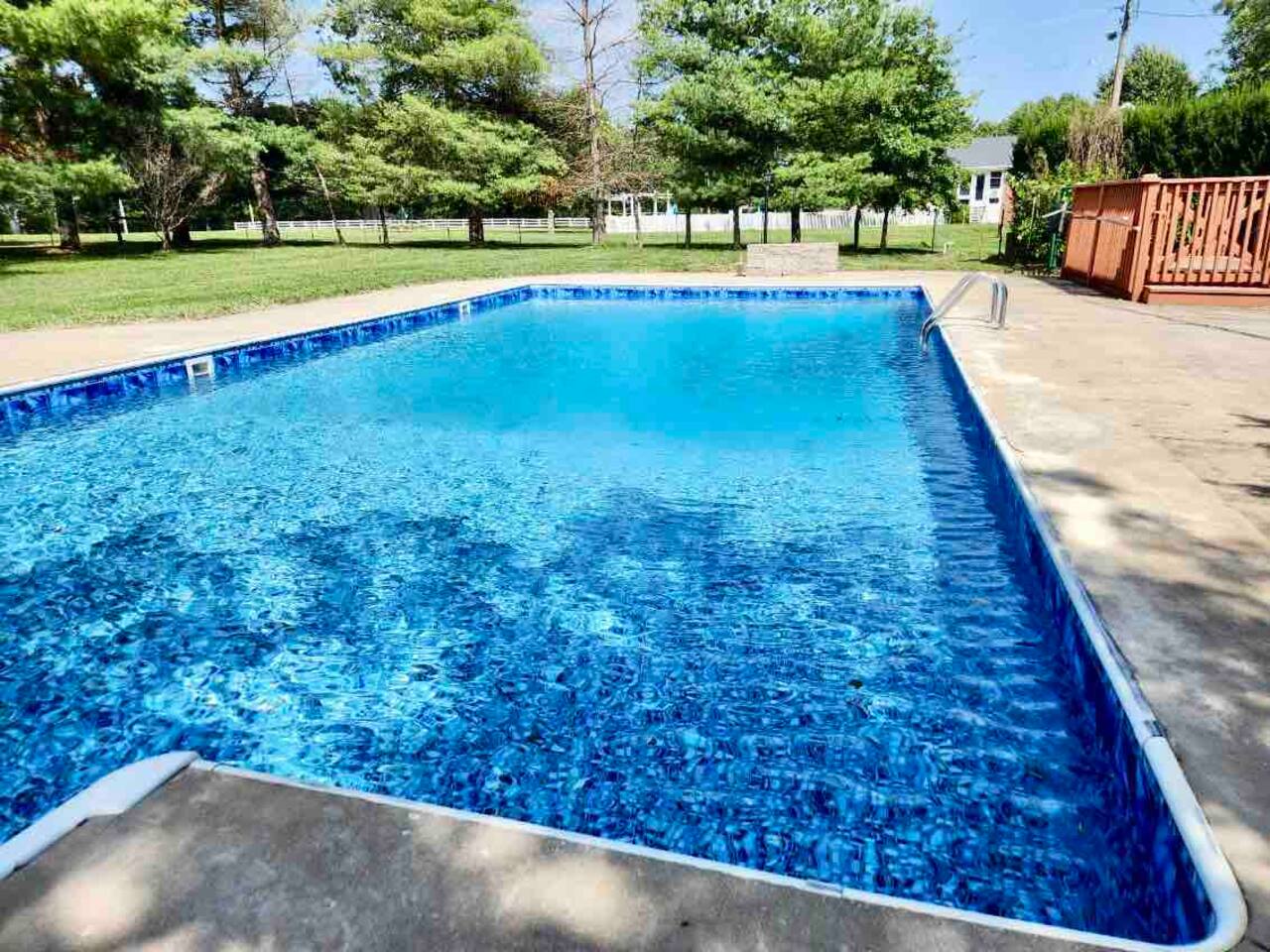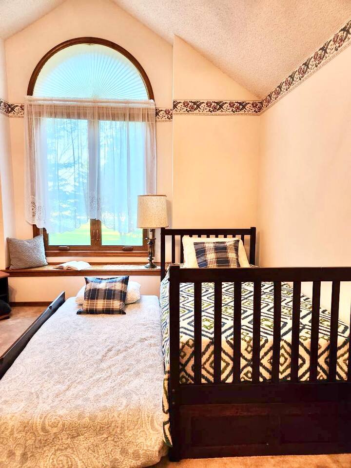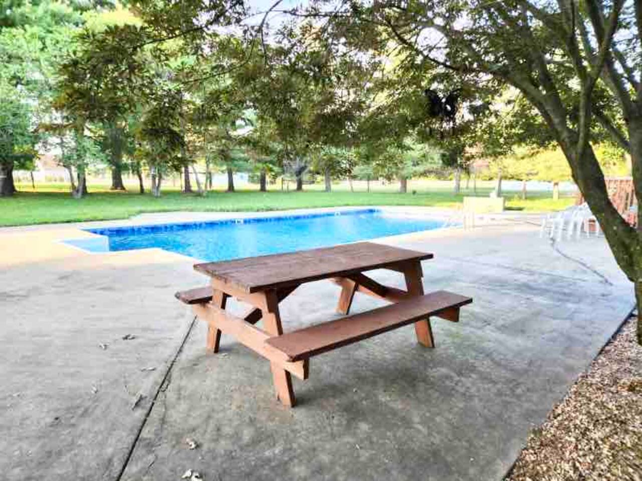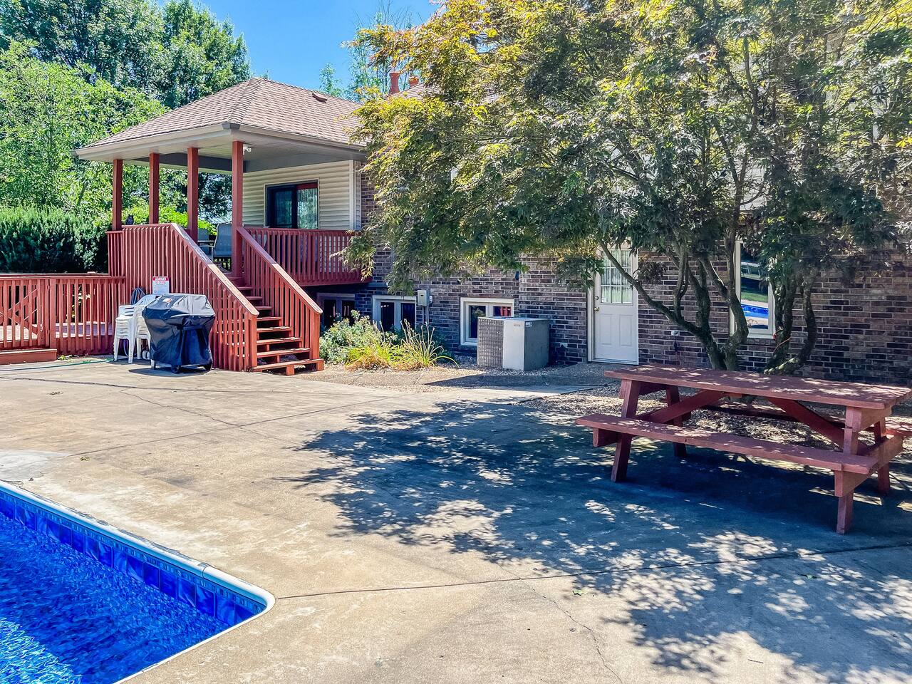 Please inquire about specific dates. Gather outside for a day filled with grilling and corn hole a night around the fire-pit. Take a seat on the covered deck overlooking the spacious grounds. Watch the kids play in the pool from the largedeck offering both sun and shade. Stay in and enjoy any of the 4 'levels' of the home. Enter from the front door to the main living room, kitchen and dining room. Take a short flight of stairs up to 3 of the bedrooms: Queen bed with ensuite bathroom with whirlpool tub, Queen bed, and 3 Twin beds, plus a full bathroom to share. Take a short flight down to the ground level that has stair-free access from the back yard and the King bedroom. The backyard entrance takes you through a bathroom. From that level, down a short flight of stairs into the large fully finished basement living room with large TV and plenty of space for the kids to jump on the small trampoline, play corn-hole, or one of the many board games. Our Pool is seasonal and closes on Sept 20, 2025 and will reopen sometime in May 2026.