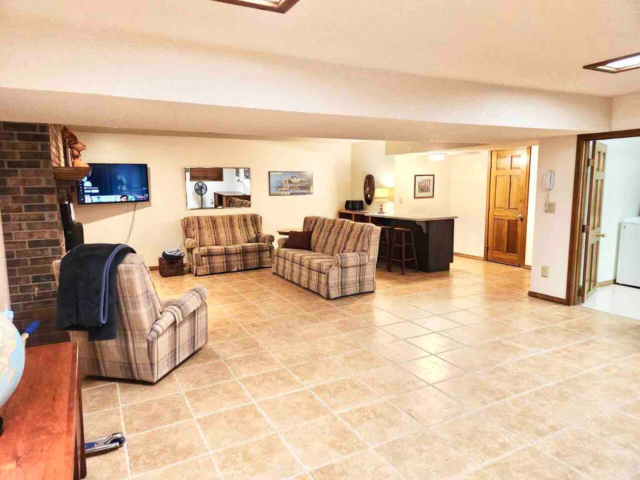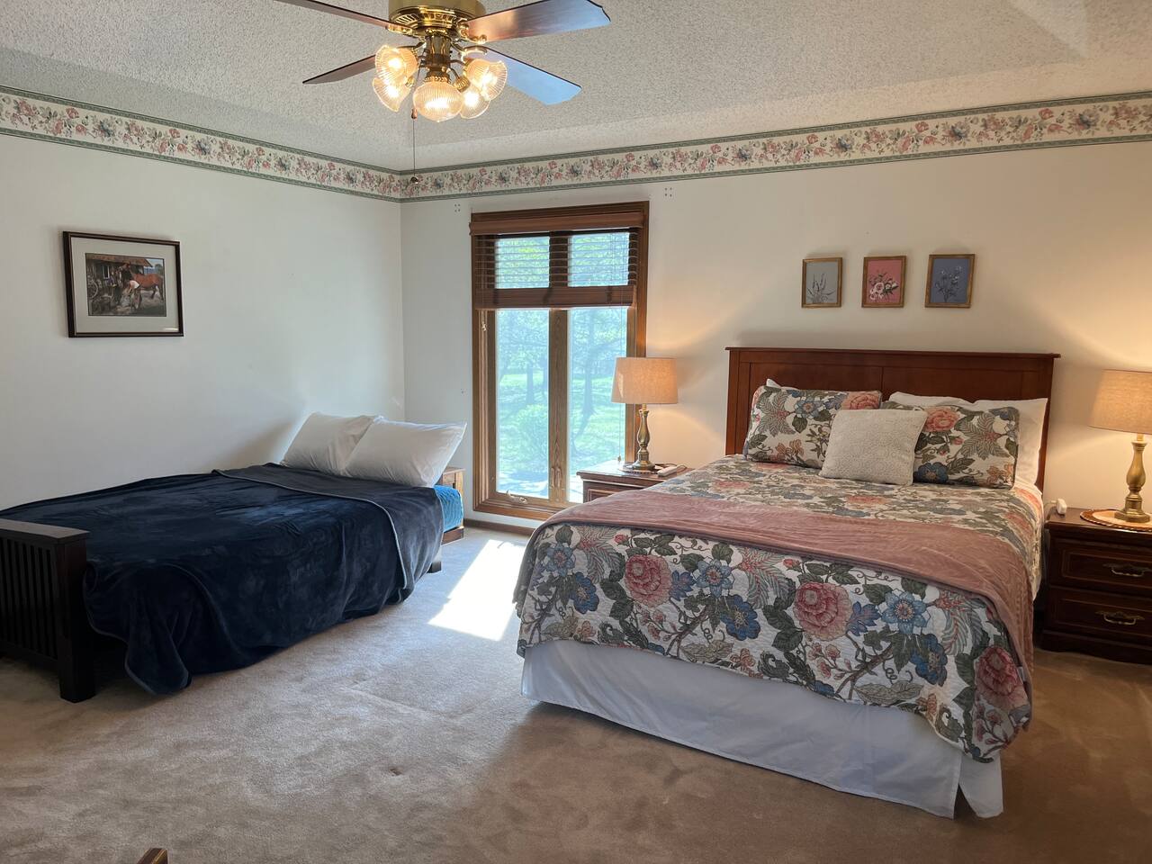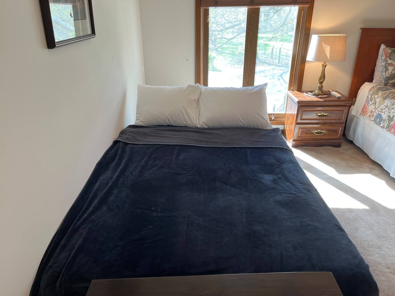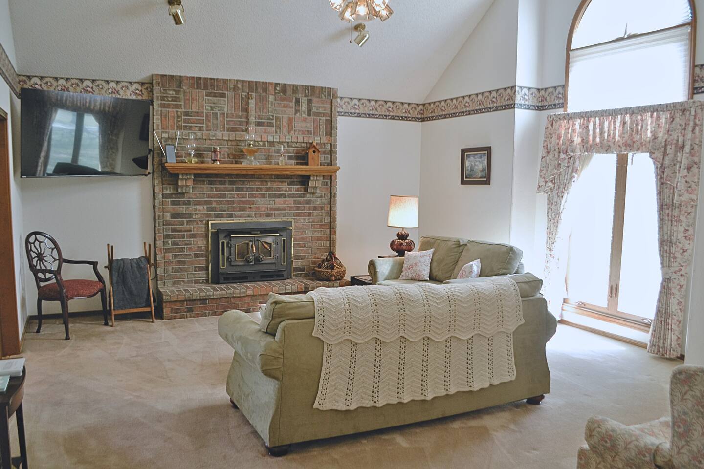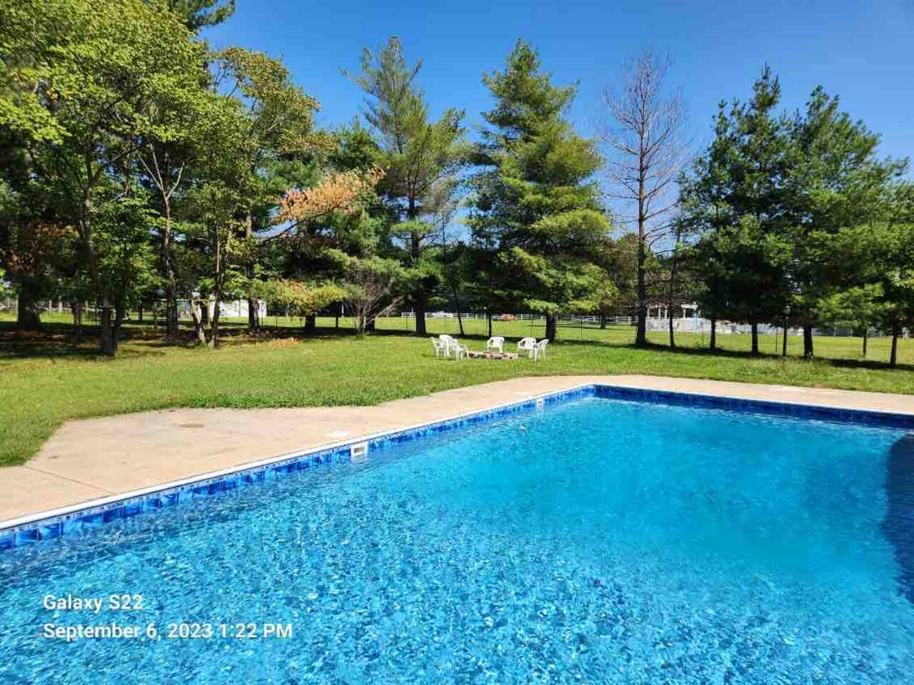 Please inquire about specific dates. Gather outside for a day filled with grilling and corn hole a night around the fire-pit. Take a seat on the covered deck overlooking the spacious grounds. Watch the kids play in the pool from the largedeck offering both sun and shade. Stay in and enjoy any of the 4 'levels' of the home. Enter from the front door to the main living room, kitchen and dining room. Take a short flight of stairs up to 3 of the bedrooms: Queen bed with ensuite bathroom with whirlpool tub, Queen bed, and 3 Twin beds, plus a full bathroom to share. Take a short flight down to the ground level that has stair-free access from the back yard and the King bedroom. The backyard entrance takes you through a bathroom. From that level, down a short flight of stairs into the large fully finished basement living room with large TV and plenty of space for the kids to jump on the small trampoline, play corn-hole, or one of the many board games. Our Pool is seasonal and closes on Sept 20, 2025 and will reopen sometime in May 2026.