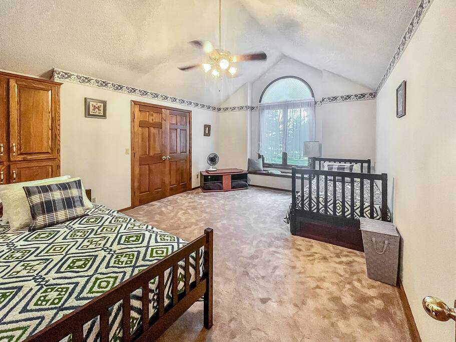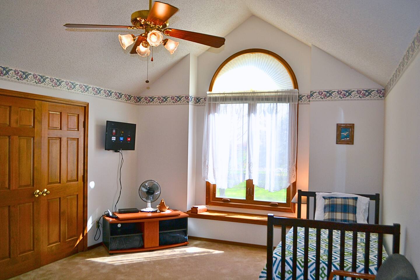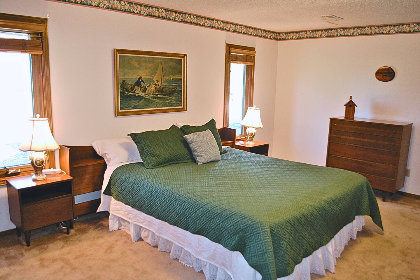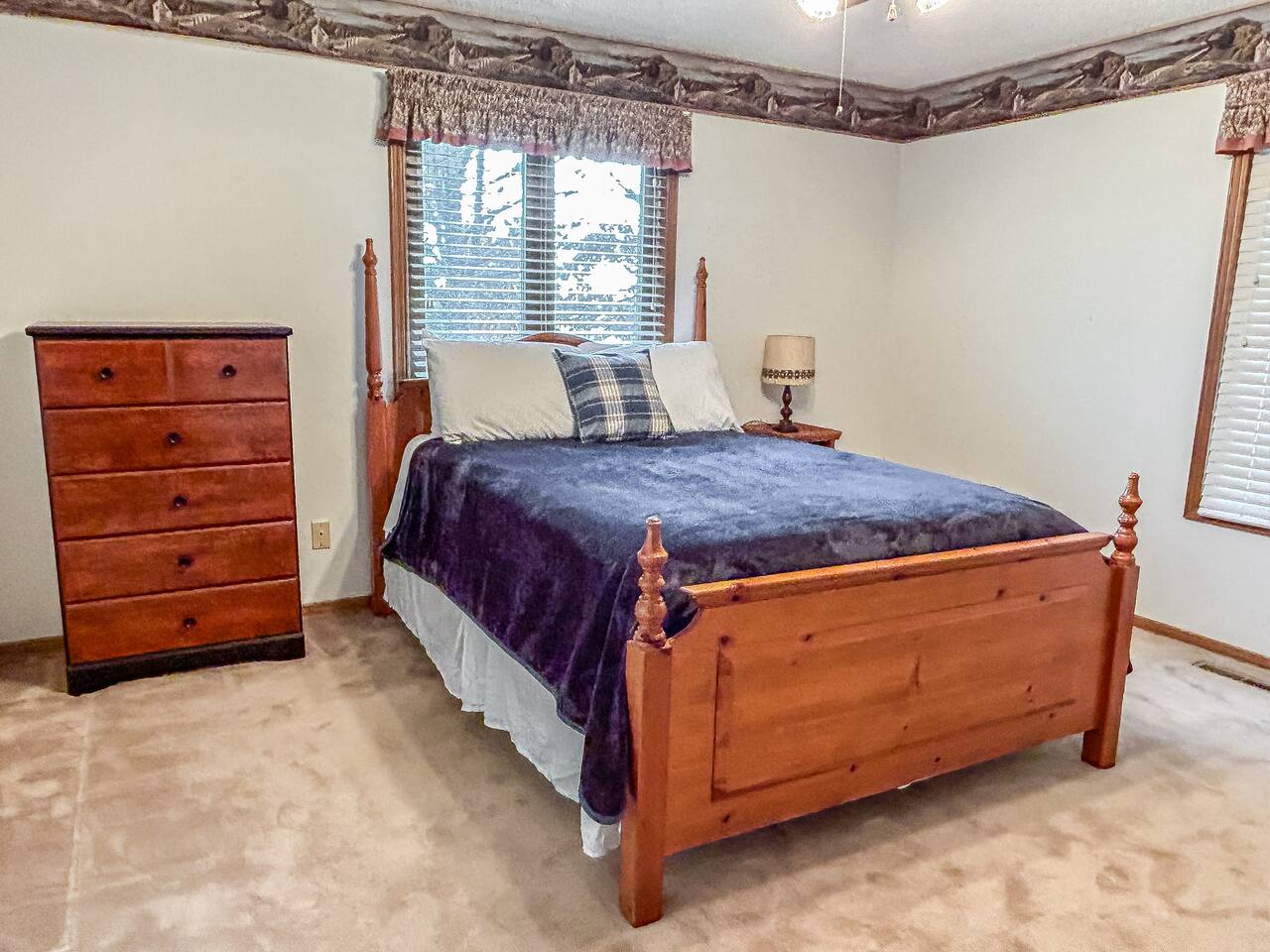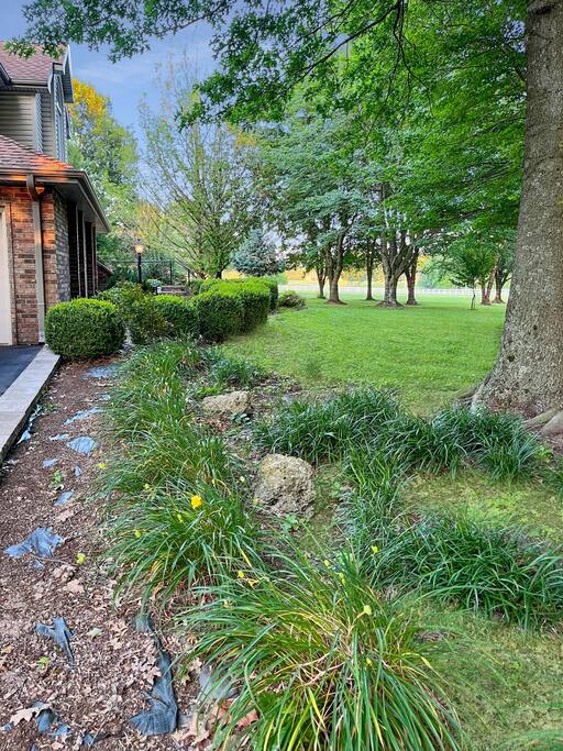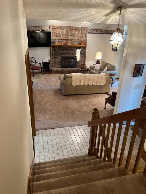 Please inquire about specific dates. Gather outside for a day filled with grilling and corn hole a night around the fire-pit. Take a seat on the covered deck overlooking the spacious grounds. Watch the kids play in the pool from the largedeck offering both sun and shade. Stay in and enjoy any of the 4 'levels' of the home. Enter from the front door to the main living room, kitchen and dining room. Take a short flight of stairs up to 3 of the bedrooms: Queen bed with ensuite bathroom with whirlpool tub, Queen bed, and 3 Twin beds, plus a full bathroom to share. Take a short flight down to the ground level that has stair-free access from the back yard and the King bedroom. The backyard entrance takes you through a bathroom. From that level, down a short flight of stairs into the large fully finished basement living room with large TV and plenty of space for the kids to jump on the small trampoline, play corn-hole, or one of the many board games. Our Pool is seasonal and closes on Sept 20, 2025 and will reopen sometime in May 2026.