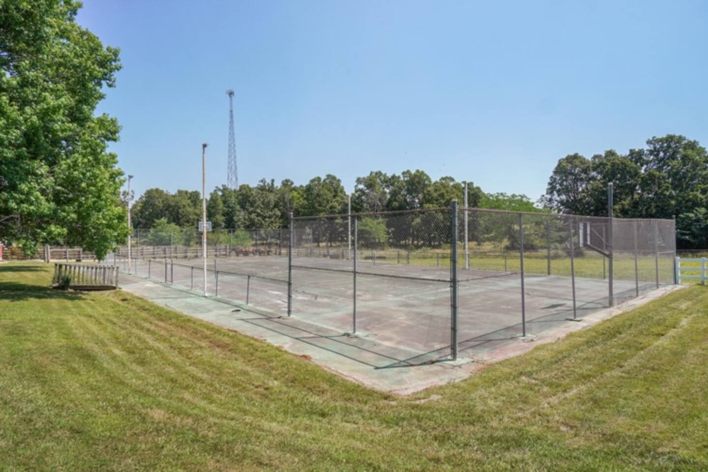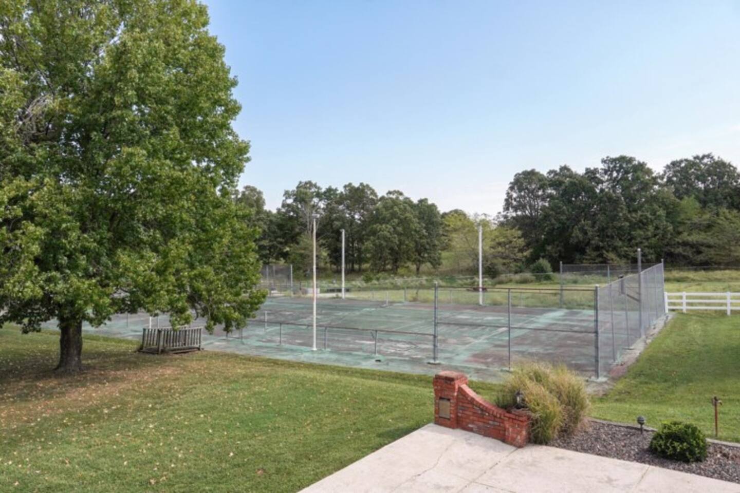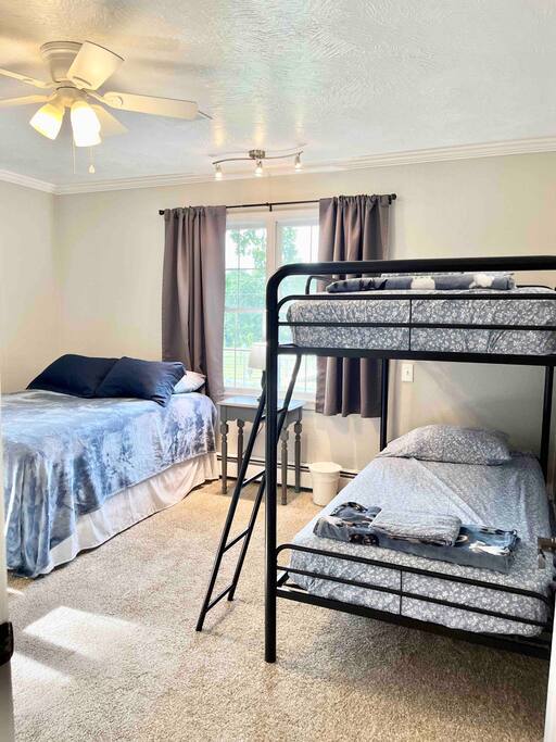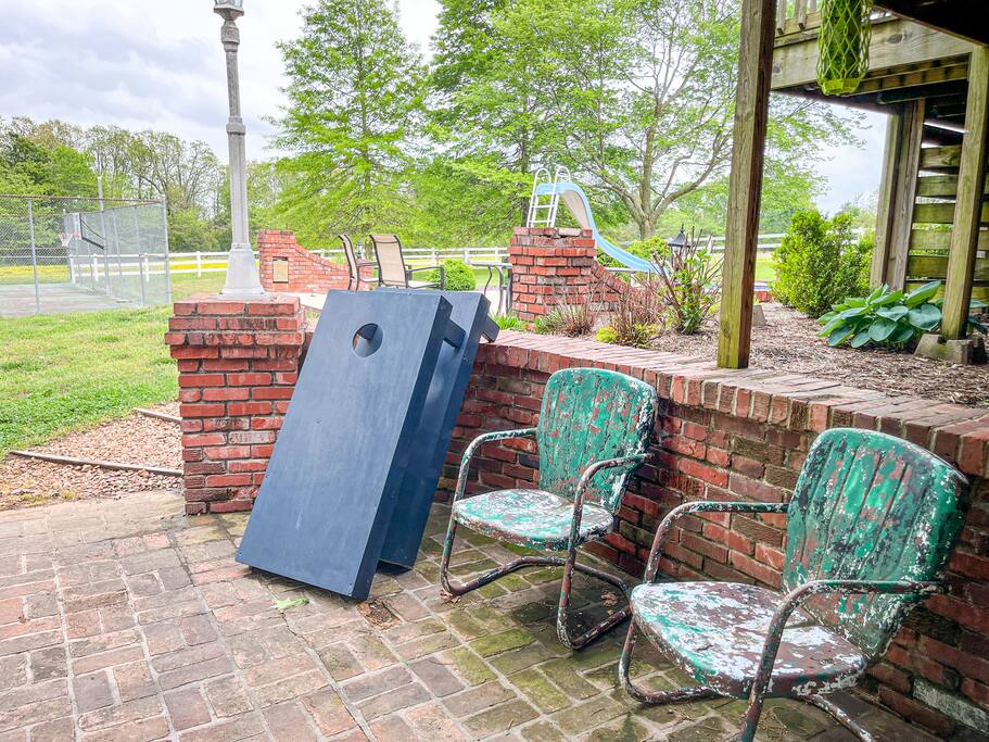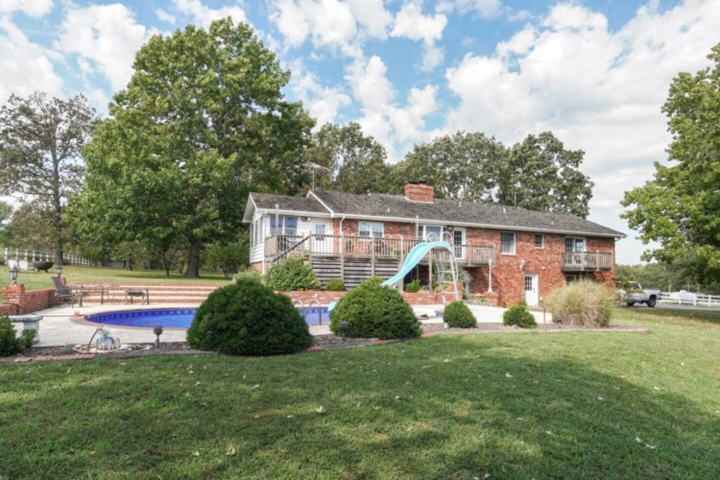 Soak up the fall colors on the patio, grill out on the deck, or play a friendly game of basketball or tennis on the full tennis court. This lovely 3,277 sqft, split level home offers 3 living areas, a spacious kitchen, working fireplace, a cozy sun room, back deck and so much more. Enjoy a family meal around the classic dining table situated in the farmhouse style dining room or pass round sandwiches at the eat bar in the kitchen. Step out back to join your friends and family gathered around the fire-pit, as the steaks and burgers cook on the grill. You may want to curl up for a movie in on a rainy day or setup one of the various board games for a little friendly competition. Enter in the grand front door and up a short flight of stairs to the main living area with smart TV and comfortable seating. The well stocked kitchen awaits overlooking the pool for you to mingle while you prepare your favorite dishes. You can feast together in the large dining room with space for everyone. or sip coffee in the sunroom overlooking the beautiful grounds. This floor holds the Primary bedroom with En Suite bathroom, the second Queen bedroom, Shared Bedroom with Full and Twin bunk beds, and a beautiful shared bathroom with decadent clawfoot tub. Head downstairs to the laundry room, second full living room with smart TV and pull out sofa bed. This level has its own full bathroom and the 4th bedroom with a Queen bed. Exit to ground level with the back yard with beautiful seating areas and the seasonal pool, open May thru September. (ask about specific dates). The Pool is available seasonally. It reopens sometime around Memorial Day 2026 (as for specific date).