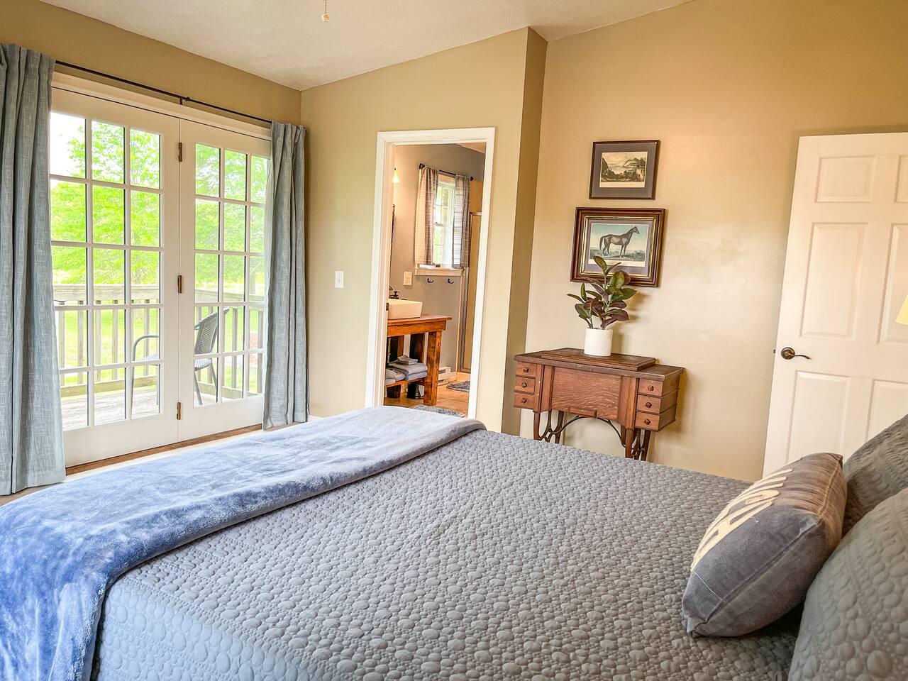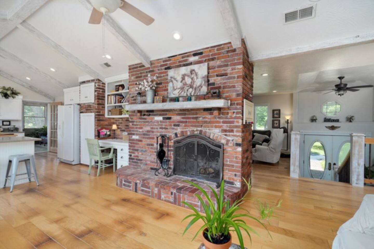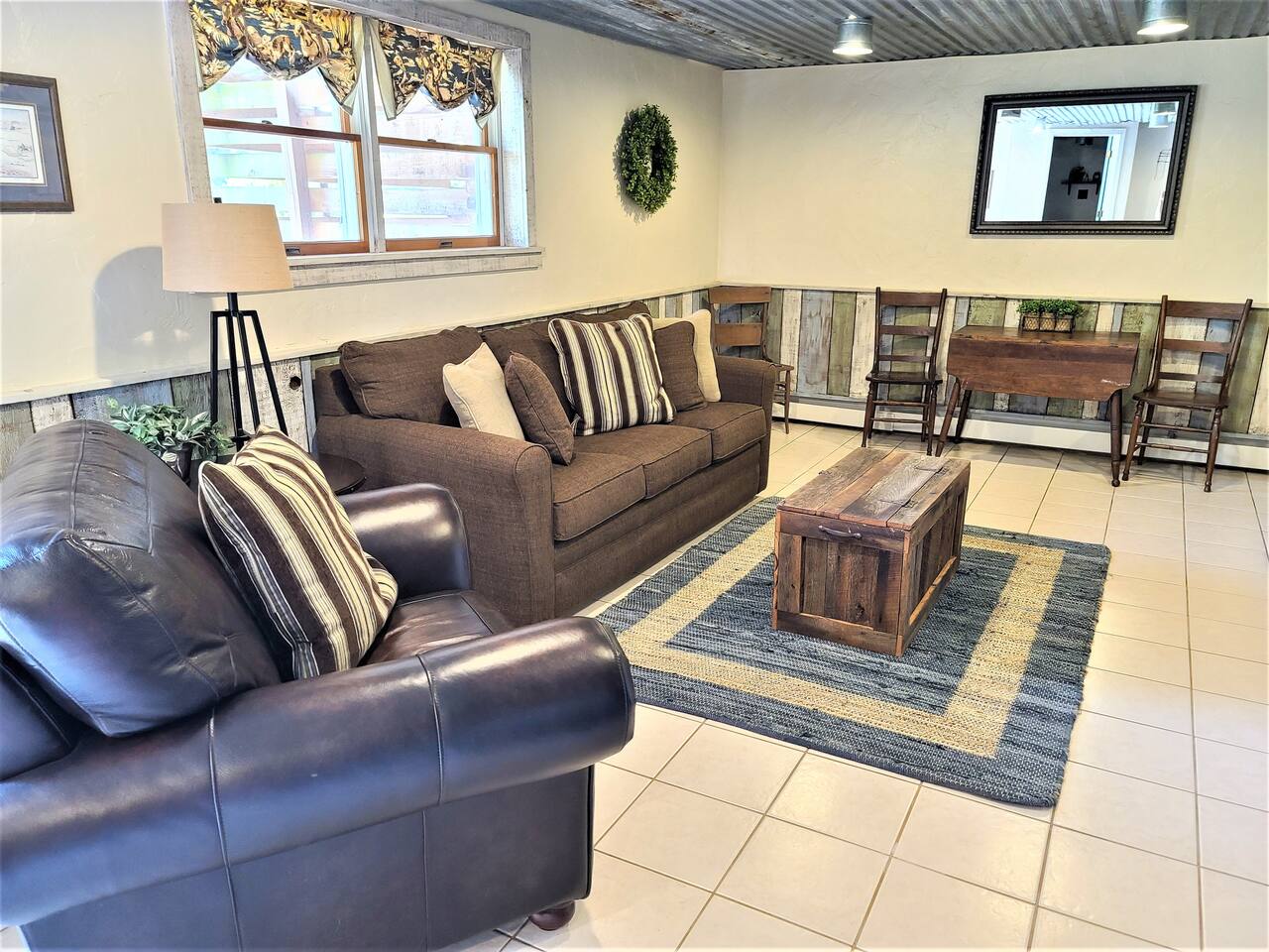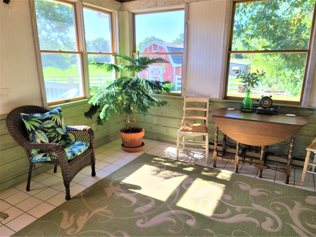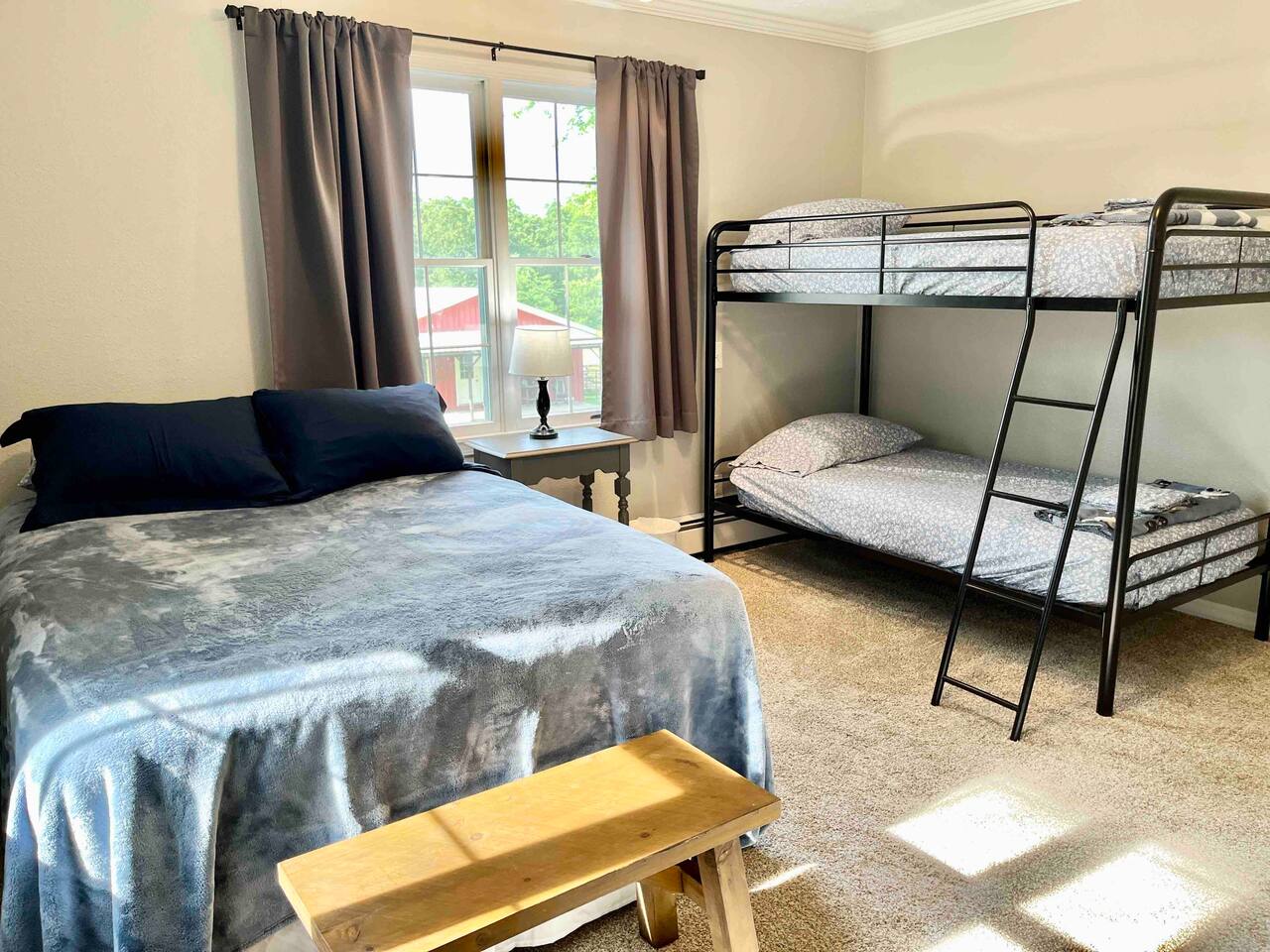Take in the colors of fall at Redemption Ranch. Grill your best burgers on the deck overlooking the spacious grounds. Listen to the wildlife chatting around the firepit. Turn on one of the smart TVs in the multiple living spaces to catch the game or watch a movie. The comfortable beds provide a restful night’s sleep for all. We have just added lodging in the Tack Room on the same property. Inquire about the space if you need some extra room!