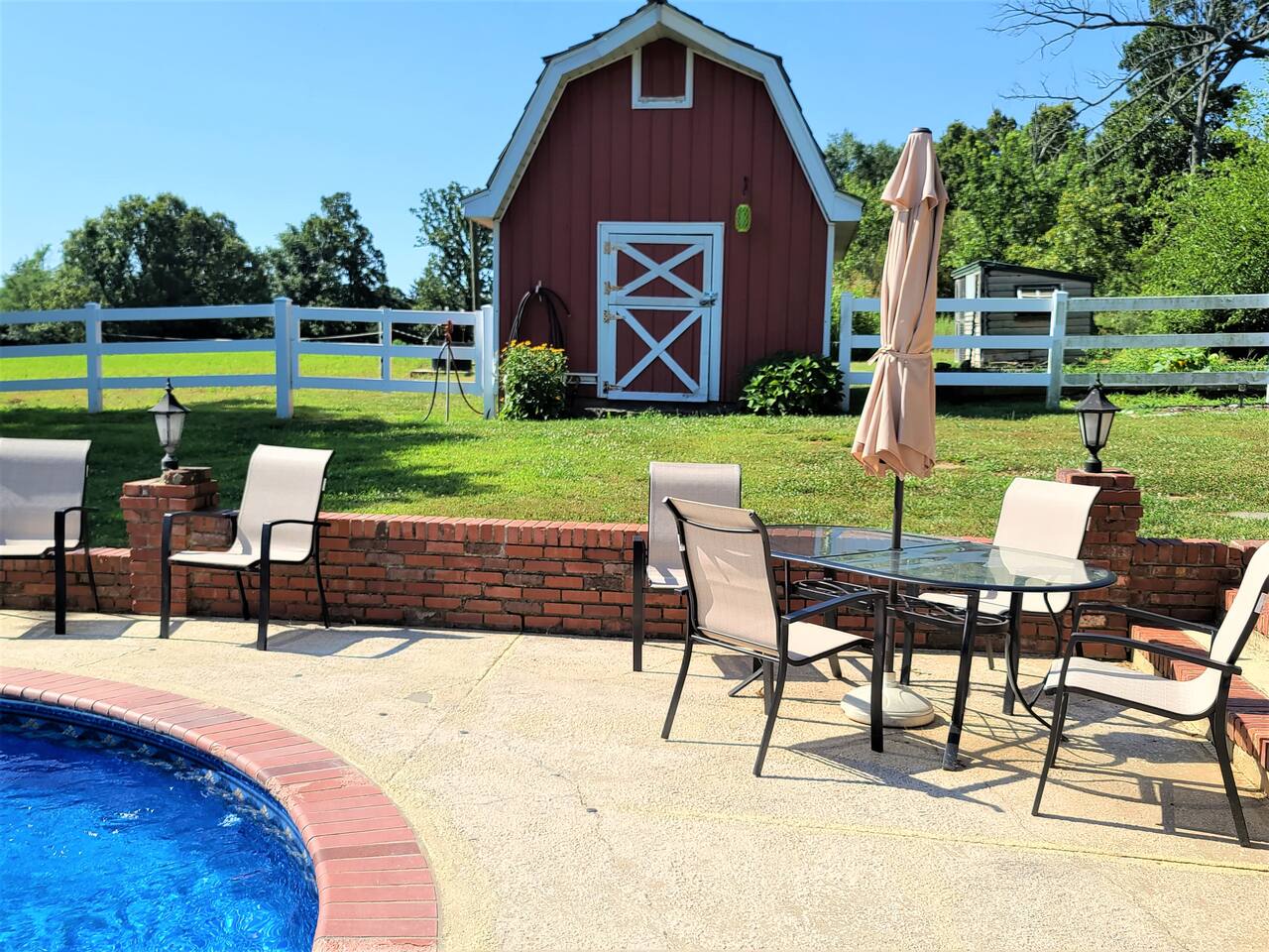 For the most accurate pricing, it is important to input the correct number of Overnight Guests when you book. If you plan to have pets, please list them when you book. The Pet Fee covers the first 2 pets, additional fees apply for additional pets. 2025 The pool opens May 20 and will remain open through September (inquire about exact dates). The indoor fireplace is only for use by those who have experience building wood fires indoors. Please read and follow the posted instructions on the mantle of the fireplace. Please keep the main drive back to the barn clear for the farm truck and any guests staying in the Tack Room. Parking on the circle drive and in front of the lower garage is encouraged.