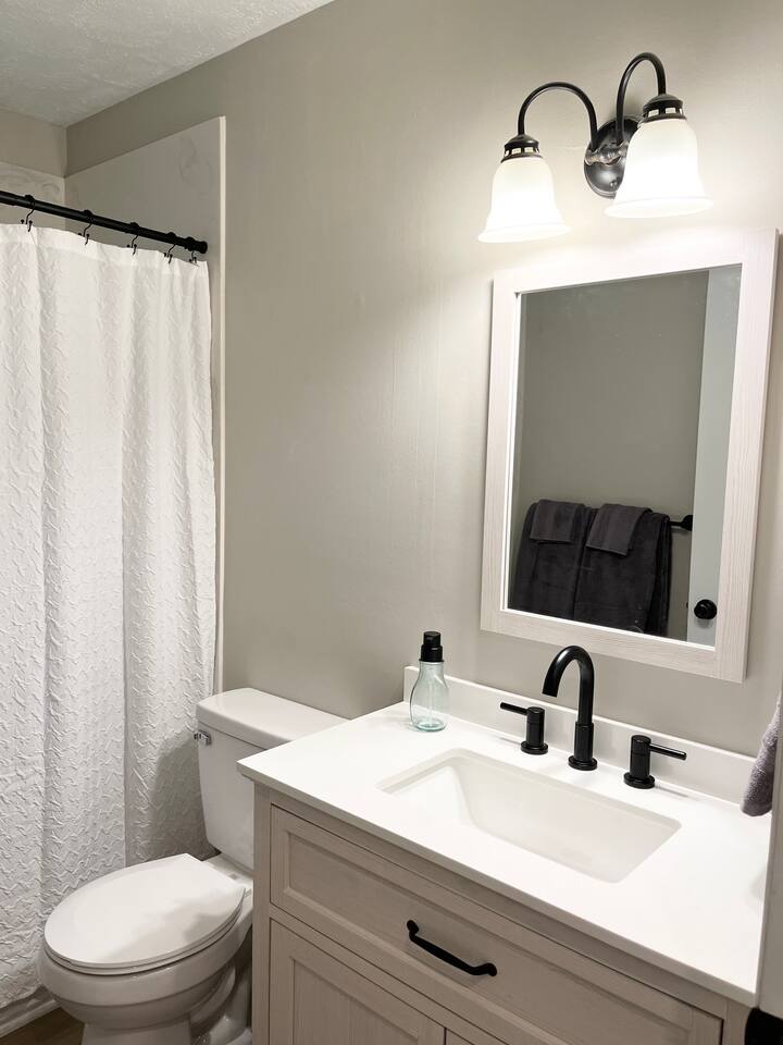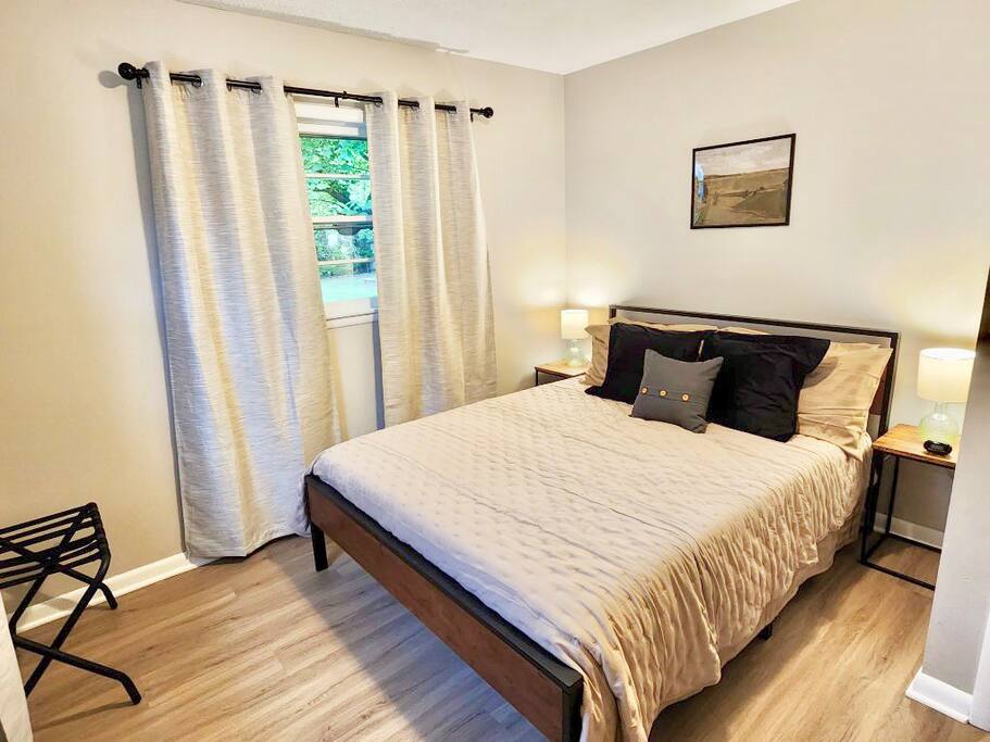 Nested in a perfect central spot, Red Tail Cleft is the right place to start each day. Brand new, very comfortable beds and high-end linens, make for a great night sleep. A well equipped kitchen, open to the living room, makes dining in a breeze. The sofa opens up for the ultimate movie night comfort or an extra place to sleep. Lounge in the hammock swing in the back yard watching birds and bunnies. Keep an eye out for the neighborhood hawk as you walk over to Bass Pro/Wonders of Wildlife.