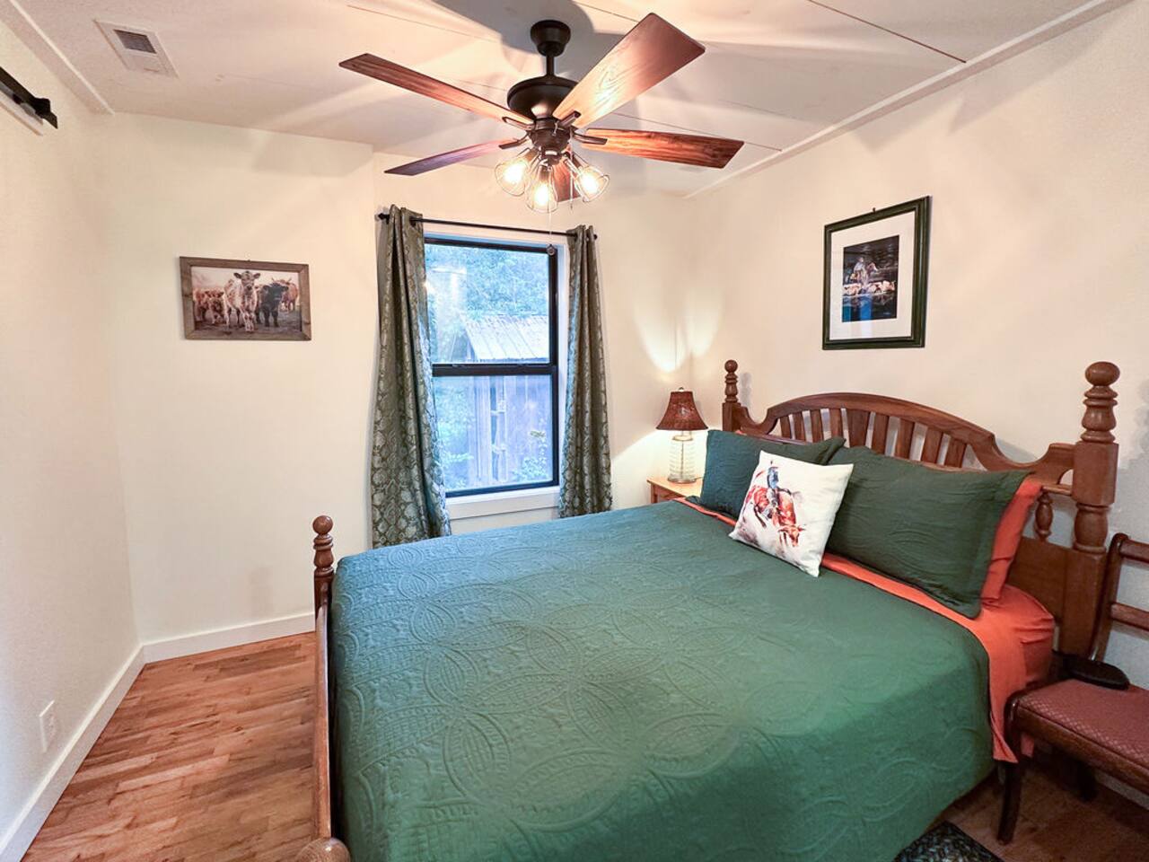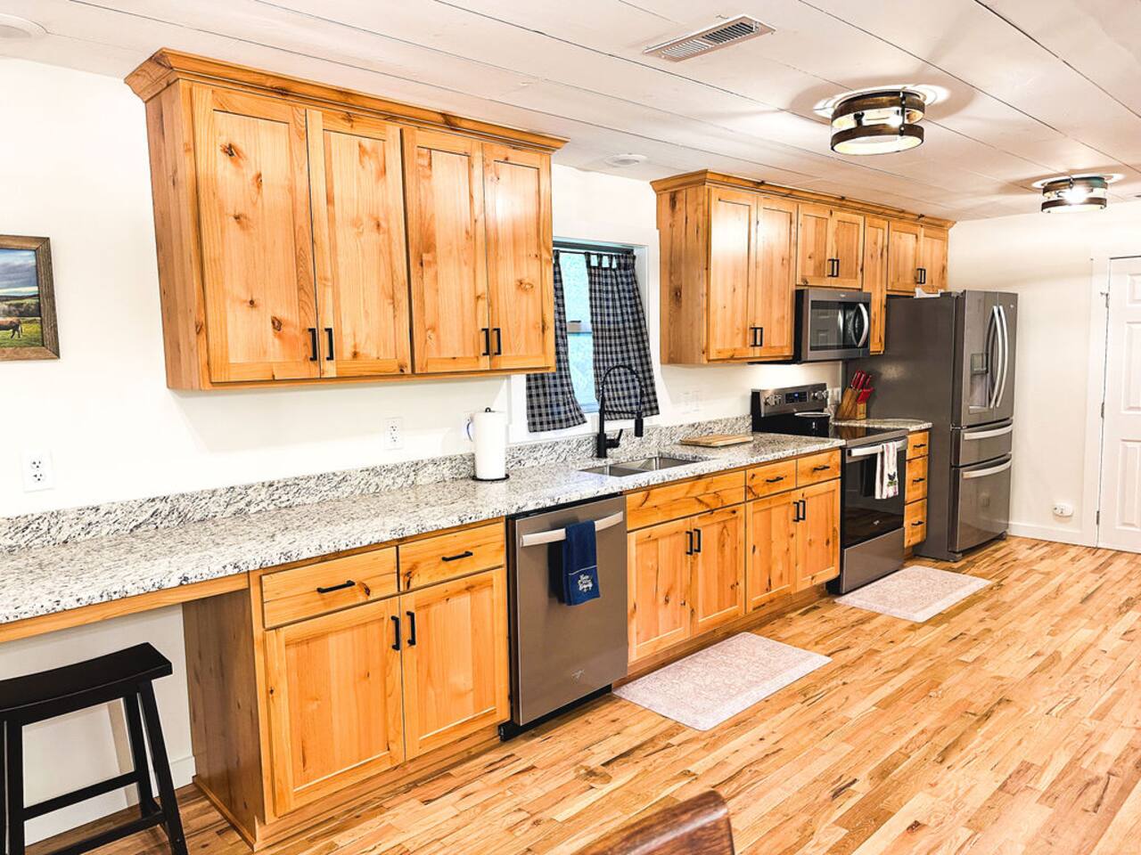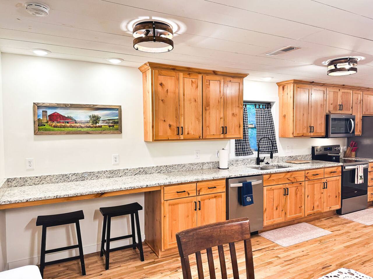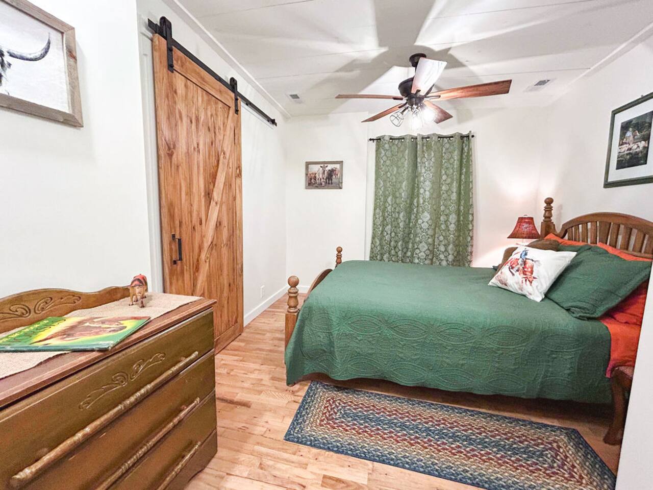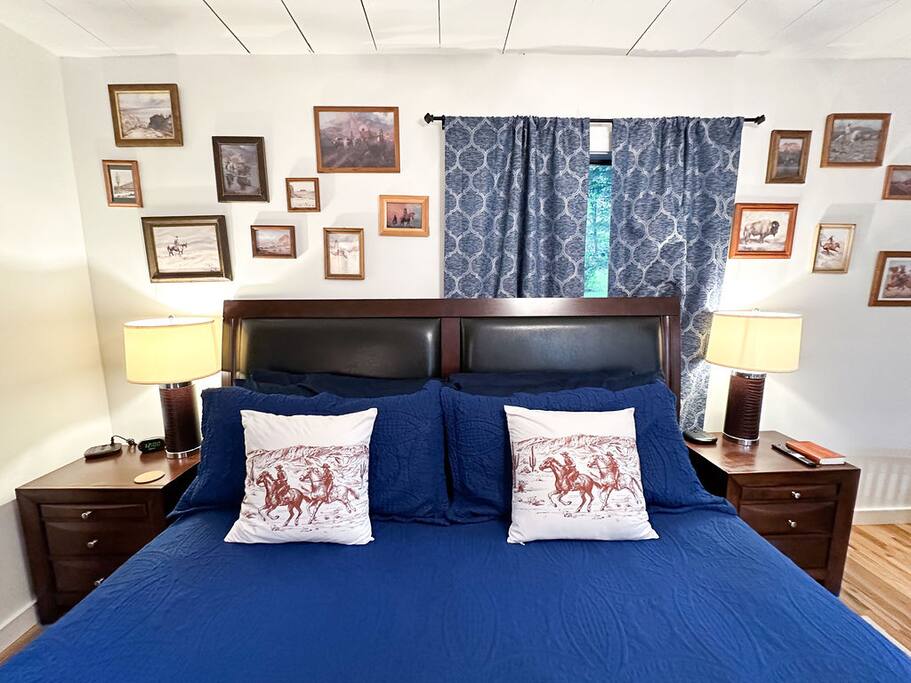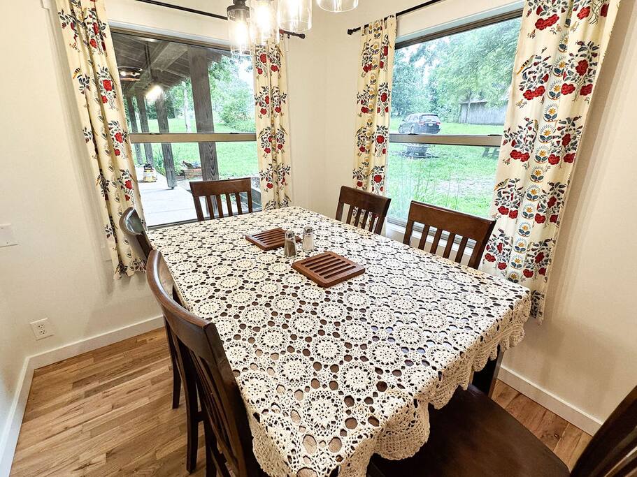 This well-appointed, fully renovated western home has all the charm of a country cowboy bunk house and all the comfort of a luxury stay. You will love the convenience of the large bedrooms, 3 full bathrooms, wide doorways, and the majority of the home being on one level ( the kitchen is two steps down.) There is plenty of seating in the spscious living room for y'all to gather for conversation. In this house, every seat is a prime location for watching the large screen smart TV. The game hall is perfect for a rousing board game or to find a quiet chair to read a book. Cooking up delicious meals is a joy in the bright and airy kitchen that has every thing you need and a few extras. This kitchenn is very well stocked to cook all your meals at the house. The shaded grassy lawns bordered by rustic old wooden barns makes the outdoor space as attractive as the lovely inside. Enjoy a meal out on the picnic table or around the fire pit that is outfitted with a grill top.. There is plenty of parking for multiple vehicles along the circular drive way and in front of the barns. Welcome SMOOR (Southern Missouri Off Road Ranch) visitors!