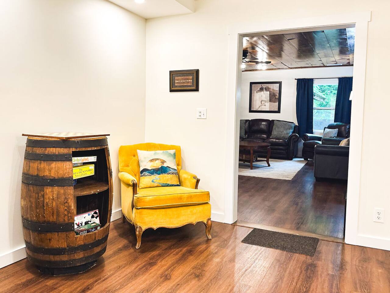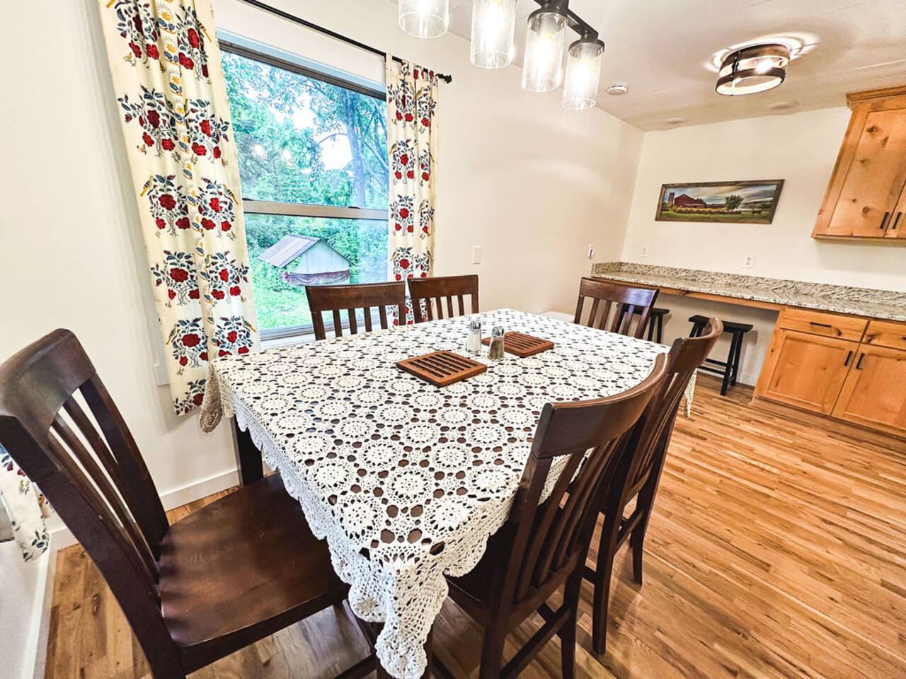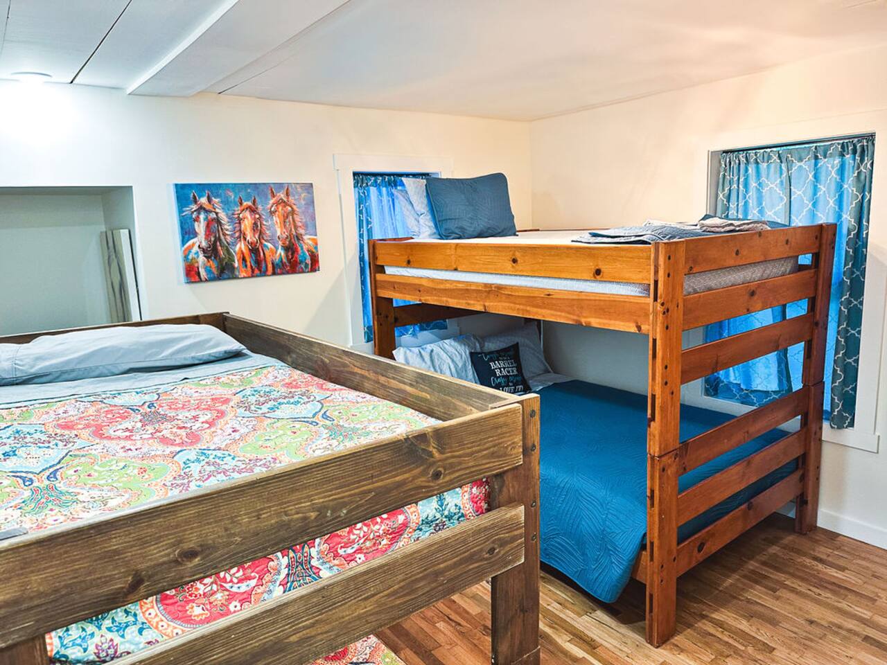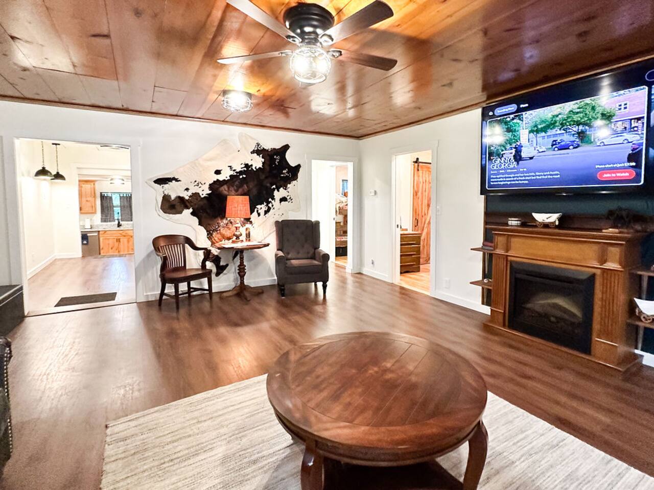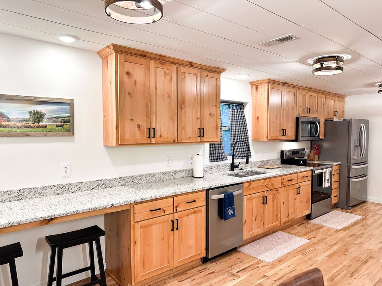 This well-appointed, fully renovated western home has all the charm of a country cowboy bunk house and all the comfort of a luxury stay. You will love the convenience of the large bedrooms, 3 full bathrooms, wide doorways, and the majority of the home being on one level ( the kitchen is two steps down.) There is plenty of seating in the spscious living room for y'all to gather for conversation. In this house, every seat is a prime location for watching the large screen smart TV. The game hall is perfect for a rousing board game or to find a quiet chair to read a book. Cooking up delicious meals is a joy in the bright and airy kitchen that has every thing you need and a few extras. This kitchenn is very well stocked to cook all your meals at the house. The shaded grassy lawns bordered by rustic old wooden barns makes the outdoor space as attractive as the lovely inside. Enjoy a meal out on the picnic table or around the fire pit that is outfitted with a grill top.. There is plenty of parking for multiple vehicles along the circular drive way and in front of the barns. Welcome SMOOR (Southern Missouri Off Road Ranch) visitors!