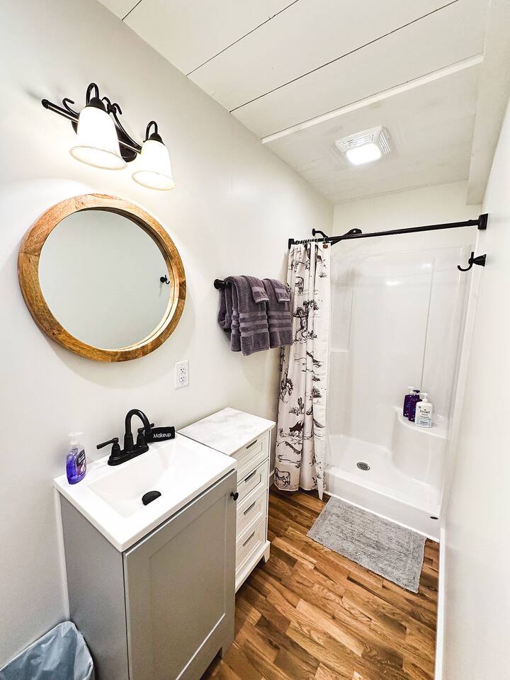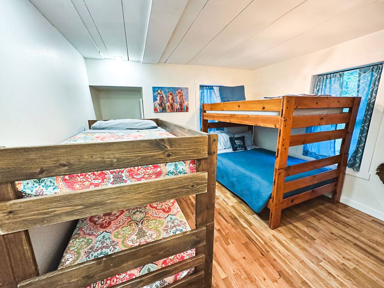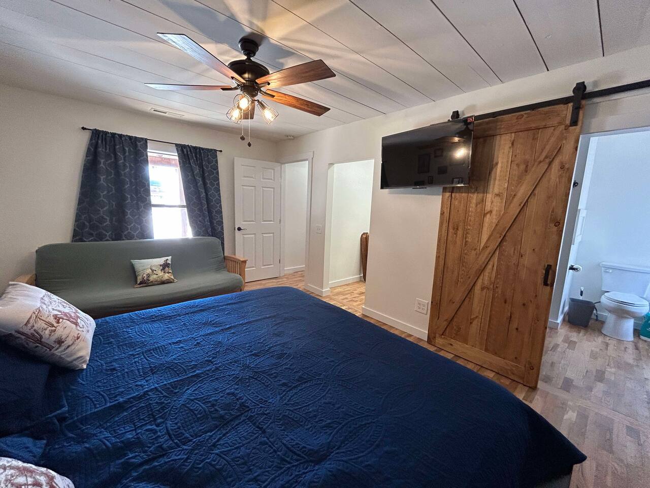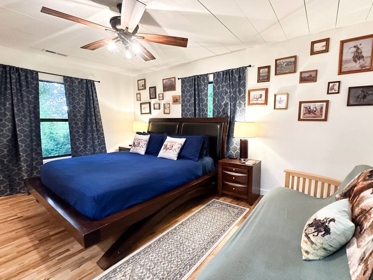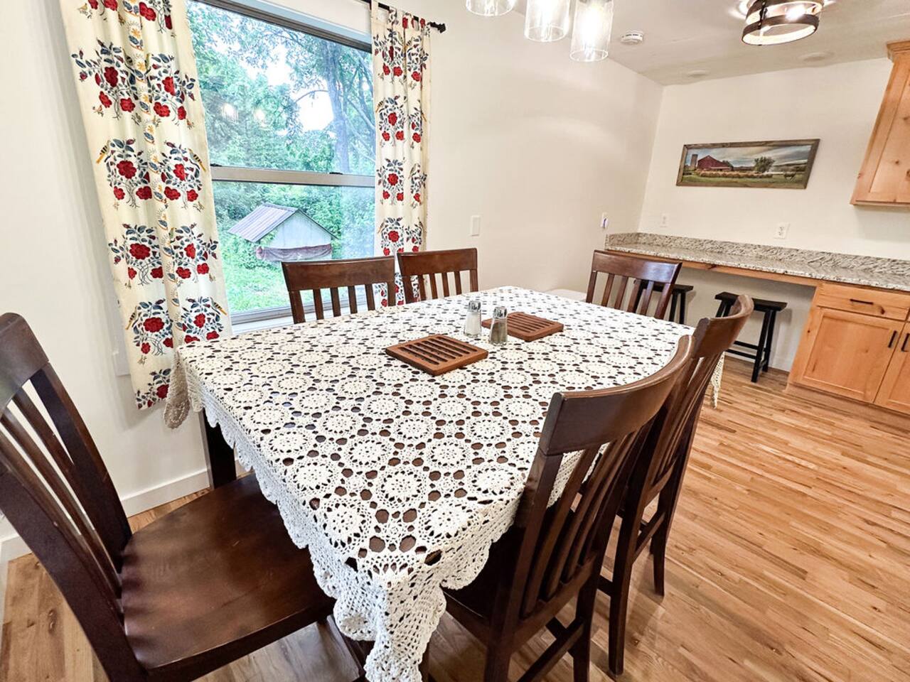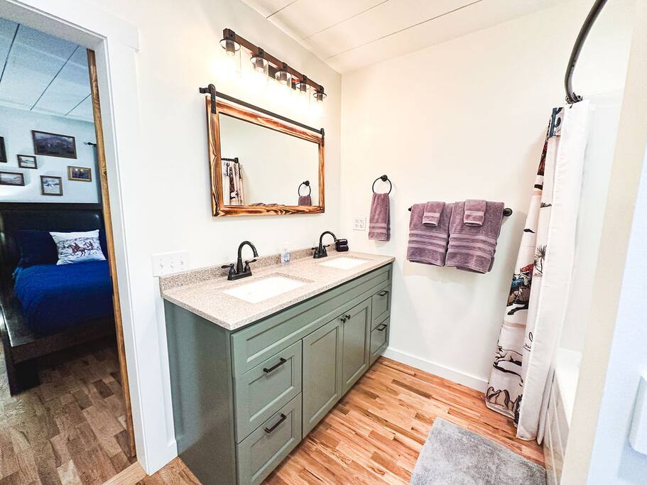 This well-appointed, fully renovated western home has all the charm of a country cowboy bunk house and all the comfort of a luxury stay. You will love the convenience of the large bedrooms, 3 full bathrooms, wide doorways, and the majority of the home being on one level ( the kitchen is two steps down.) There is plenty of seating in the spscious living room for y'all to gather for conversation. In this house, every seat is a prime location for watching the large screen smart TV. The game hall is perfect for a rousing board game or to find a quiet chair to read a book. Cooking up delicious meals is a joy in the bright and airy kitchen that has every thing you need and a few extras. This kitchenn is very well stocked to cook all your meals at the house. The shaded grassy lawns bordered by rustic old wooden barns makes the outdoor space as attractive as the lovely inside. Enjoy a meal out on the picnic table or around the fire pit that is outfitted with a grill top.. There is plenty of parking for multiple vehicles along the circular drive way and in front of the barns. Welcome SMOOR (Southern Missouri Off Road Ranch) visitors!