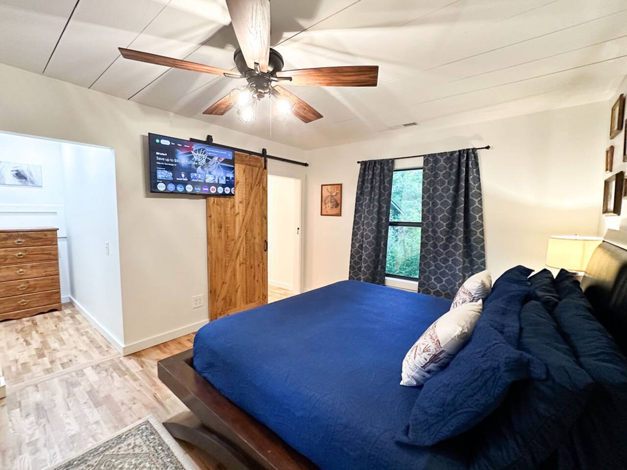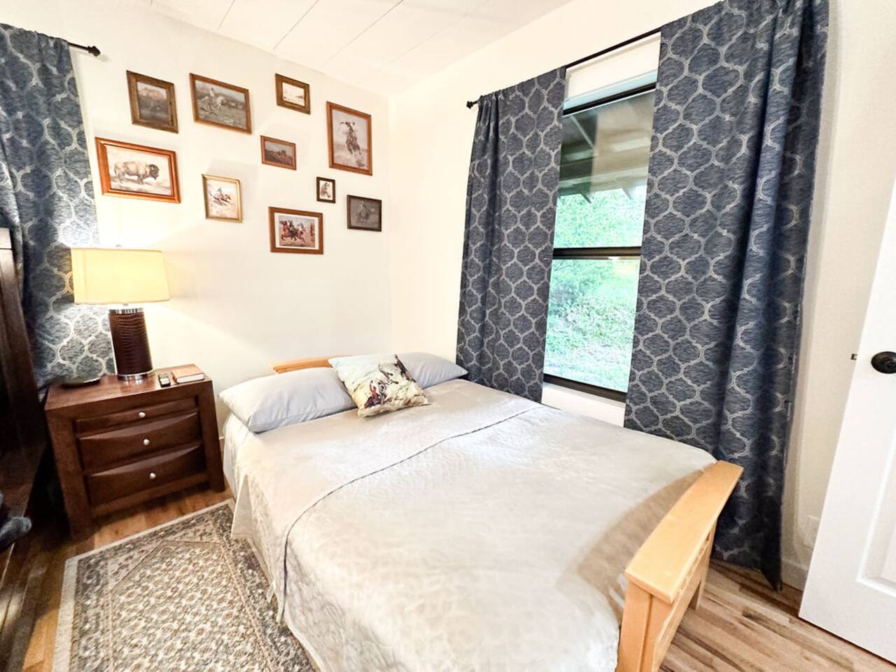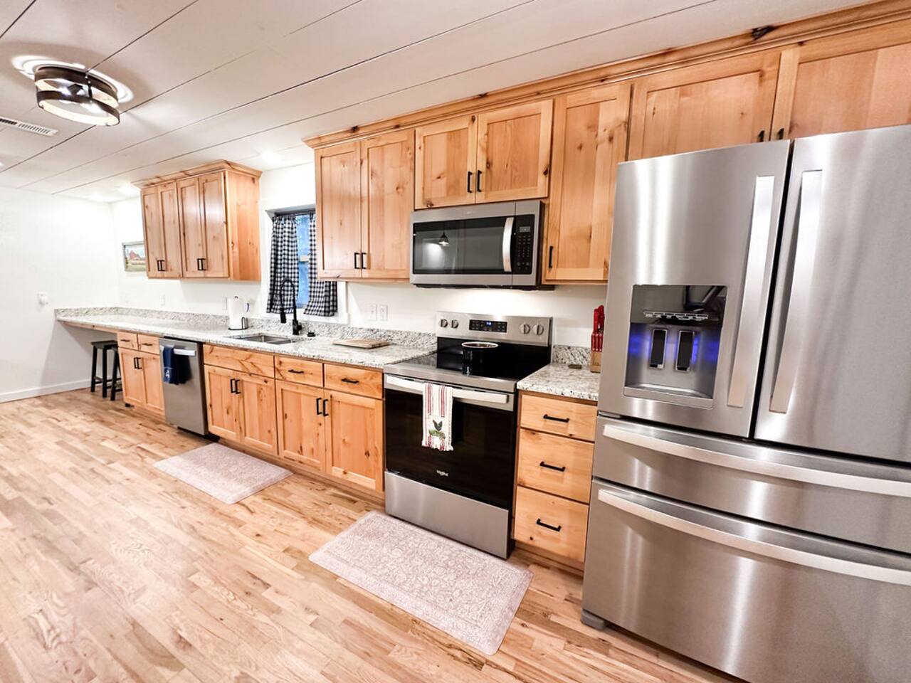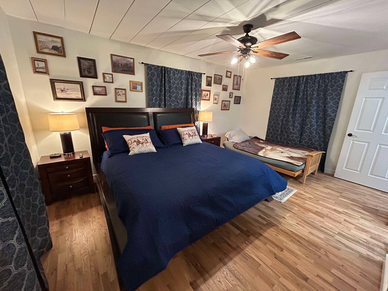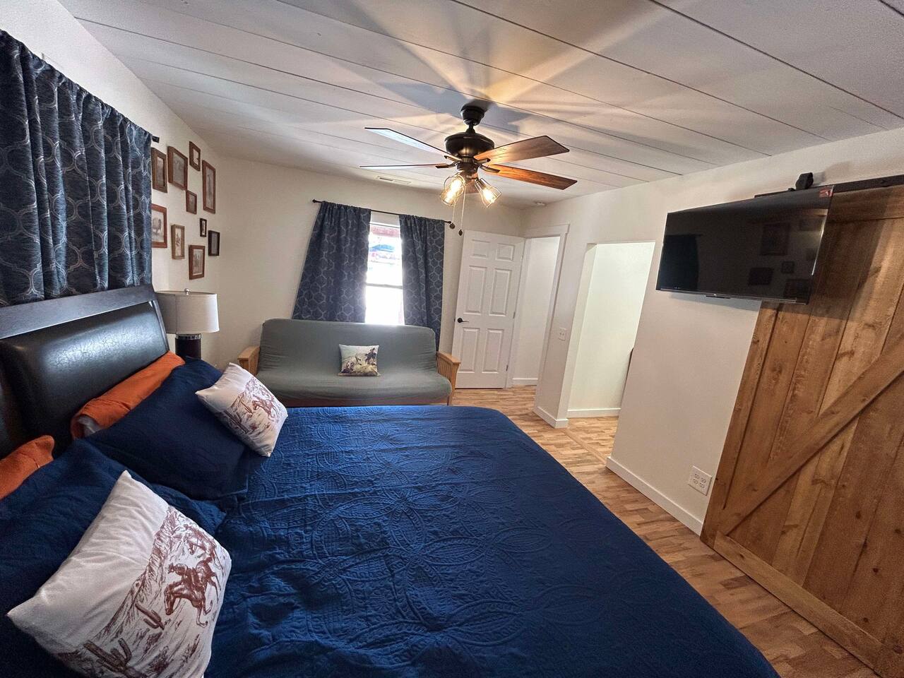 This well-appointed, fully renovated western home has all the charm of a country cowboy bunk house and all the comfort of a luxury stay. You will love the convenience of the large bedrooms, 3 full bathrooms, wide doorways, and the majority of the home being on one level ( the kitchen is two steps down.) There is plenty of seating in the spscious living room for y'all to gather for conversation. In this house, every seat is a prime location for watching the large screen smart TV. The game hall is perfect for a rousing board game or to find a quiet chair to read a book. Cooking up delicious meals is a joy in the bright and airy kitchen that has every thing you need and a few extras. This kitchenn is very well stocked to cook all your meals at the house. The shaded grassy lawns bordered by rustic old wooden barns makes the outdoor space as attractive as the lovely inside. Enjoy a meal out on the picnic table or around the fire pit that is outfitted with a grill top.. There is plenty of parking for multiple vehicles along the circular drive way and in front of the barns. Welcome SMOOR (Southern Missouri Off Road Ranch) visitors!