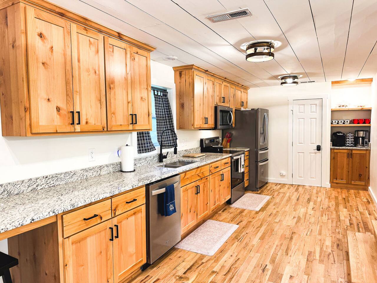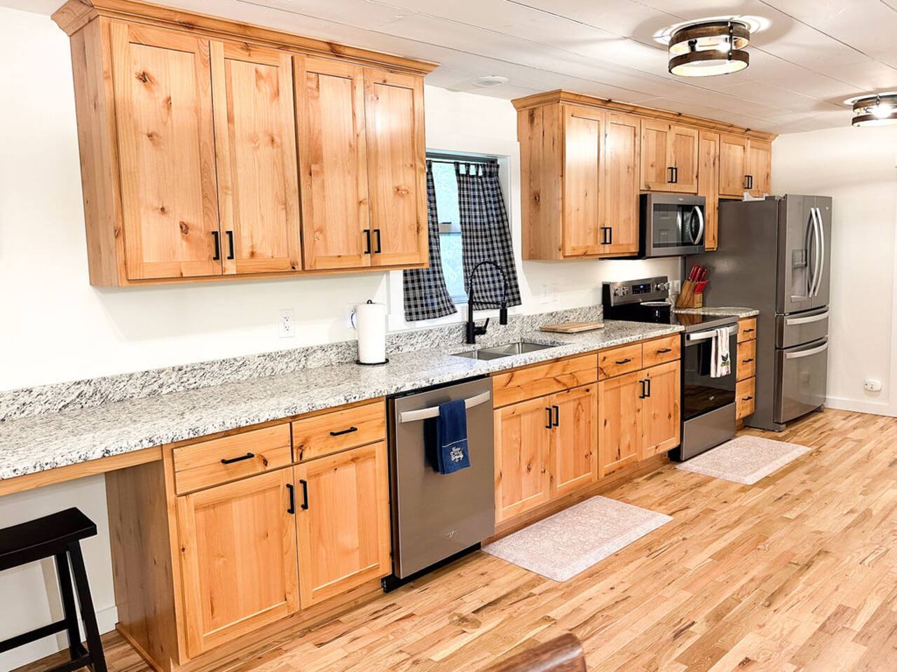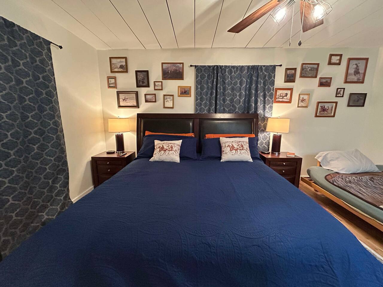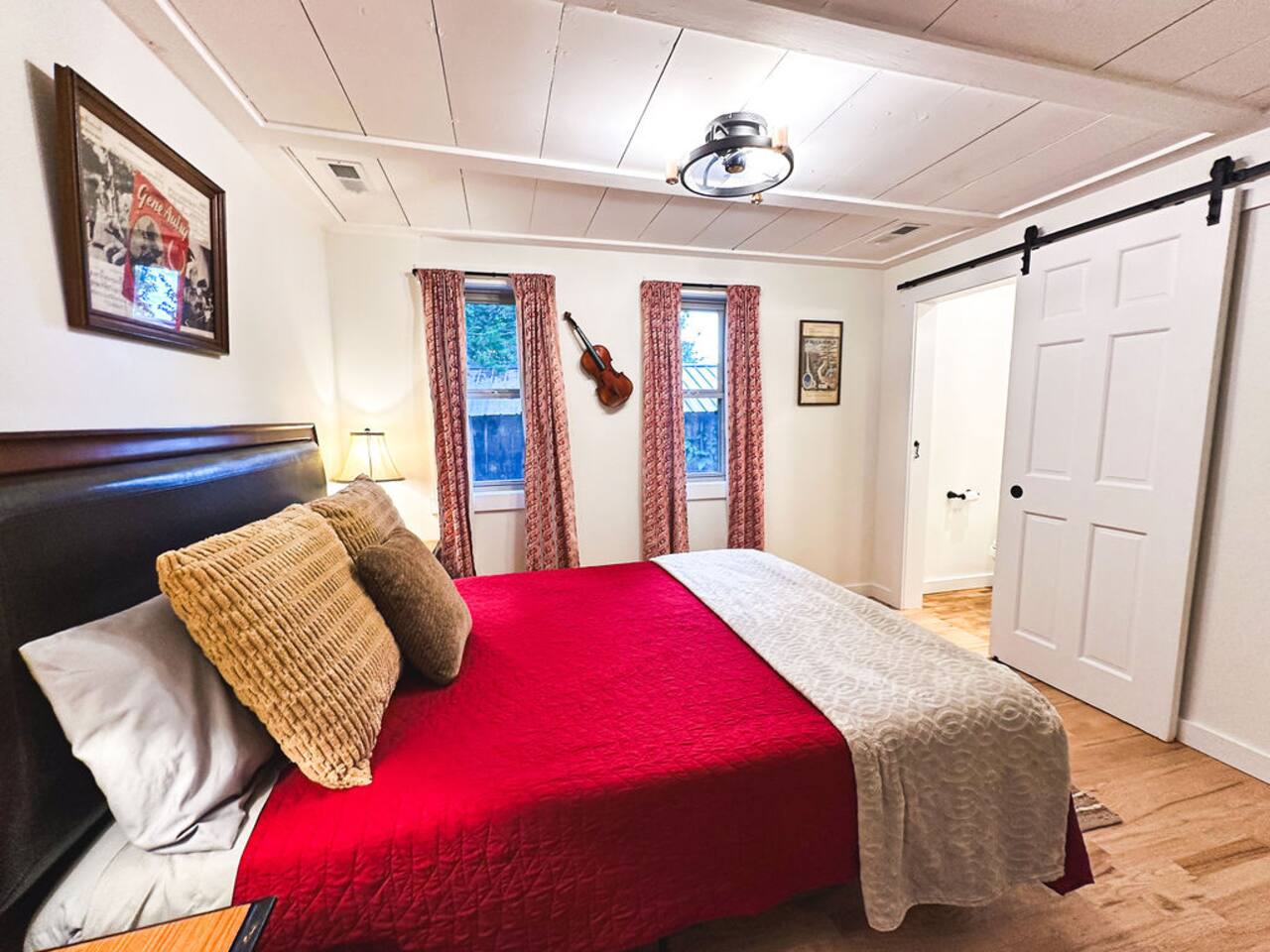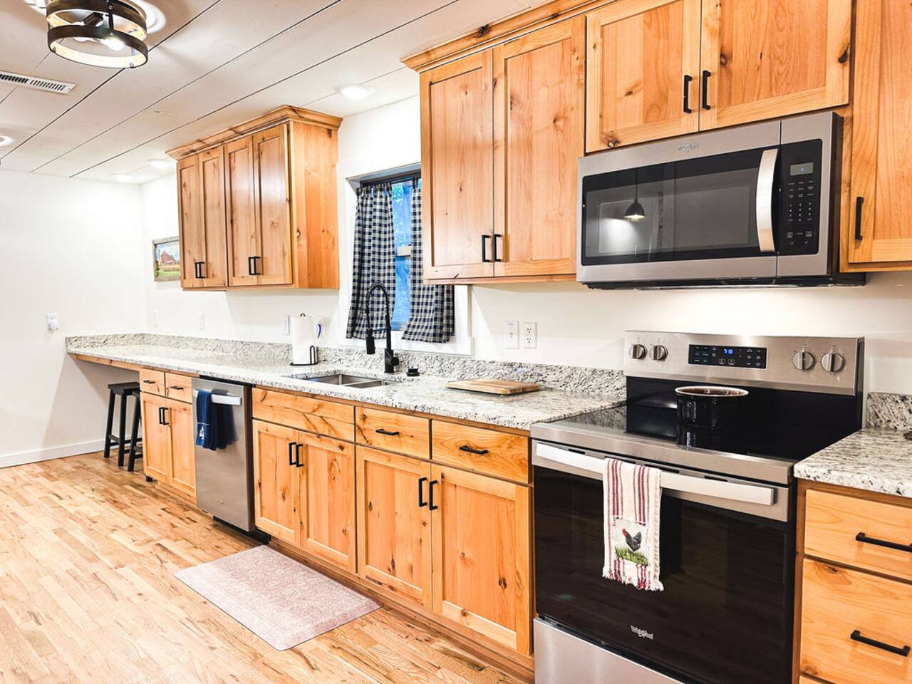 This well-appointed, fully renovated western home has all the charm of a country cowboy bunk house and all the comfort of a luxury stay. You will love the convenience of the large bedrooms, 3 full bathrooms, wide doorways, and the majority of the home being on one level ( the kitchen is two steps down.) There is plenty of seating in the spscious living room for y'all to gather for conversation. In this house, every seat is a prime location for watching the large screen smart TV. The game hall is perfect for a rousing board game or to find a quiet chair to read a book. Cooking up delicious meals is a joy in the bright and airy kitchen that has every thing you need and a few extras. This kitchenn is very well stocked to cook all your meals at the house. The shaded grassy lawns bordered by rustic old wooden barns makes the outdoor space as attractive as the lovely inside. Enjoy a meal out on the picnic table or around the fire pit that is outfitted with a grill top.. There is plenty of parking for multiple vehicles along the circular drive way and in front of the barns. Welcome SMOOR (Southern Missouri Off Road Ranch) visitors!
