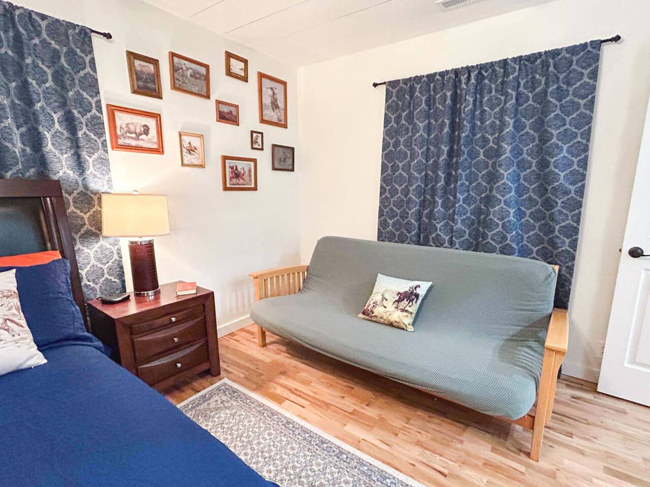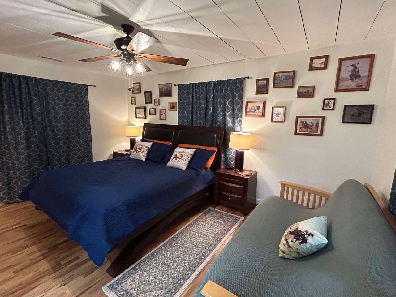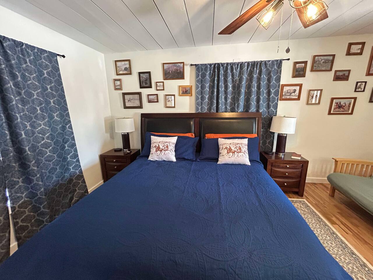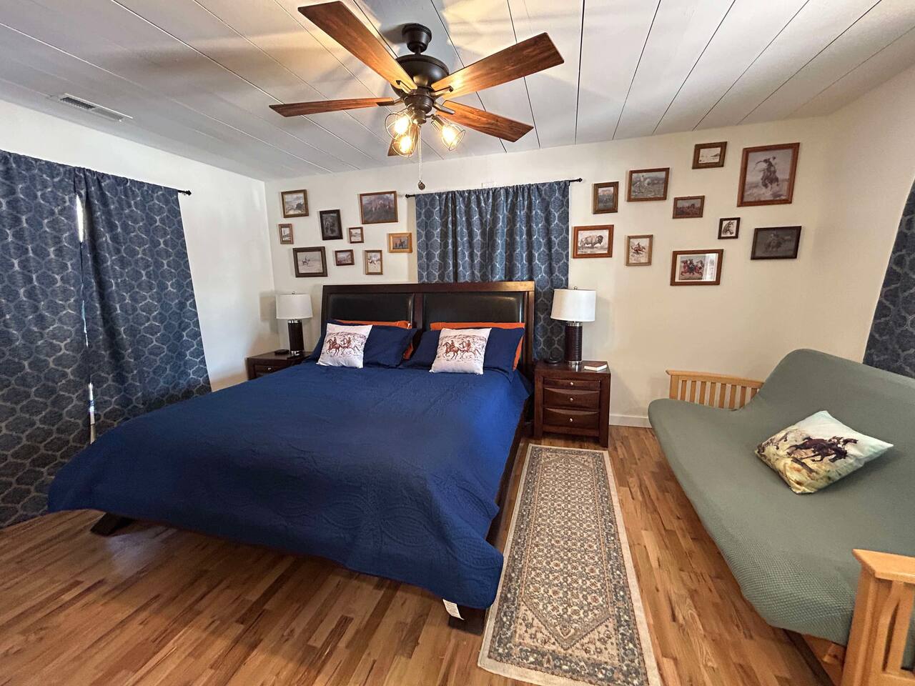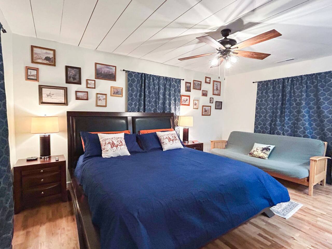 This well-appointed, fully renovated western home has all the charm of a country cowboy bunk house and all the comfort of a luxury stay. You will love the convenience of the large bedrooms, 3 full bathrooms, wide doorways, and the majority of the home being on one level ( the kitchen is two steps down.) There is plenty of seating in the spscious living room for y'all to gather for conversation. In this house, every seat is a prime location for watching the large screen smart TV. The game hall is perfect for a rousing board game or to find a quiet chair to read a book. Cooking up delicious meals is a joy in the bright and airy kitchen that has every thing you need and a few extras. This kitchenn is very well stocked to cook all your meals at the house. The shaded grassy lawns bordered by rustic old wooden barns makes the outdoor space as attractive as the lovely inside. Enjoy a meal out on the picnic table or around the fire pit that is outfitted with a grill top.. There is plenty of parking for multiple vehicles along the circular drive way and in front of the barns. Welcome SMOOR (Southern Missouri Off Road Ranch) visitors!