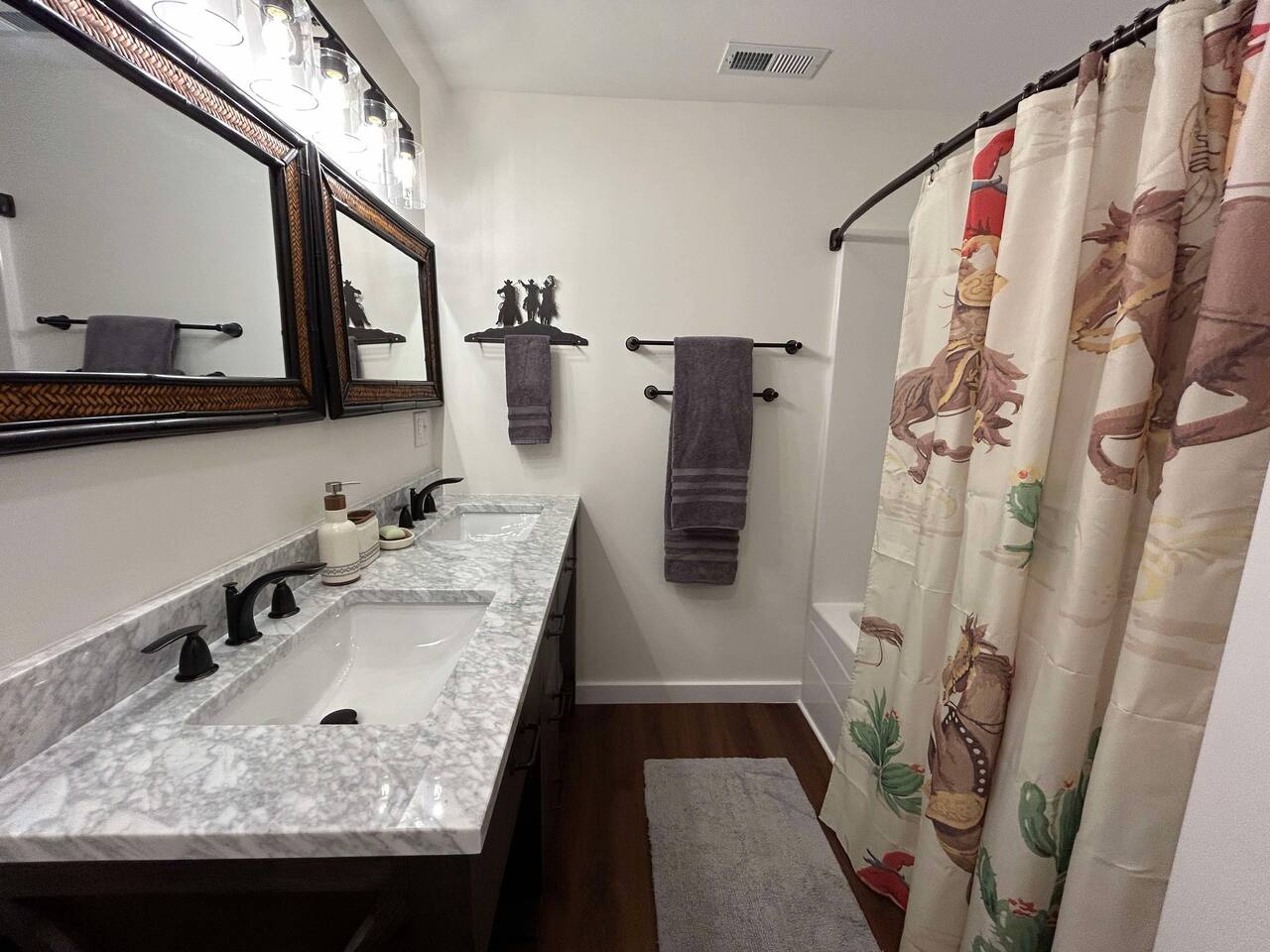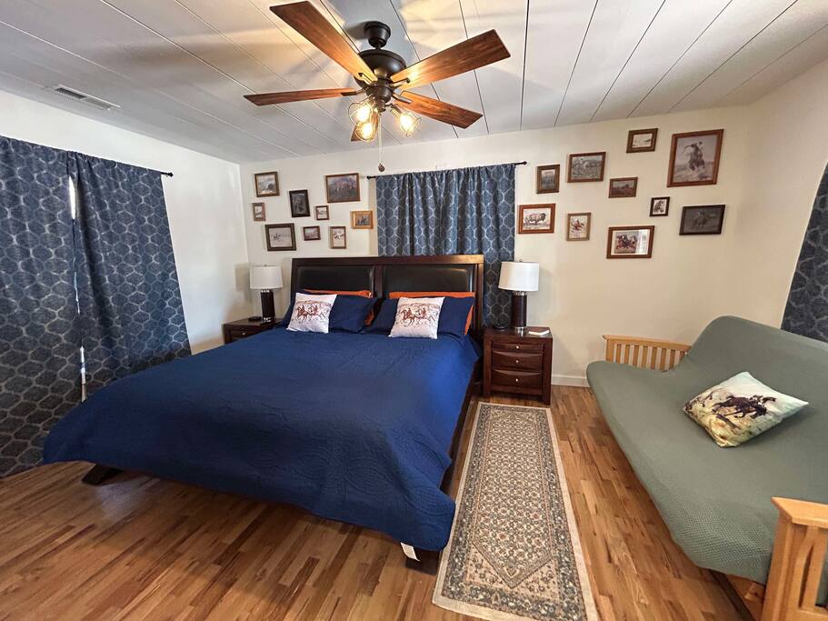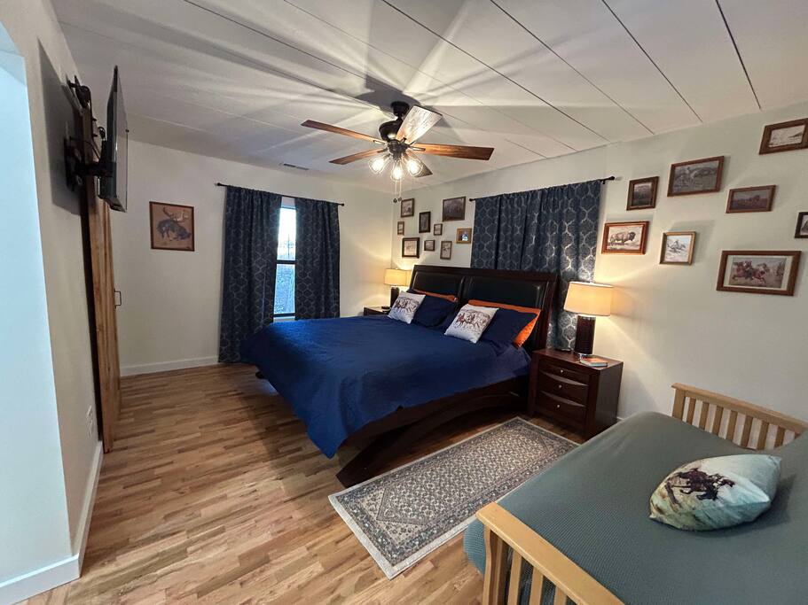 Kick off your boots and hang your hat for a stay at the Rodeo Ranch. This spacious home is well stocked for your entire crew to cook together in the kitchen, enjoy the classic ARCADE game, play board games, or gather together to watch your favorite western on the massive smart TV. Enjoy all the cowboy excitement at the seasonal live rodeos (free) just down the road. Take in the peaceful country life on the front porch, or swap stories around the firepit. Close to SMOOR: room for trailers.