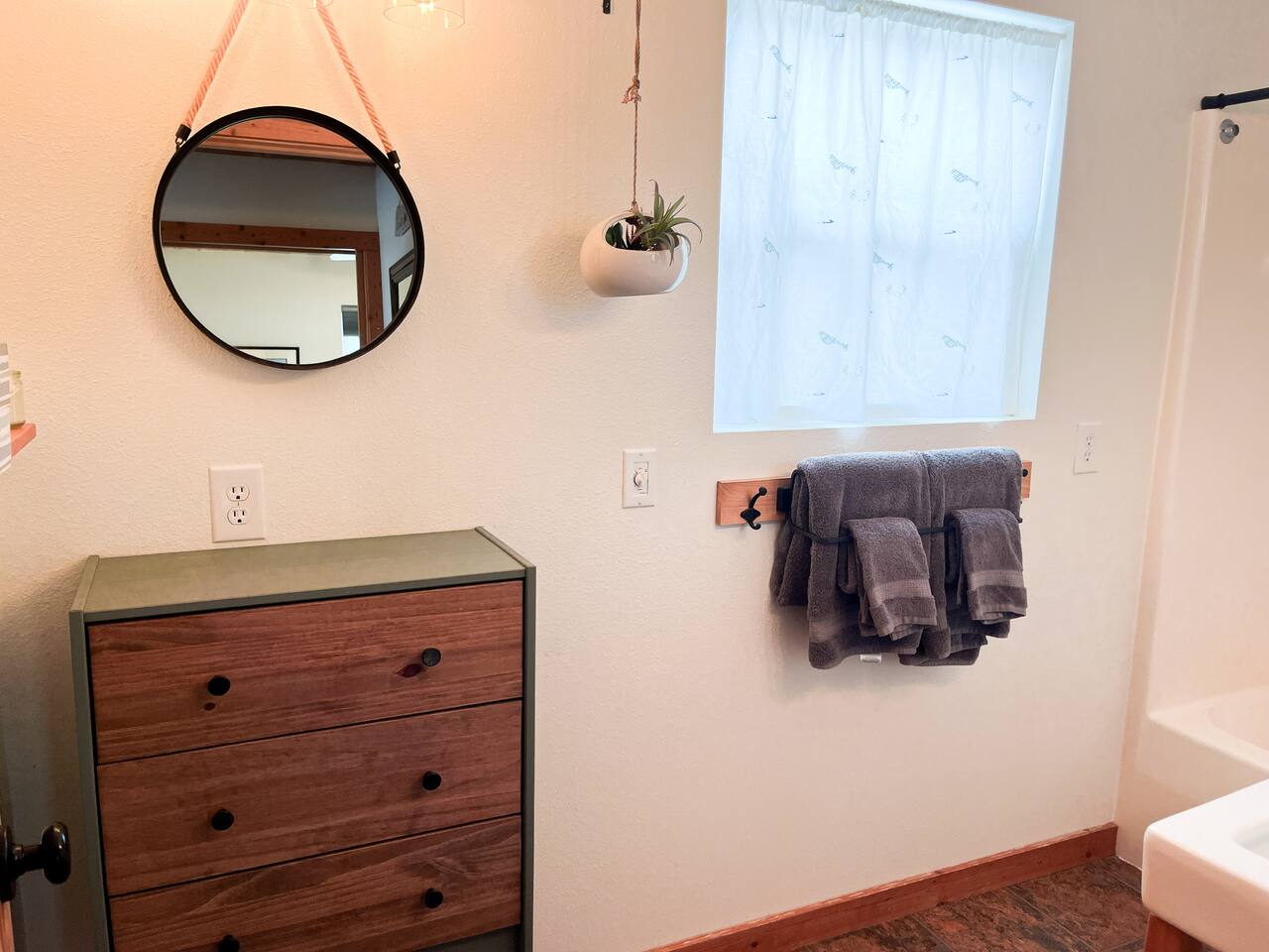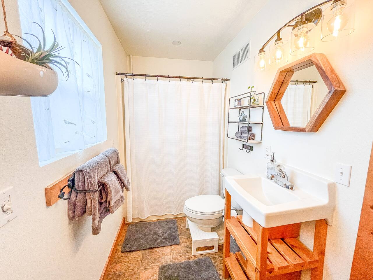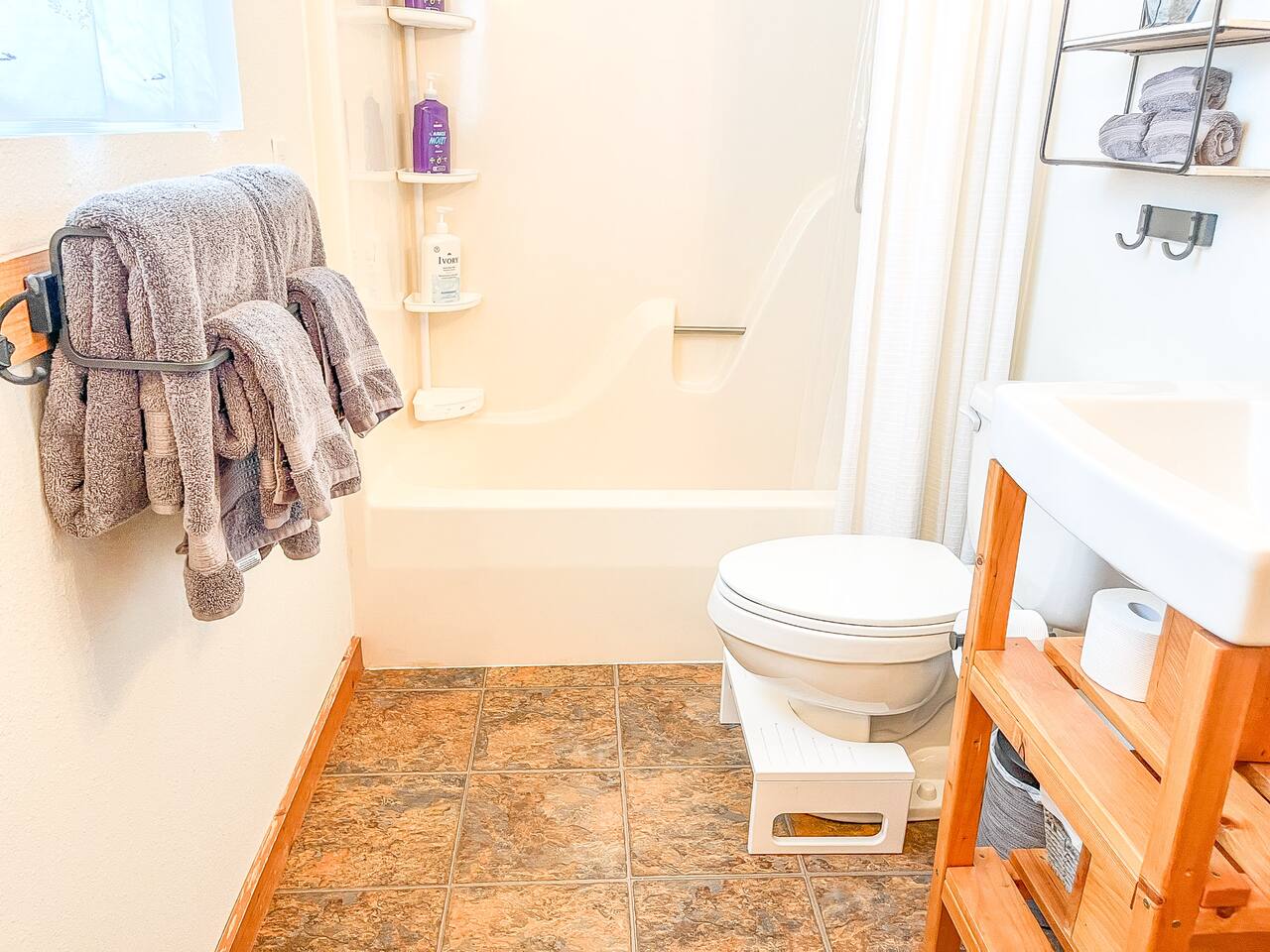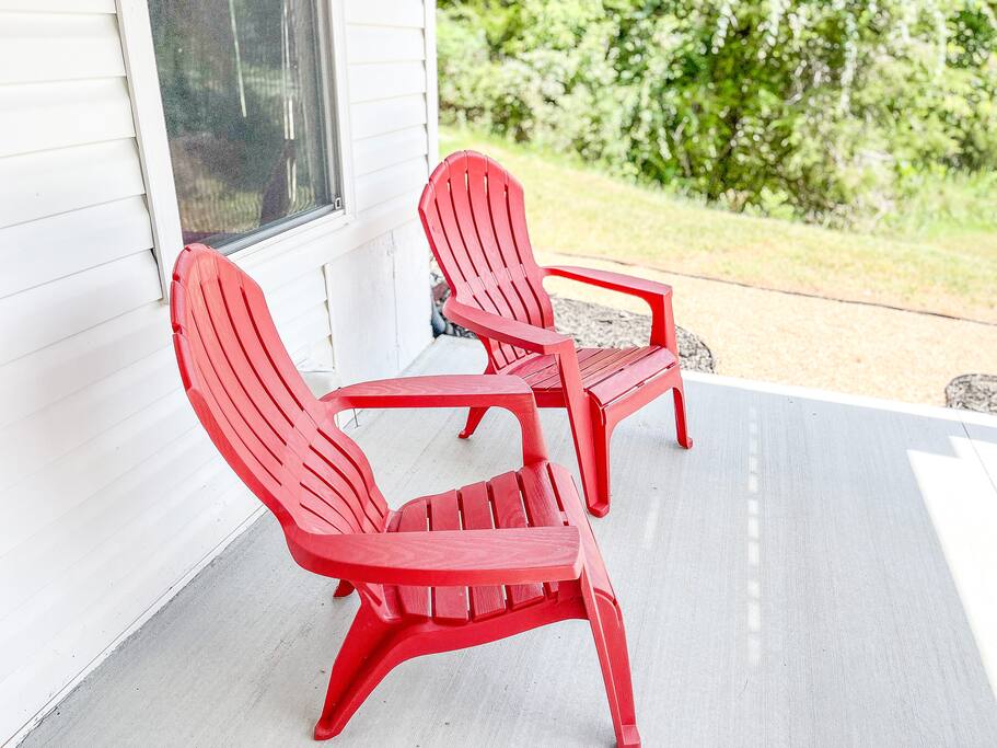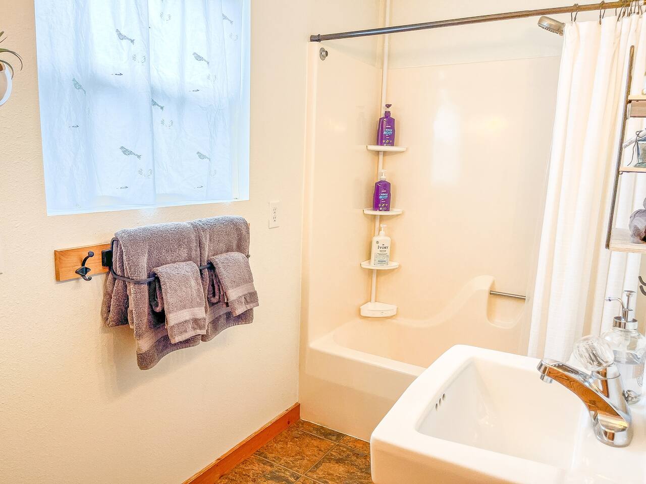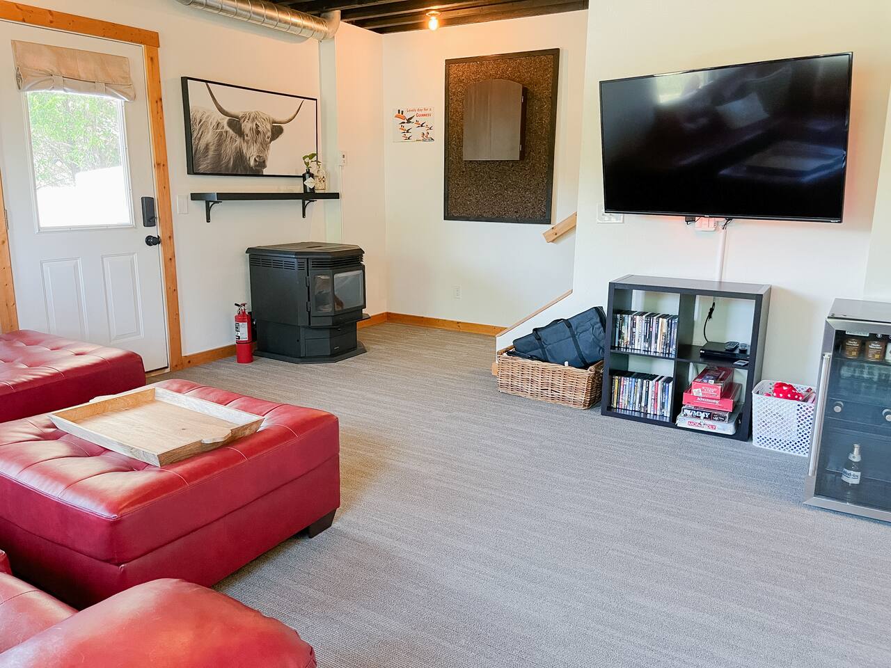 Step inside and feel instantly at home. Though it offers 1,300 sq. ft. of space, the home’s tiny house footprint makes every corner feel cozy and inviting. The main floor opens from the deck into a bright, airy living space where a soaring ceiling and large upper window fill the room with natural light. The open layout connects the living room, dining area, and fully stocked kitchen for easy conversation and connection. A bedroom and bathroom are also on this level for convenience. Upstairs, the second bedroom features a full glass door to let in as much light as you wish—or pull the curtain for cozy privacy. A quiet desk area with printer and monitor is ready for work or study, and a reading nook on the landing invites you to curl up with a good book. The walkout basement is designed for unwinding: a massive, ultra-comfortable couch faces a large-screen TV for movie nights, and a dartboard offers a playful challenge. This level also includes a bathroom and laundry room for your comfort. Set on 5 wooded acres, the backyard overlooks a serene natural valley where deer often wander through in the mornings and evenings. Please note, the valley includes a natural drainage area that may carry flowing water during heavy rain. This area is not fenced, so guests should supervise children and pets carefully. Sleeping: 1) Queen Bed in the main floor bedroom 2) Queen Bed in the upstairs bedroom. 3) Single Bed in the upstairs bedroom: This is an XL Adult folding cot that is the size and comfort of a Twin bed. It usually lives in the upstairs bedroom closet for you to set-up should you need additional sleeping space. Linens are in the same closet. This is not your average cot! 4) Sofa Bed: the main floor couch pulls open to a sofa bed. The ‘L’ section of the sofa lifts up to reveal a comfortable foam mattress topper that has a waterproof protector and a padded mattress cover. There are linens and pillows in the main floor bedroom closet Mobility Questions: Though our home spans three stories, all essential living spaces are conveniently located on the main floor for guests with mobility needs. After a few steps up from the gravel driveway onto the deck, you’ll find the kitchen, dining area, living room with a sleeper sofa, queen bedroom, and full bathroom—all on one level. The main-floor bathroom features a bathtub with shower, while the basement bathroom offers a shower only.