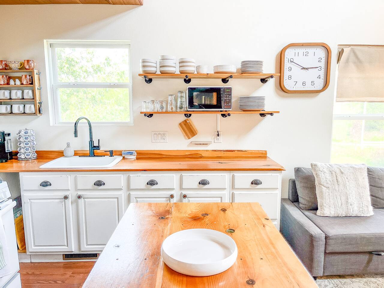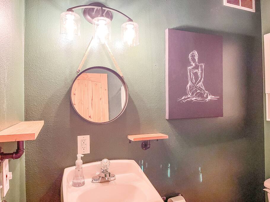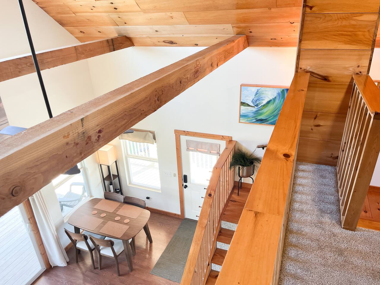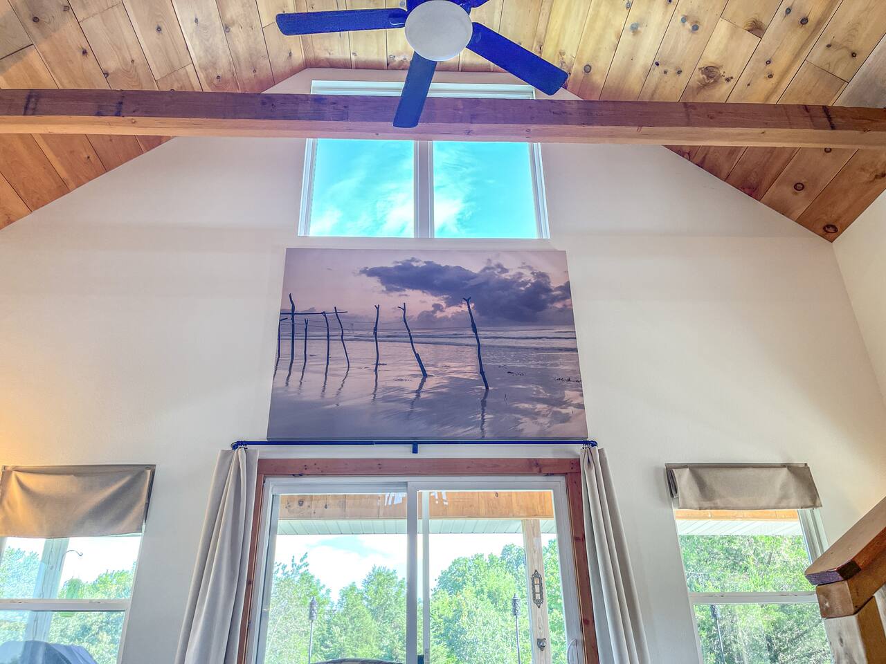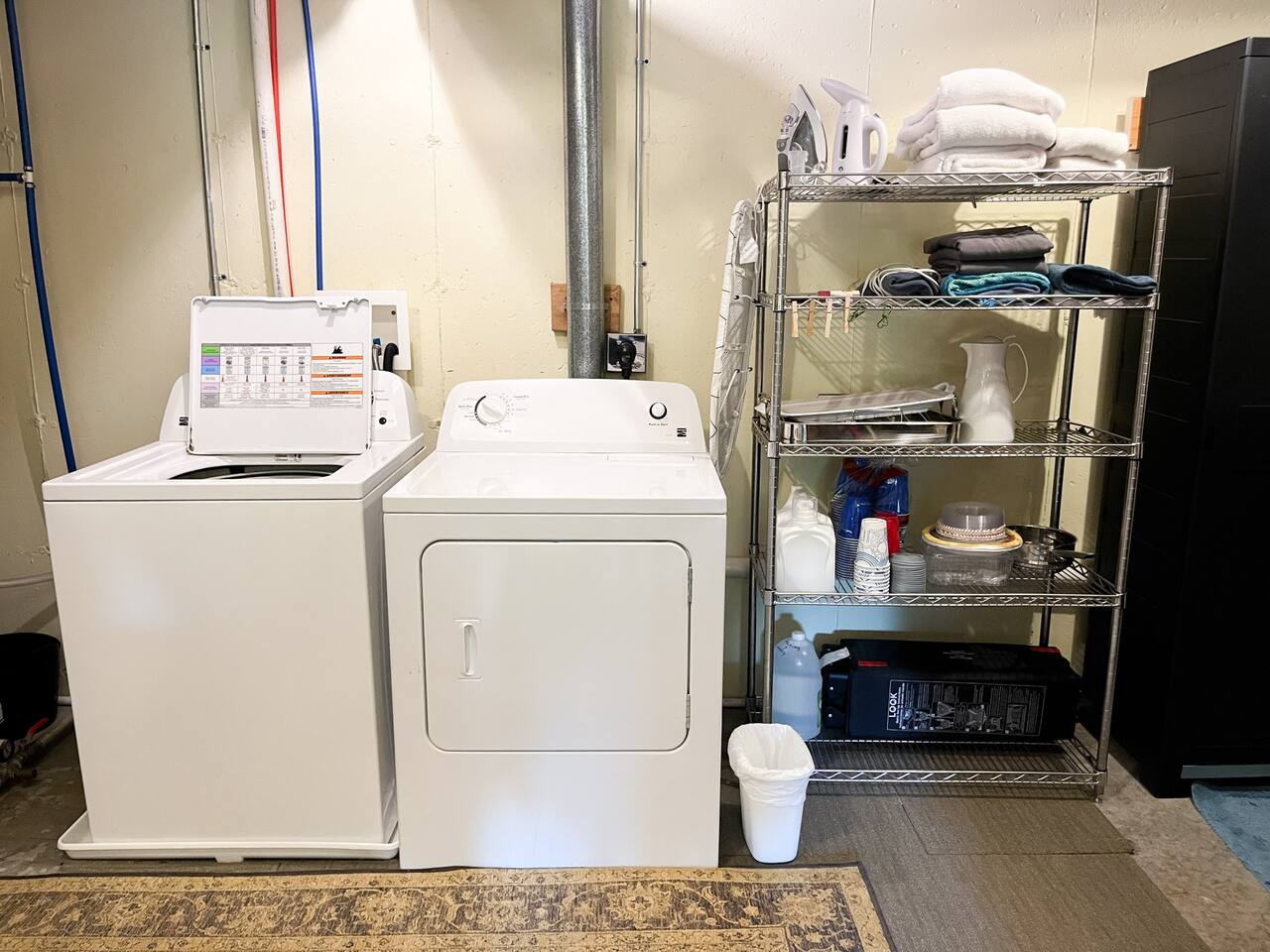Step inside and feel instantly at home. Though it offers 1,300 sq. ft. of space, the home’s tiny house footprint makes every corner feel cozy and inviting. The main floor opens from the deck into a bright, airy living space where a soaring ceiling and large upper window fill the room with natural light. The open layout connects the living room, dining area, and fully stocked kitchen for easy conversation and connection. A bedroom and bathroom are also on this level for convenience. Upstairs, the second bedroom features a full glass door to let in as much light as you wish—or pull the curtain for cozy privacy. A quiet desk area with printer and monitor is ready for work or study, and a reading nook on the landing invites you to curl up with a good book. The walkout basement is designed for unwinding: a massive, ultra-comfortable couch faces a large-screen TV for movie nights, and a dartboard offers a playful challenge. This level also includes a bathroom and laundry room for your comfort. Set on 5 wooded acres, the backyard overlooks a serene natural valley where deer often wander through in the mornings and evenings. Please note, the valley includes a natural drainage area that may carry flowing water during heavy rain. This area is not fenced, so guests should supervise children and pets carefully. Sleeping: 1) Queen Bed in the main floor bedroom 2) Queen Bed in the upstairs bedroom. 3) Single Bed in the upstairs bedroom: This is an XL Adult folding cot that is the size and comfort of a Twin bed. It usually lives in the upstairs bedroom closet for you to set-up should you need additional sleeping space. Linens are in the same closet. This is not your average cot! 4) Sofa Bed: the main floor couch pulls open to a sofa bed. The ‘L’ section of the sofa lifts up to reveal a comfortable foam mattress topper that has a waterproof protector and a padded mattress cover. There are linens and pillows in the main floor bedroom closet Mobility Questions: Though our home spans three stories, all essential living spaces are conveniently located on the main floor for guests with mobility needs. After a few steps up from the gravel driveway onto the deck, you’ll find the kitchen, dining area, living room with a sleeper sofa, queen bedroom, and full bathroom—all on one level. The main-floor bathroom features a bathtub with shower, while the basement bathroom offers a shower only.
