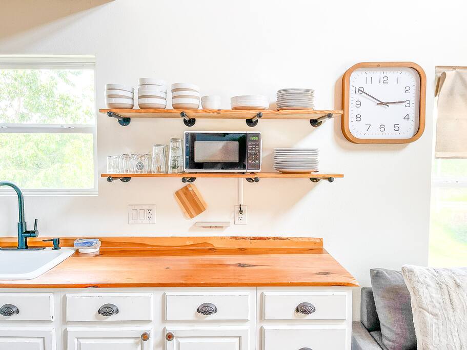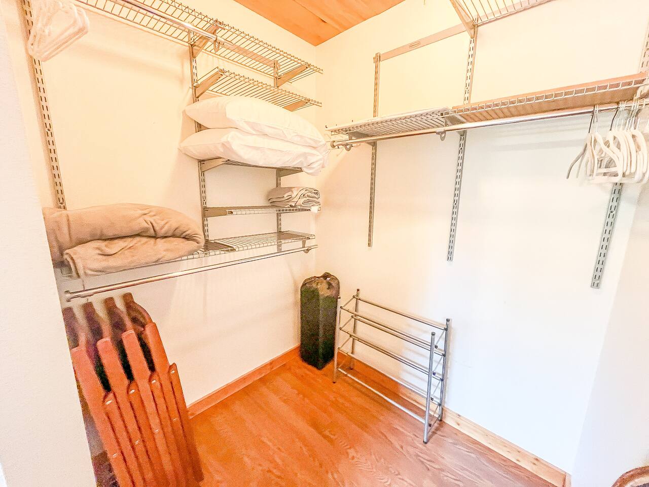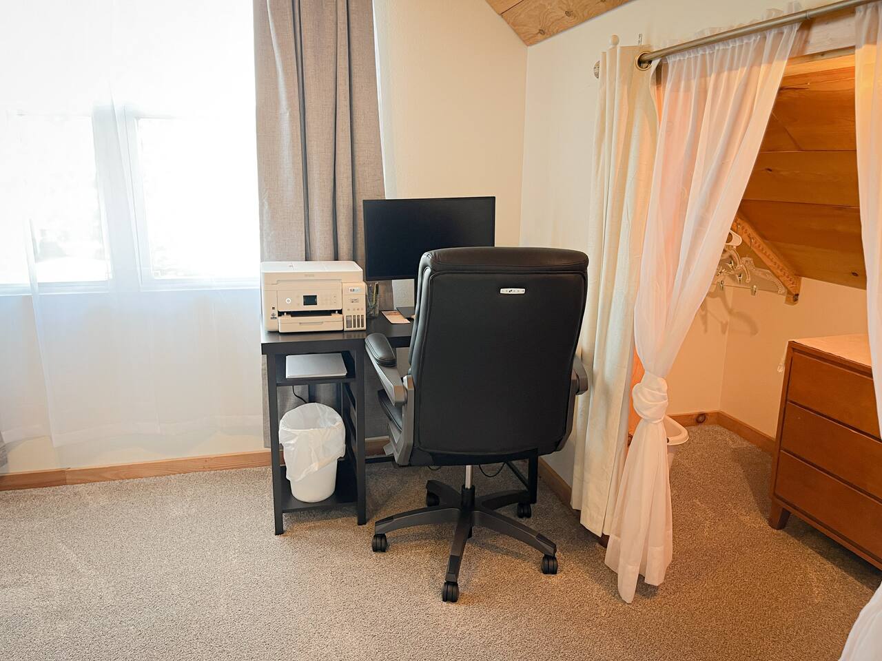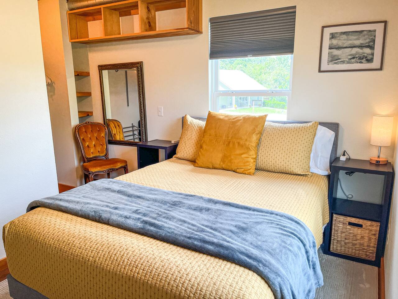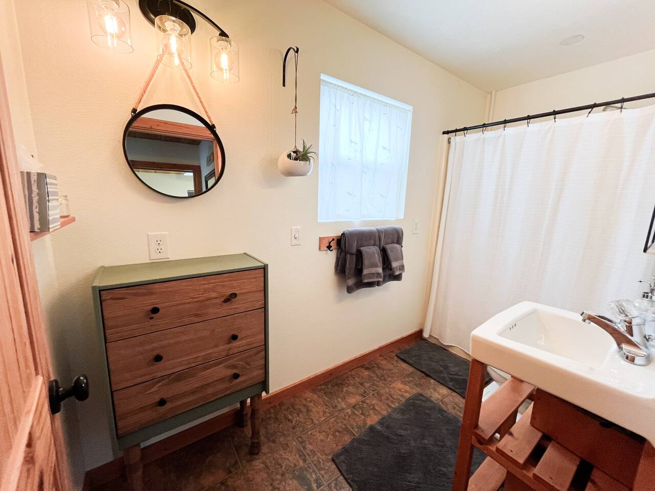 Step inside and feel instantly at home. Though it offers 1,300 sq. ft. of space, the home’s tiny house footprint makes every corner feel cozy and inviting. The main floor opens from the deck into a bright, airy living space where a soaring ceiling and large upper window fill the room with natural light. The open layout connects the living room, dining area, and fully stocked kitchen for easy conversation and connection. A bedroom and bathroom are also on this level for convenience. Upstairs, the second bedroom features a full glass door to let in as much light as you wish—or pull the curtain for cozy privacy. A quiet desk area with printer and monitor is ready for work or study, and a reading nook on the landing invites you to curl up with a good book. The walkout basement is designed for unwinding: a massive, ultra-comfortable couch faces a large-screen TV for movie nights, and a dartboard offers a playful challenge. This level also includes a bathroom and laundry room for your comfort. Set on 5 wooded acres, the backyard overlooks a serene natural valley where deer often wander through in the mornings and evenings. Please note, the valley includes a natural drainage area that may carry flowing water during heavy rain. This area is not fenced, so guests should supervise children and pets carefully. Sleeping: 1) Queen Bed in the main floor bedroom 2) Queen Bed in the upstairs bedroom. 3) Single Bed in the upstairs bedroom: This is an XL Adult folding cot that is the size and comfort of a Twin bed. It usually lives in the upstairs bedroom closet for you to set-up should you need additional sleeping space. Linens are in the same closet. This is not your average cot! 4) Sofa Bed: the main floor couch pulls open to a sofa bed. The ‘L’ section of the sofa lifts up to reveal a comfortable foam mattress topper that has a waterproof protector and a padded mattress cover. There are linens and pillows in the main floor bedroom closet Mobility Questions: Though our home spans three stories, all essential living spaces are conveniently located on the main floor for guests with mobility needs. After a few steps up from the gravel driveway onto the deck, you’ll find the kitchen, dining area, living room with a sleeper sofa, queen bedroom, and full bathroom—all on one level. The main-floor bathroom features a bathtub with shower, while the basement bathroom offers a shower only.