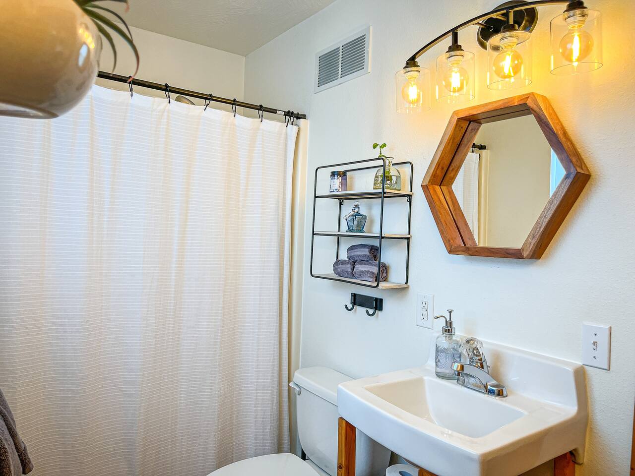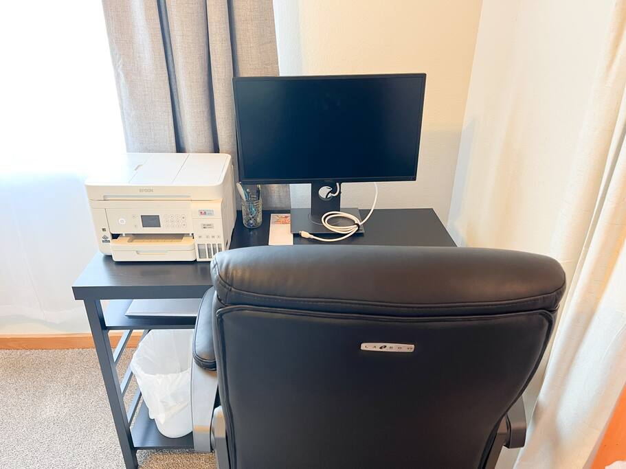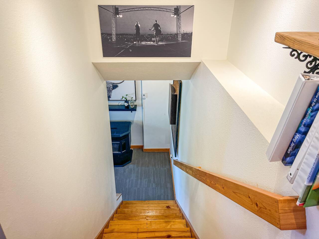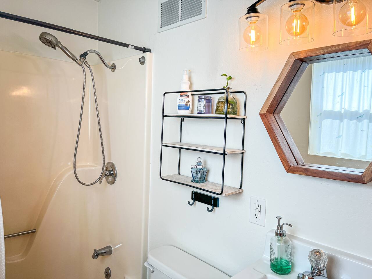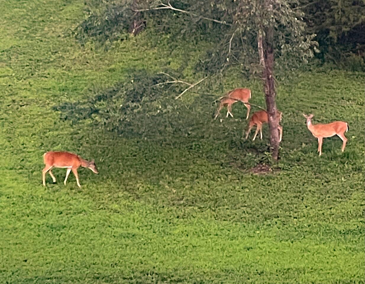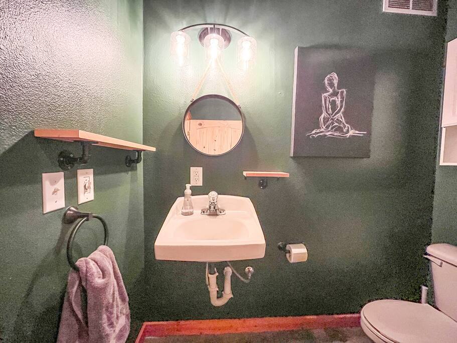 Step inside and feel instantly at home. Though it offers 1,300 sq. ft. of space, the home’s tiny house footprint makes every corner feel cozy and inviting. The main floor opens from the deck into a bright, airy living space where a soaring ceiling and large upper window fill the room with natural light. The open layout connects the living room, dining area, and fully stocked kitchen for easy conversation and connection. A bedroom and bathroom are also on this level for convenience. Upstairs, the second bedroom features a full glass door to let in as much light as you wish—or pull the curtain for cozy privacy. A quiet desk area with printer and monitor is ready for work or study, and a reading nook on the landing invites you to curl up with a good book. The walkout basement is designed for unwinding: a massive, ultra-comfortable couch faces a large-screen TV for movie nights, and a dartboard offers a playful challenge. This level also includes a bathroom and laundry room for your comfort. Set on 5 wooded acres, the backyard overlooks a serene natural valley where deer often wander through in the mornings and evenings. Please note, the valley includes a natural drainage area that may carry flowing water during heavy rain. This area is not fenced, so guests should supervise children and pets carefully. Sleeping: 1) Queen Bed in the main floor bedroom 2) Queen Bed in the upstairs bedroom. 3) Single Bed in the upstairs bedroom: This is an XL Adult folding cot that is the size and comfort of a Twin bed. It usually lives in the upstairs bedroom closet for you to set-up should you need additional sleeping space. Linens are in the same closet. This is not your average cot! 4) Sofa Bed: the main floor couch pulls open to a sofa bed. The ‘L’ section of the sofa lifts up to reveal a comfortable foam mattress topper that has a waterproof protector and a padded mattress cover. There are linens and pillows in the main floor bedroom closet Mobility Questions: Though our home spans three stories, all essential living spaces are conveniently located on the main floor for guests with mobility needs. After a few steps up from the gravel driveway onto the deck, you’ll find the kitchen, dining area, living room with a sleeper sofa, queen bedroom, and full bathroom—all on one level. The main-floor bathroom features a bathtub with shower, while the basement bathroom offers a shower only.