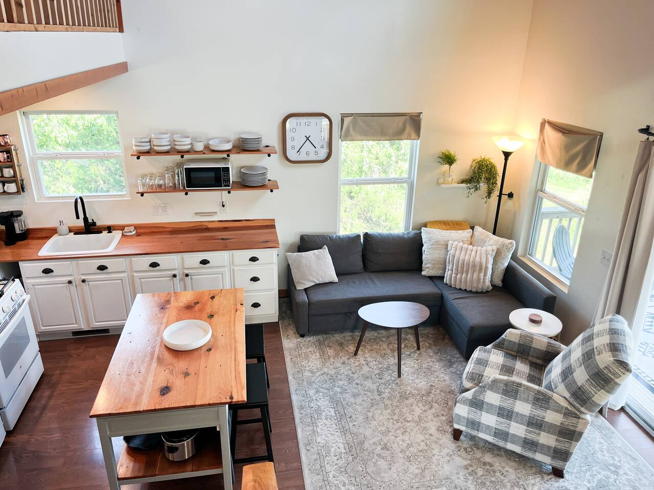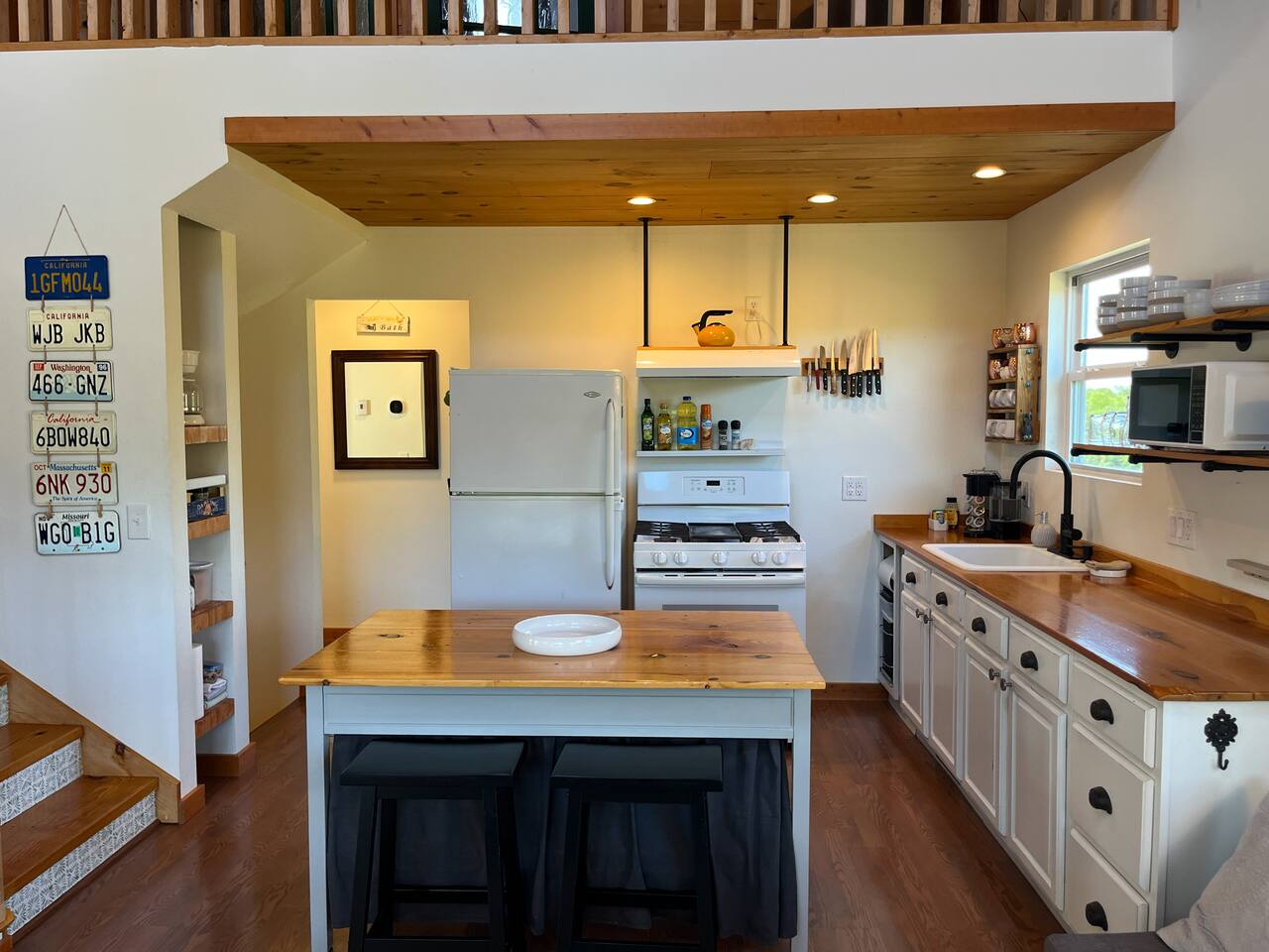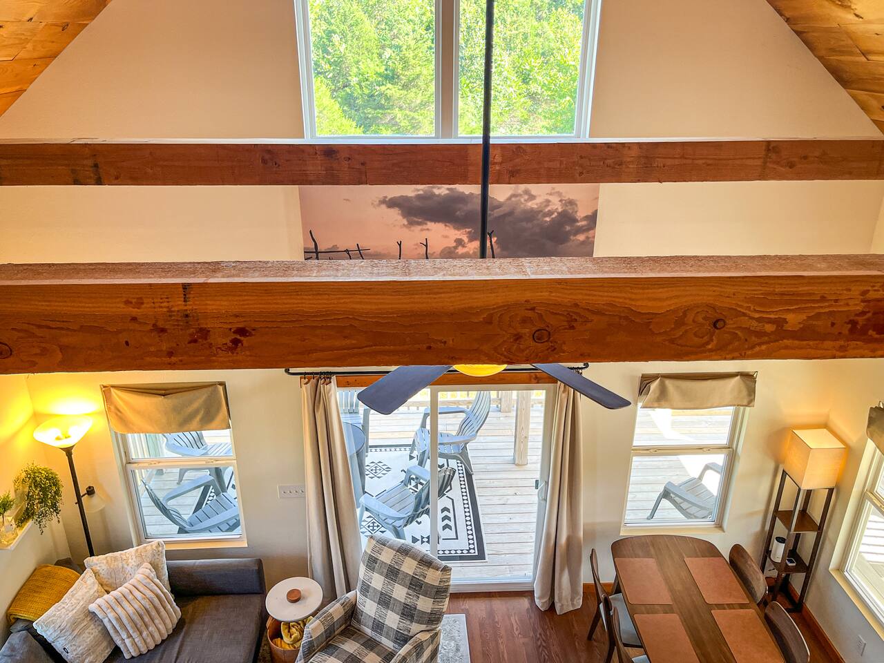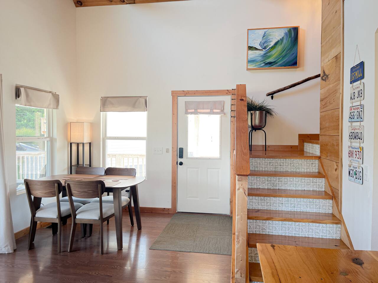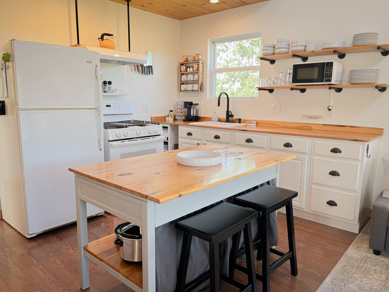 Scandinavian-style 3-story tiny house filled with natural light, warm wood accents, and a cozy, modern vibe set on 3.5acr. Enjoy a well-stocked kitchen, private deck with grill—perfect for watching deer wander by in the mornings and evenings—and a comfy movie nook with a leather sofa. High-end bedding, TVs in every bedroom, desk with printer for working on the go, darts, board games and peaceful forest views where deer often visit complete this unique, elevated tiny home nestled among the trees.