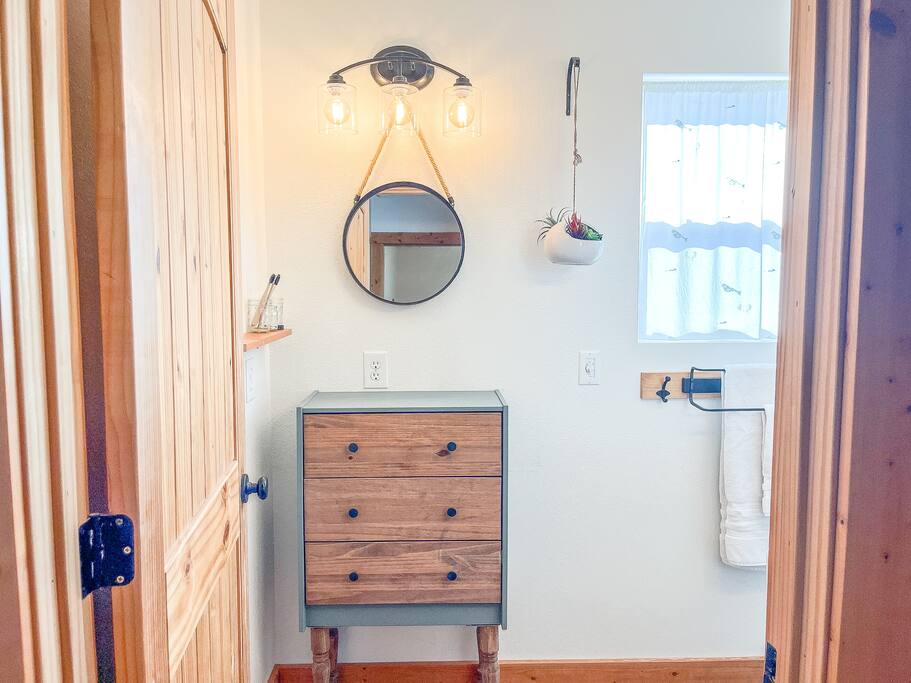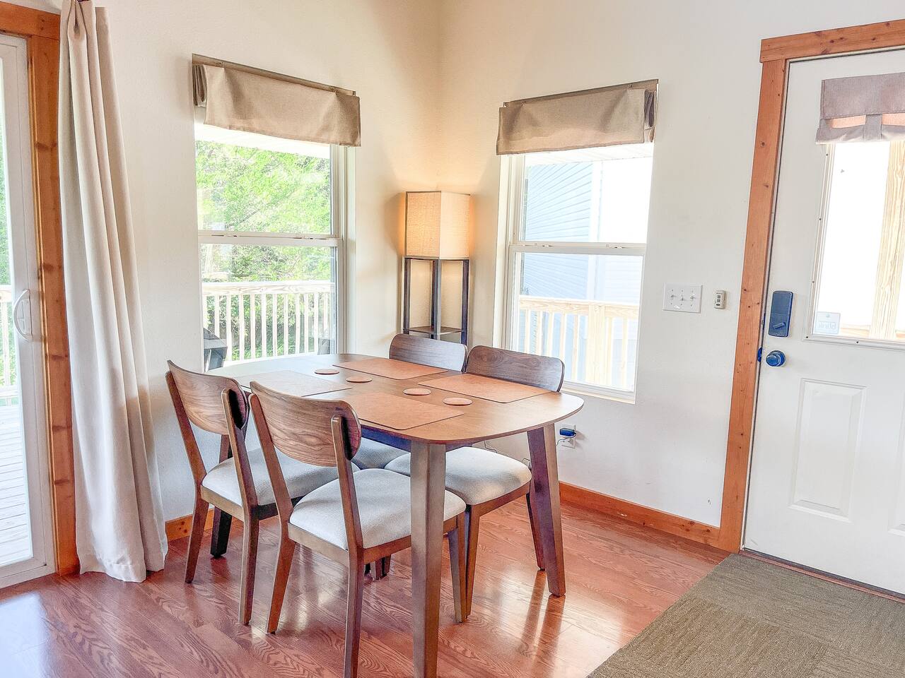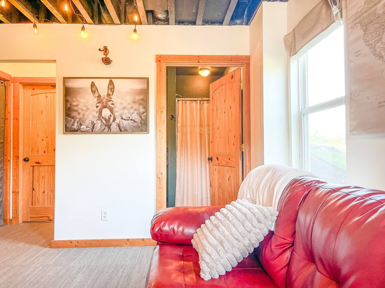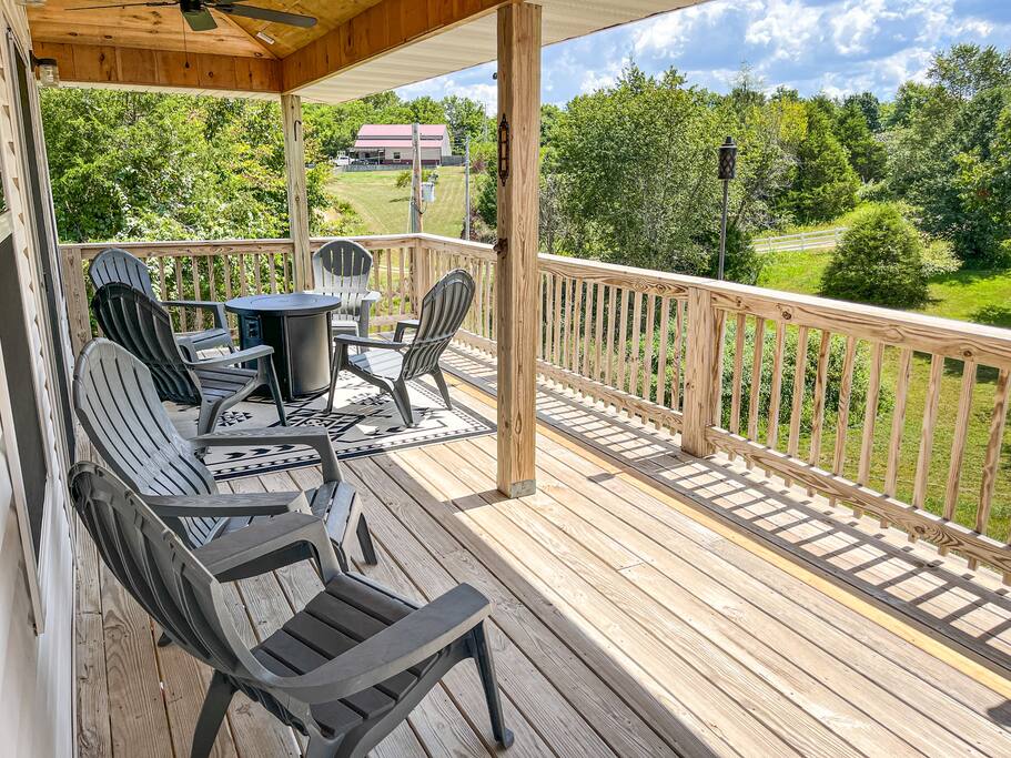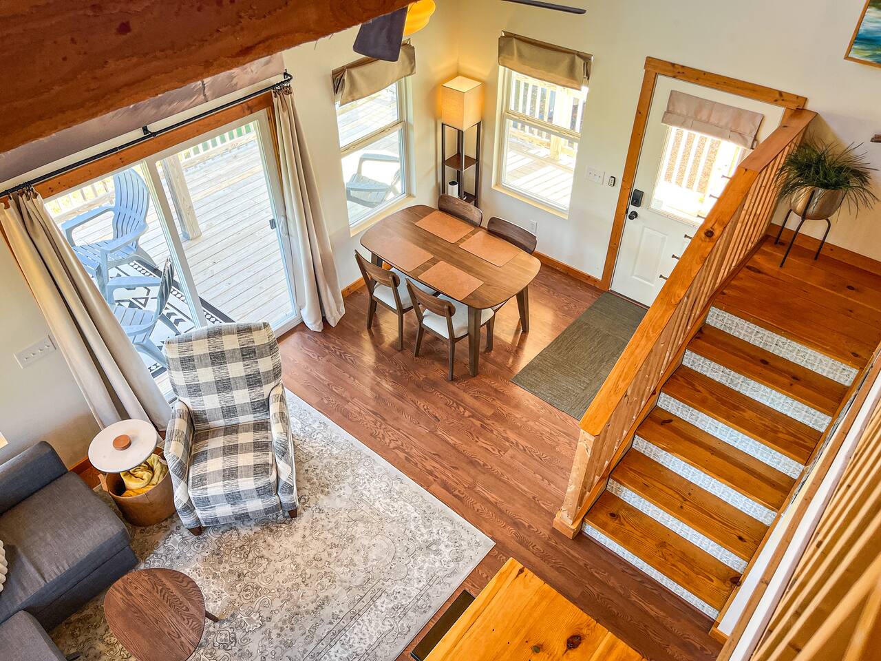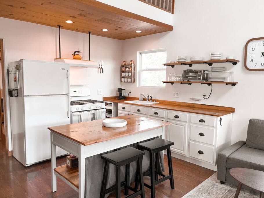 Scandinavian-style 3-story tiny house filled with natural light, warm wood accents, and a cozy, modern vibe set on 3.5acr. Enjoy a well-stocked kitchen, private deck with grill—perfect for watching deer wander by in the mornings and evenings—and a comfy movie nook with a leather sofa. High-end bedding, TVs in every bedroom, desk with printer for working on the go, darts, board games and peaceful forest views where deer often visit complete this unique, elevated tiny home nestled among the trees.