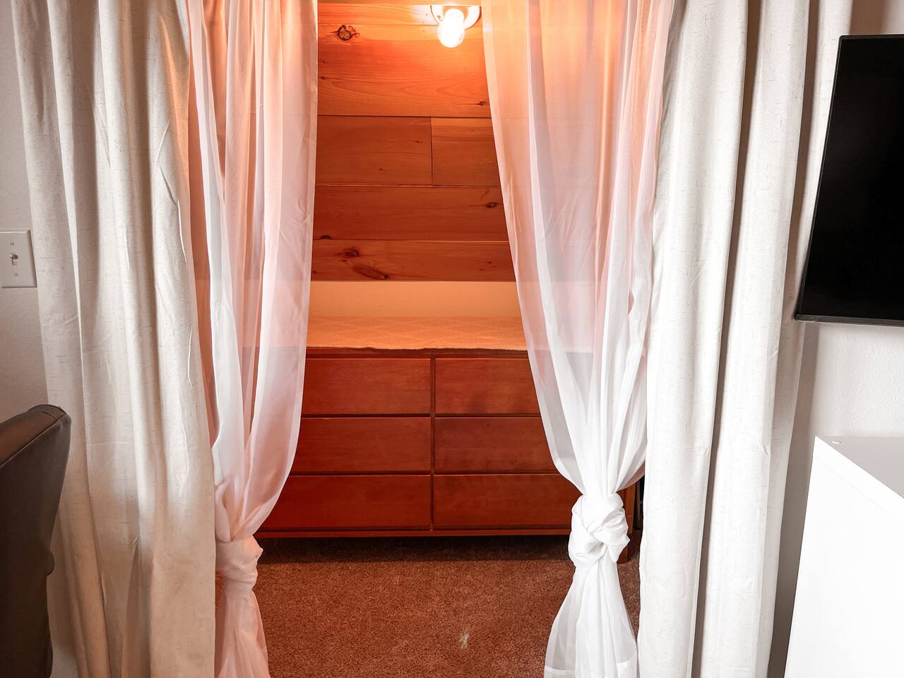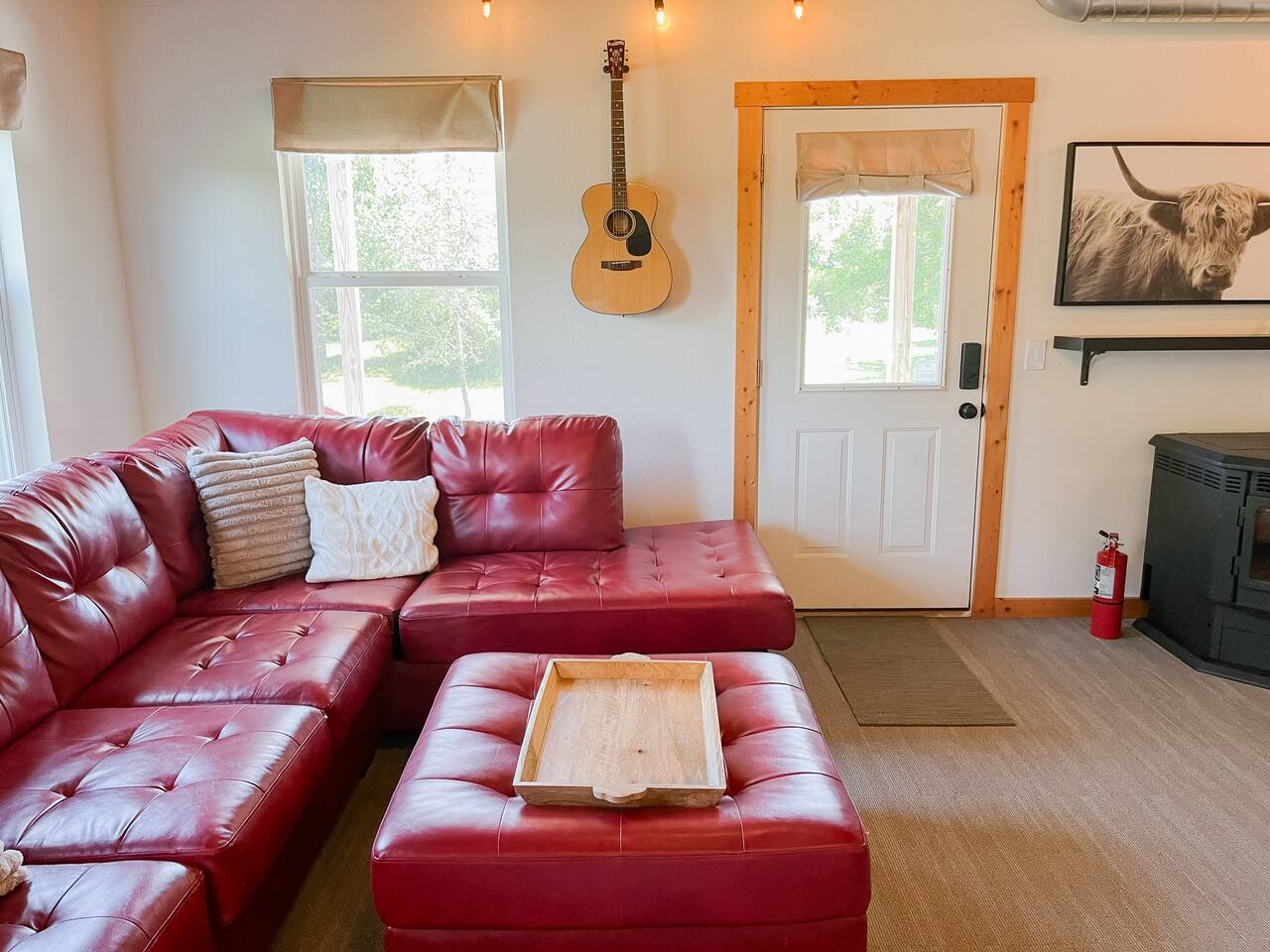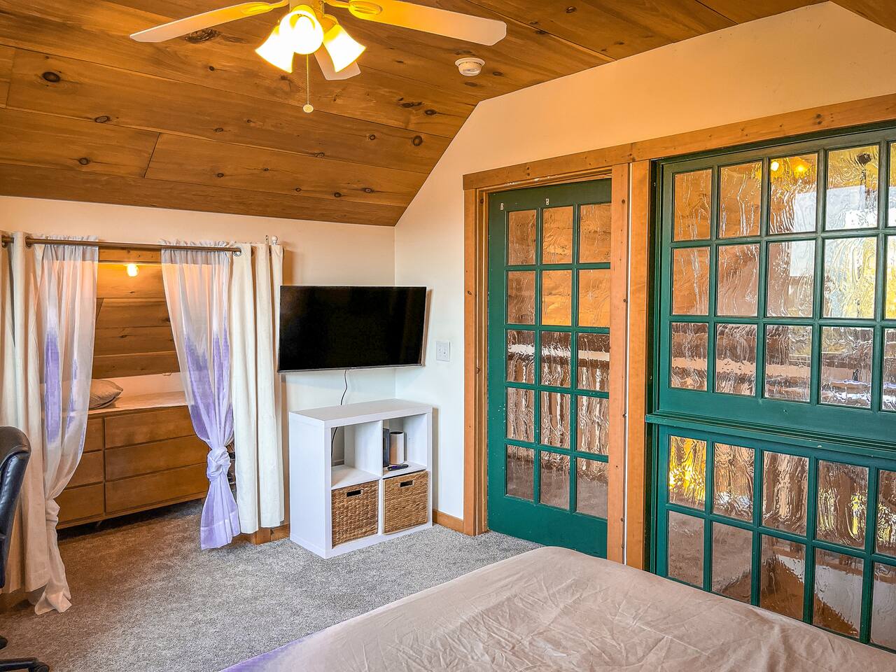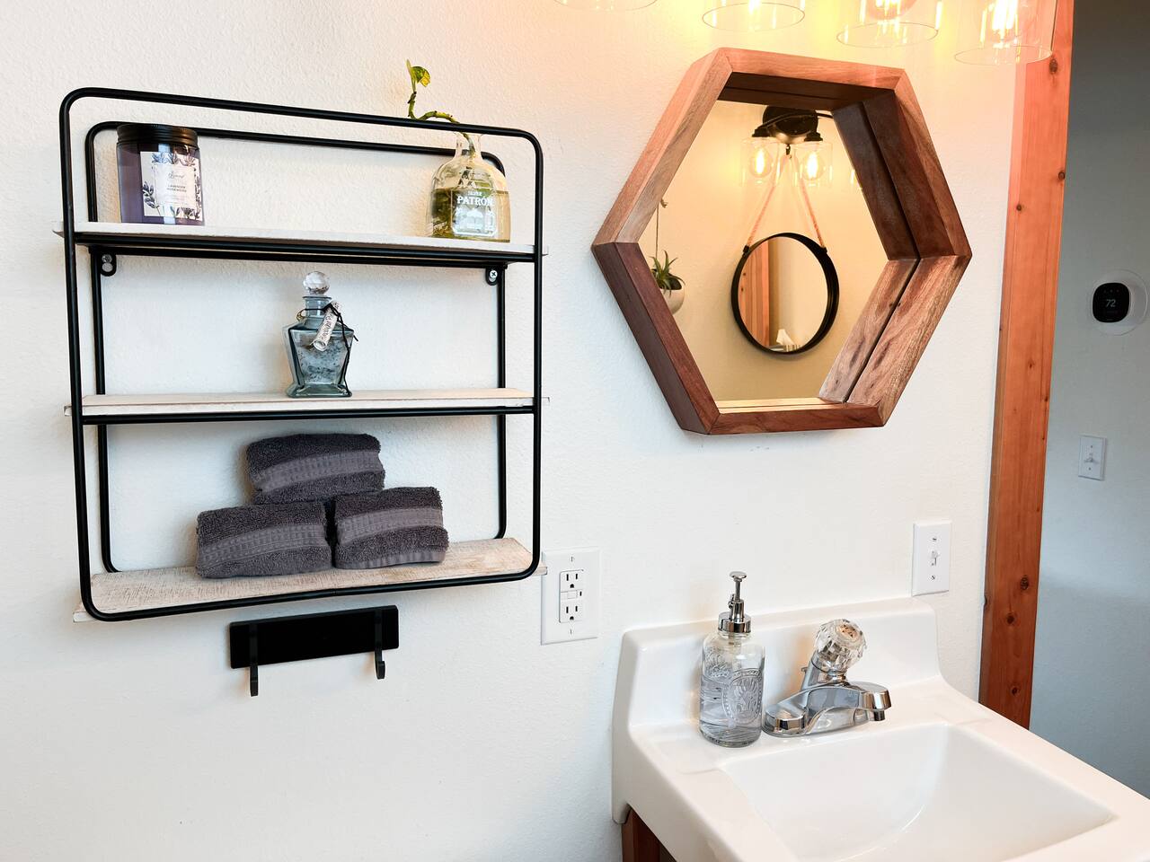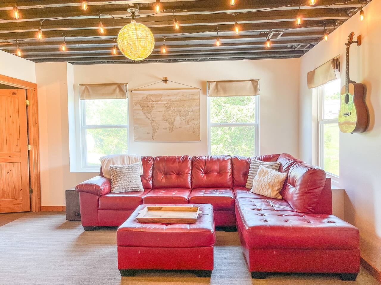 Scandinavian-style 3-story tiny house filled with natural light, warm wood accents, and a cozy, modern vibe set on 3.5acr. Enjoy a well-stocked kitchen, private deck with grill—perfect for watching deer wander by in the mornings and evenings—and a comfy movie nook with a leather sofa. High-end bedding, TVs in every bedroom, desk with printer for working on the go, darts, board games and peaceful forest views where deer often visit complete this unique, elevated tiny home nestled among the trees.