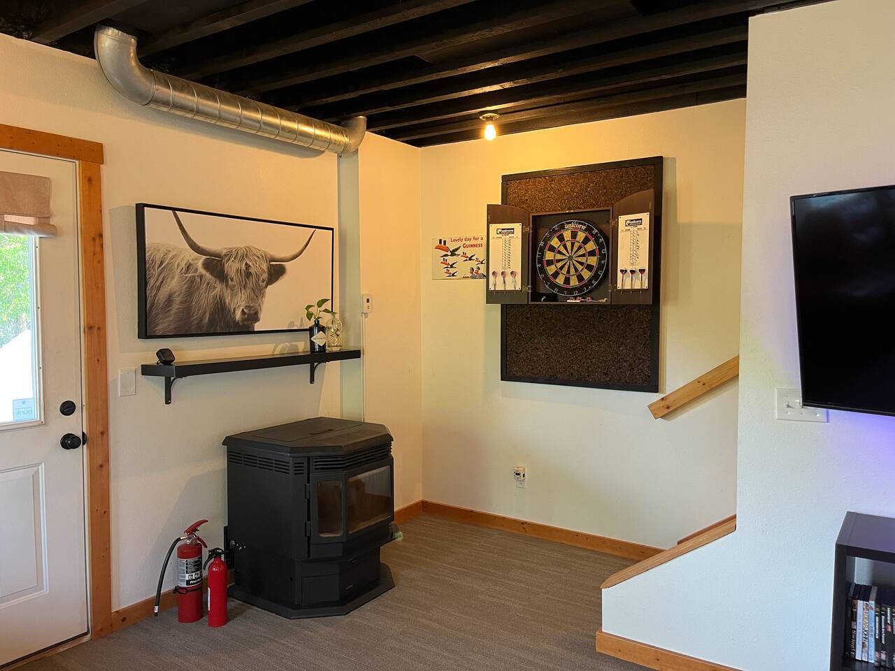 Safety note: There is a natural drainage area in the backyard that may have flowing water during heavy rain. This area is not fenced, so please supervise children and pets at all times. There is a dart board at the botto of the basement steps. This can be kept closed when not in use. Please do not allow children to use the dart board unsupervised. It is mounted at adult height to keep it out of easy reach. We are a dogs only home. Ask about our pet policy prior to booking.